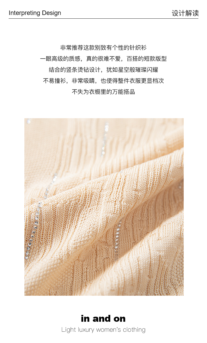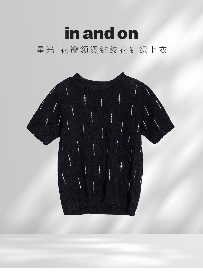 IN AND ON 星光 花瓣领烫钻绞花针织上衣54377