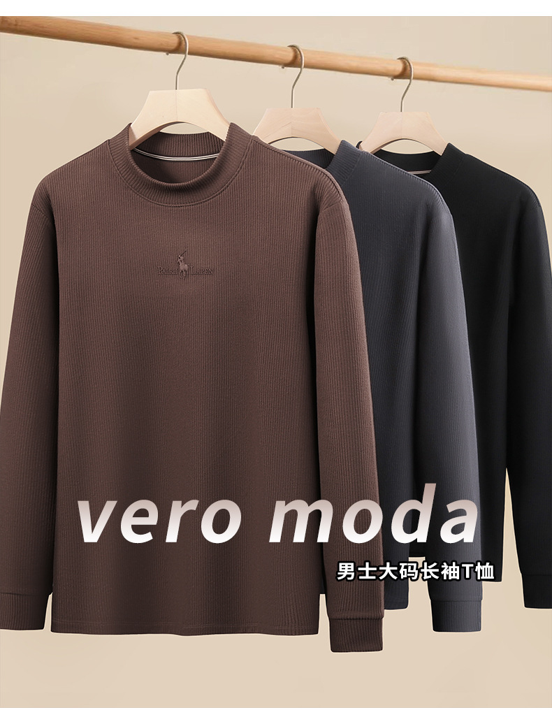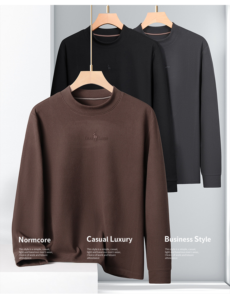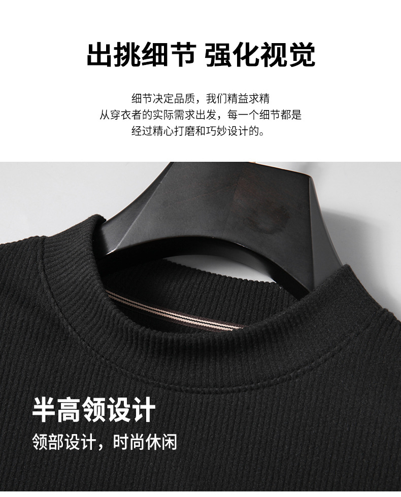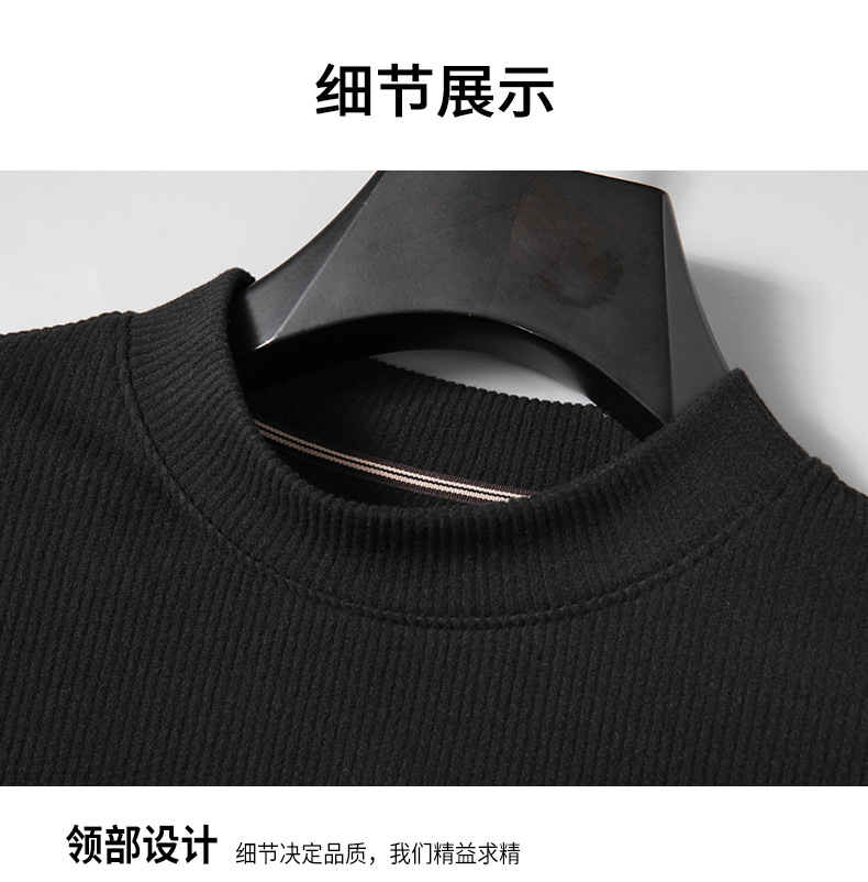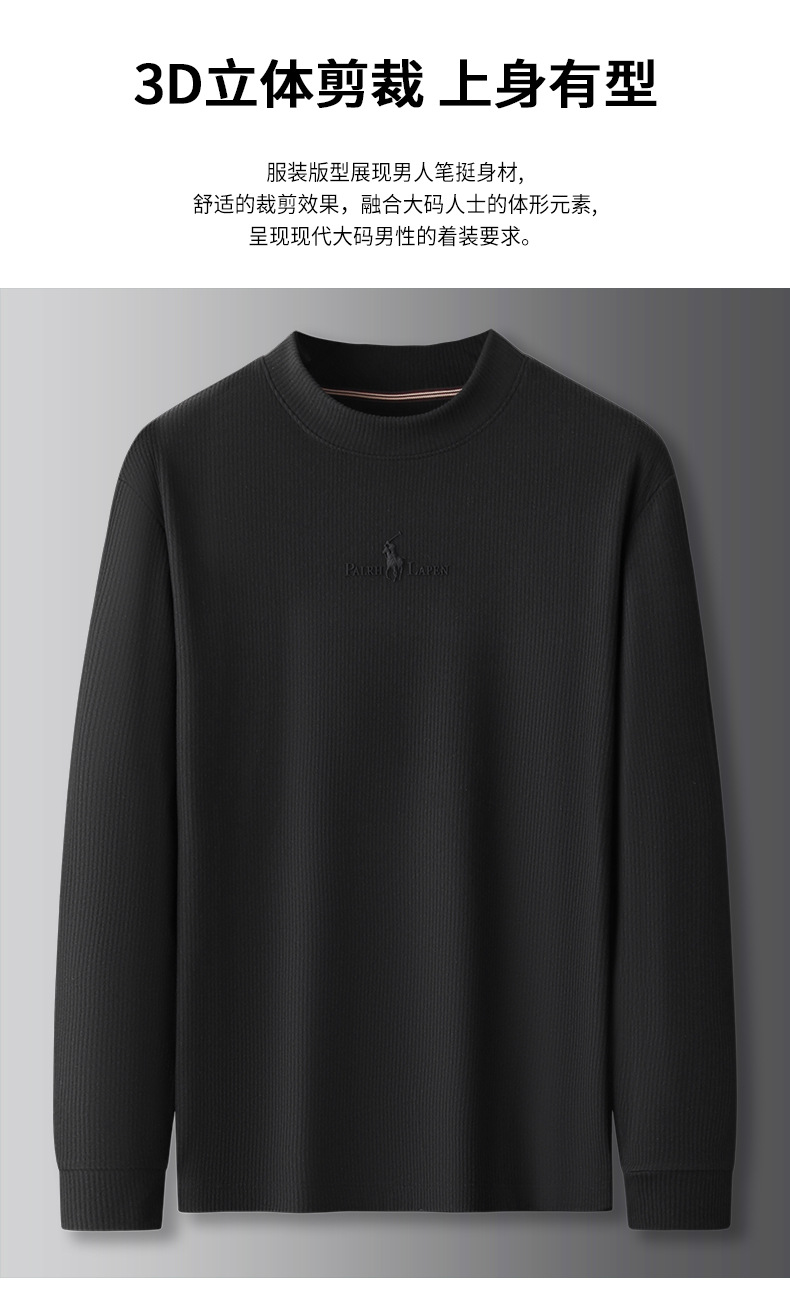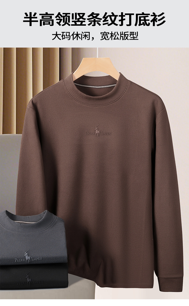 【DK】大依优型大码休闲男士半高领竖条纹打底衫长袖T恤秋季新款宽松加肥加大码胖子时尚