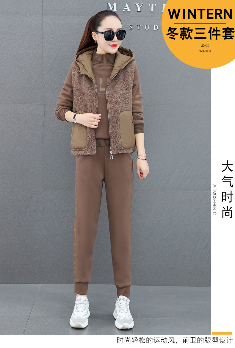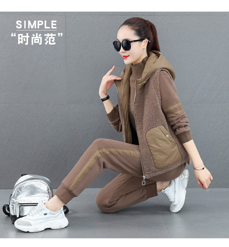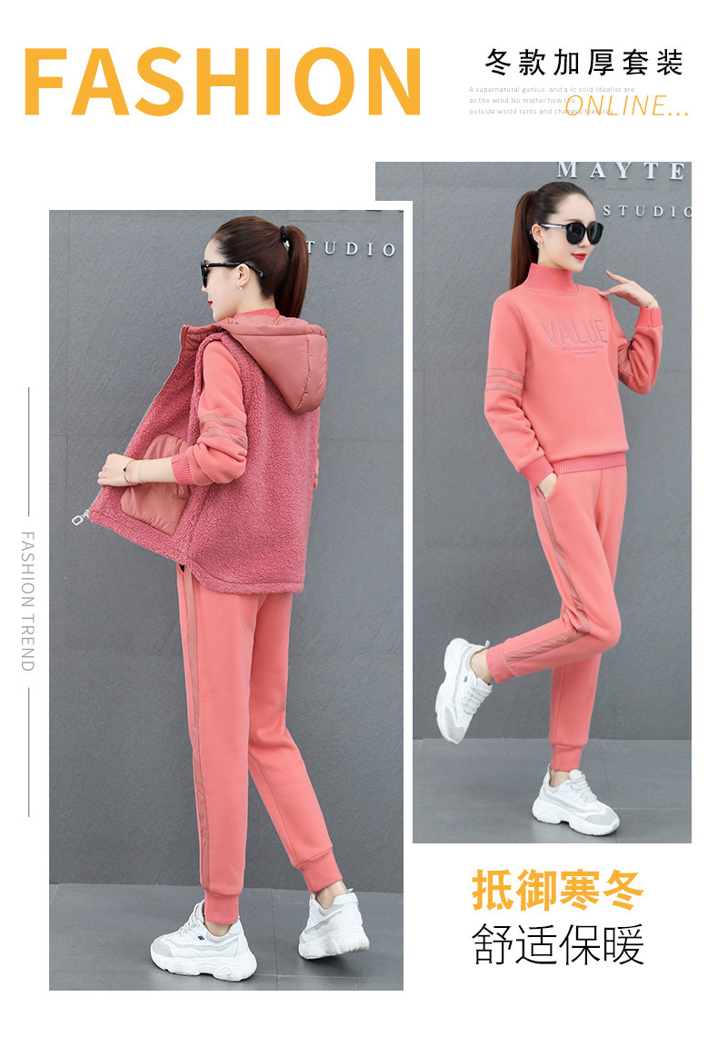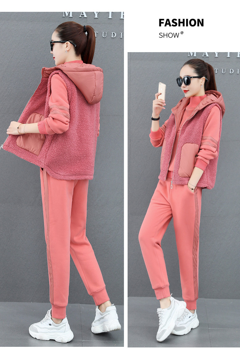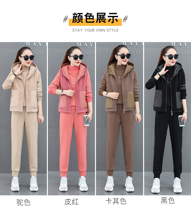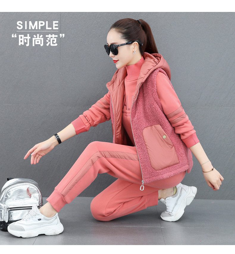 SP-T20909加绒运动套装女秋冬新款加厚羊羔毛保暖休闲卫衣三件套