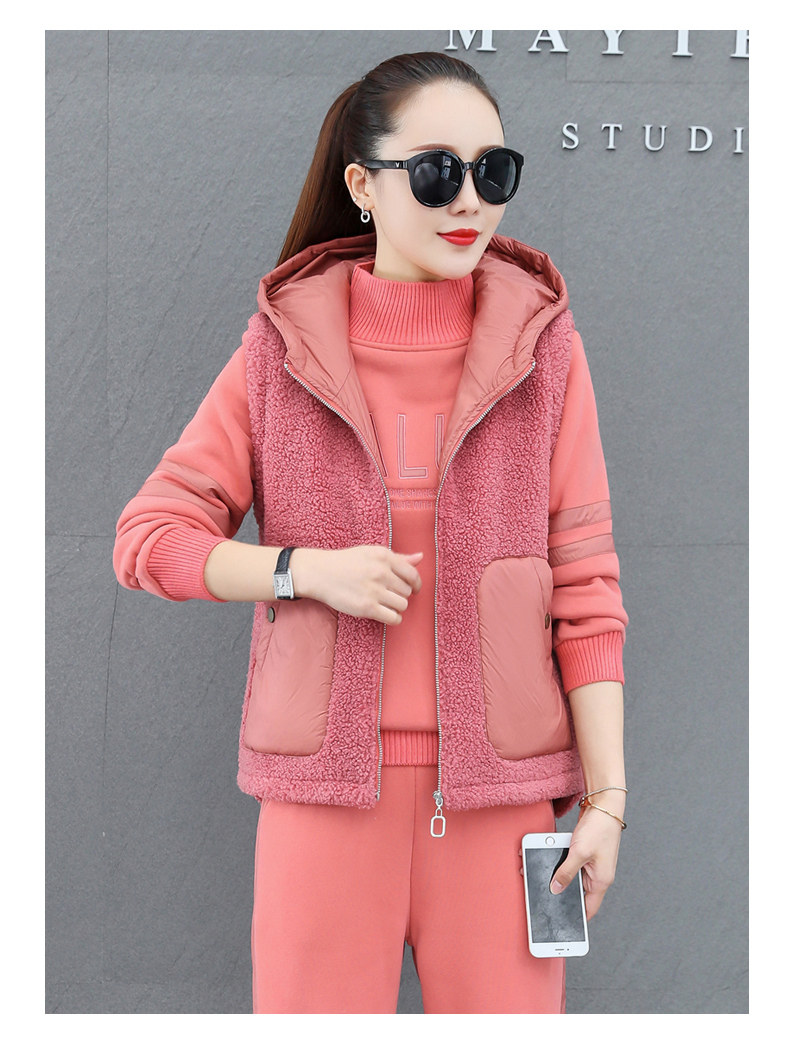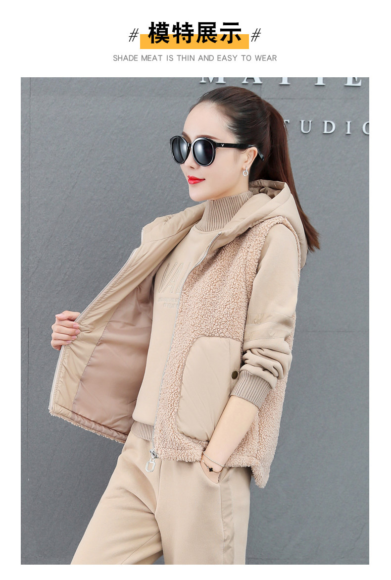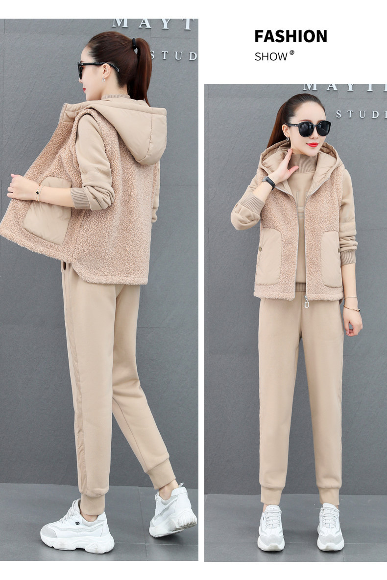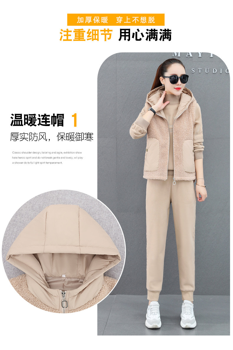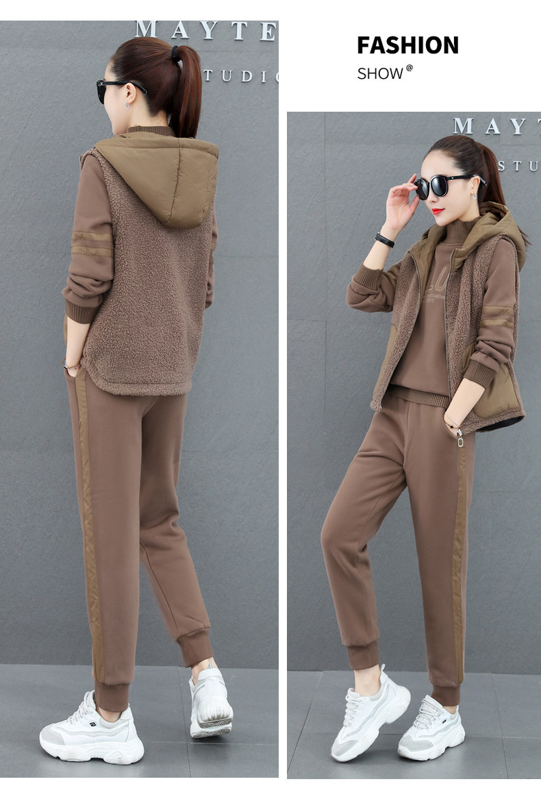 SP-T20909加绒运动套装女秋冬新款加厚羊羔毛保暖休闲卫衣三件套