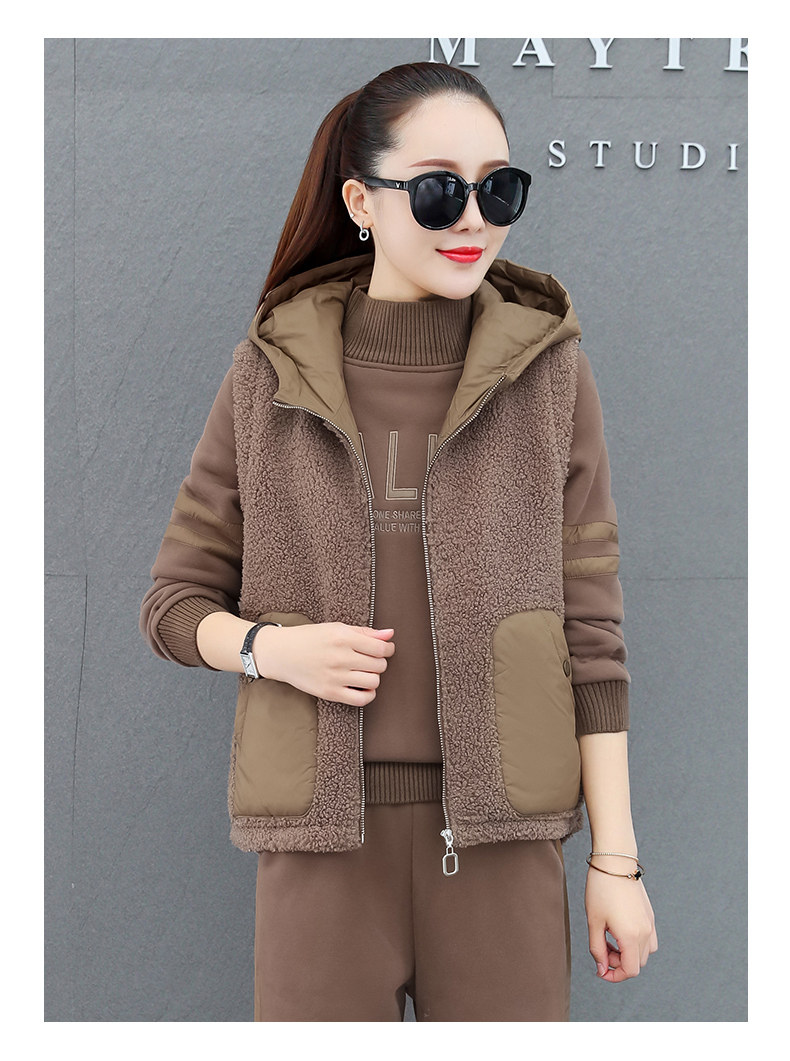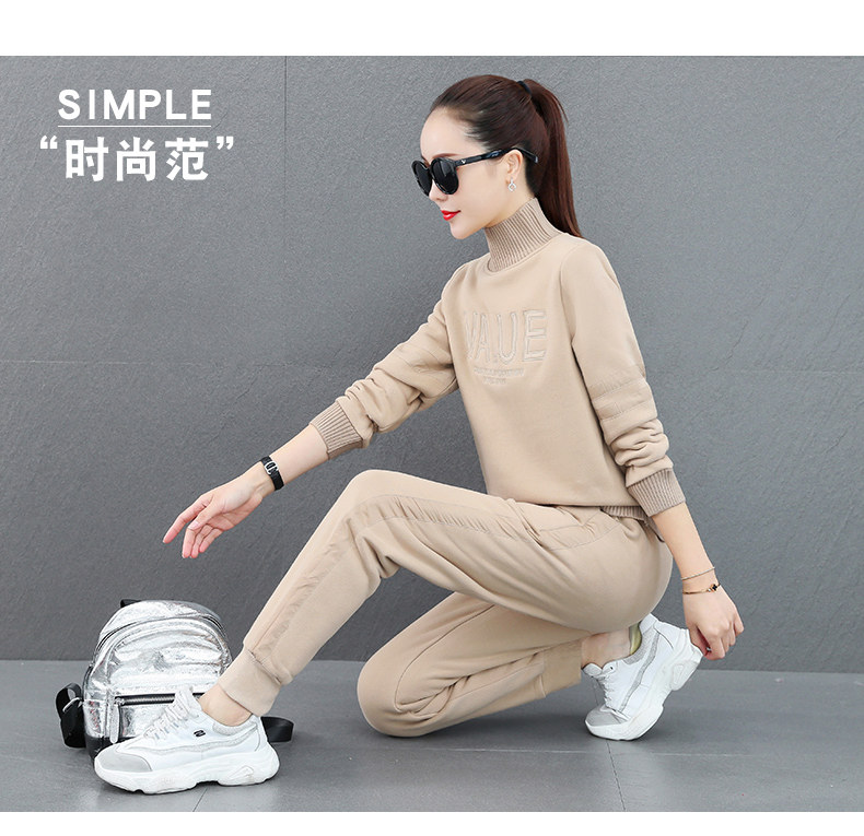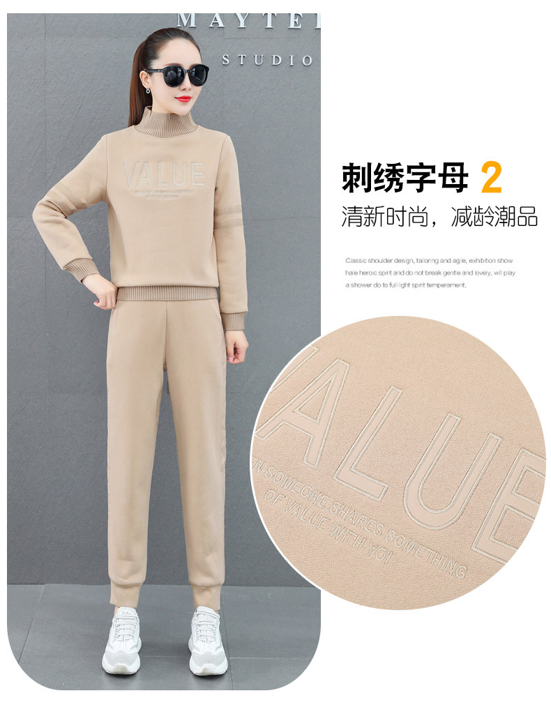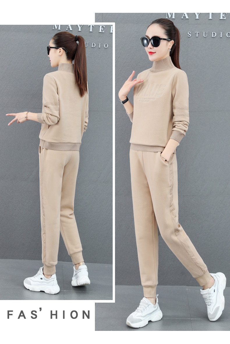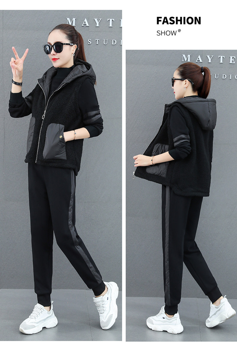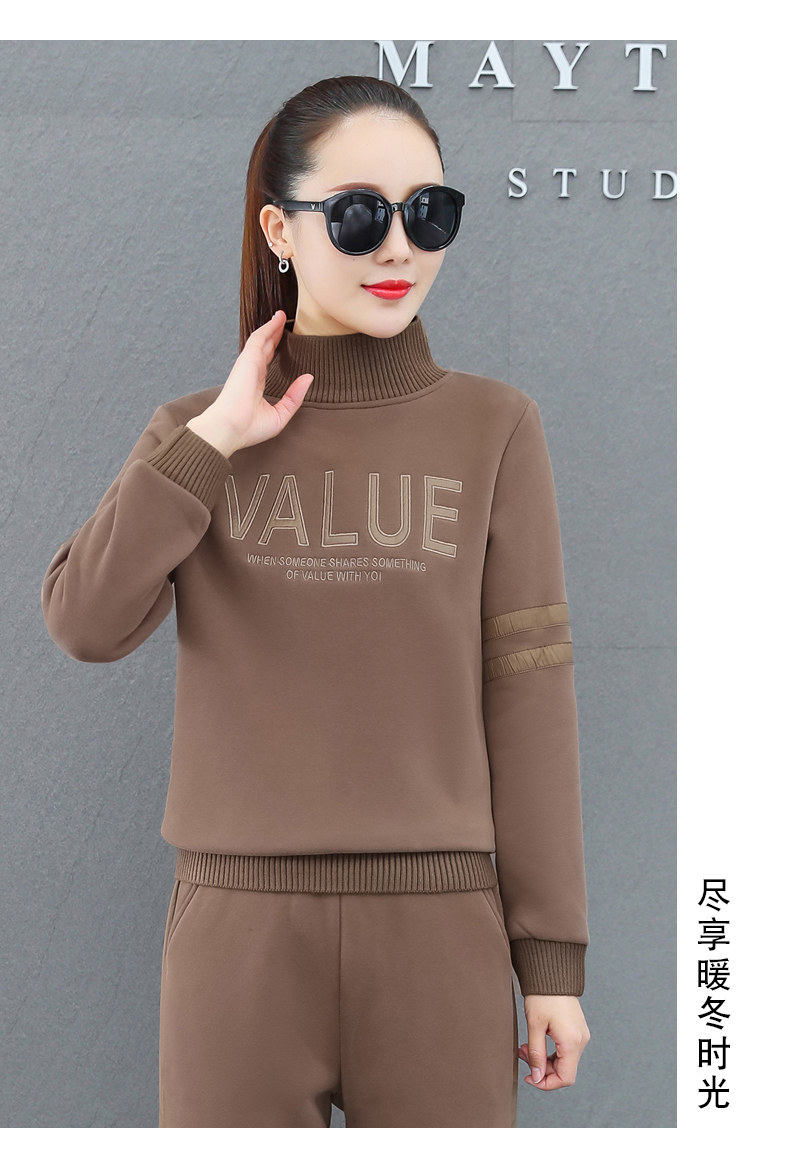 SP-T20909加绒运动套装女秋冬新款加厚羊羔毛保暖休闲卫衣三件套