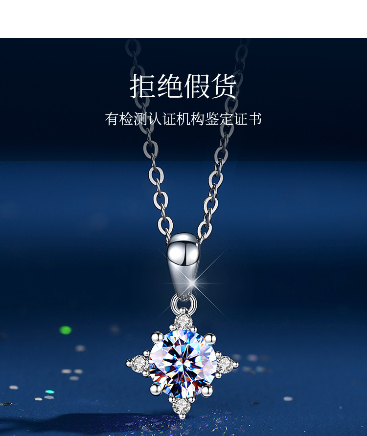 Winy999足银隽永之爱项链1克拉莫桑钻吊坠颈链轻奢小众高级感银首饰送女友生日礼物