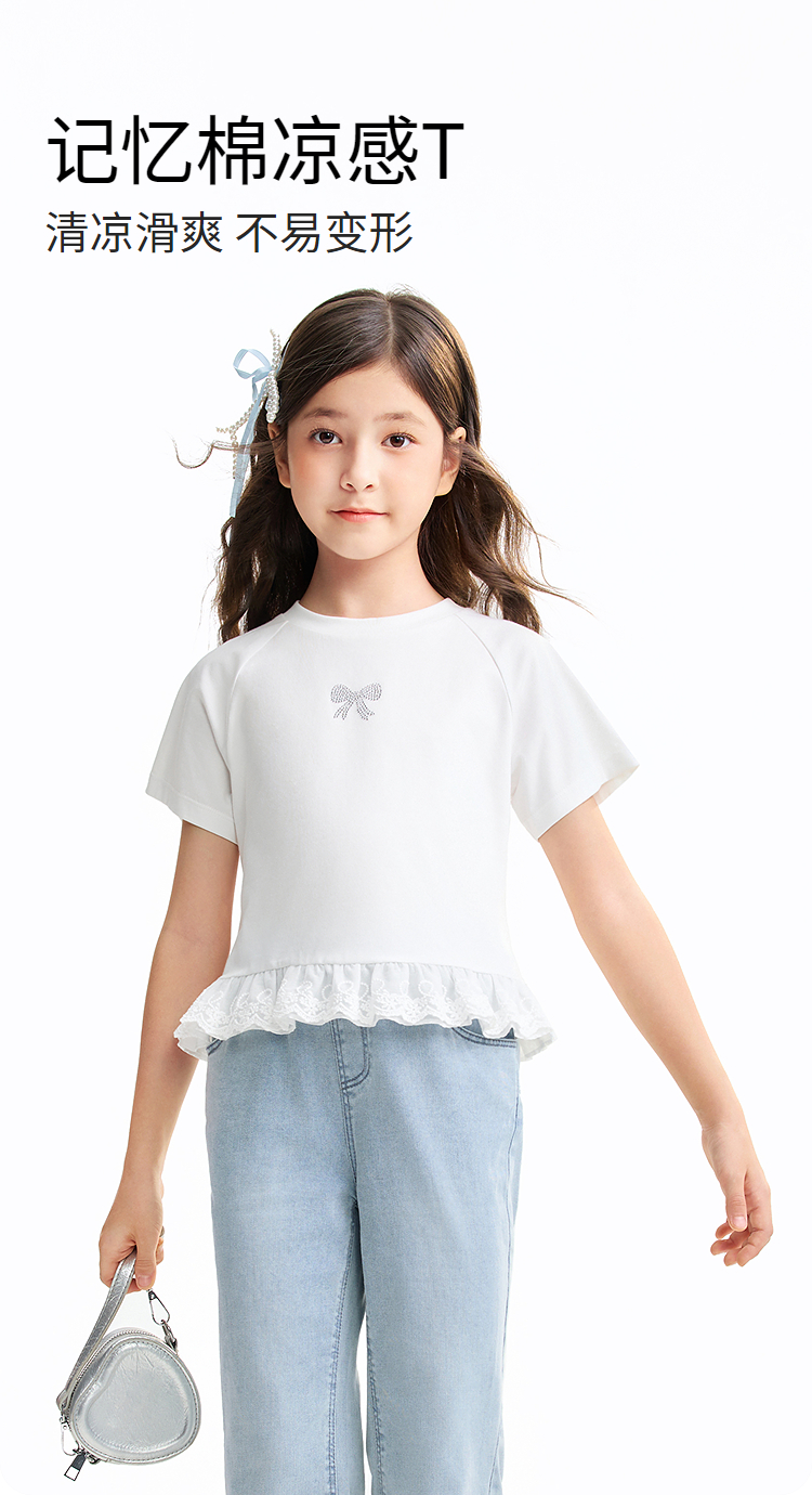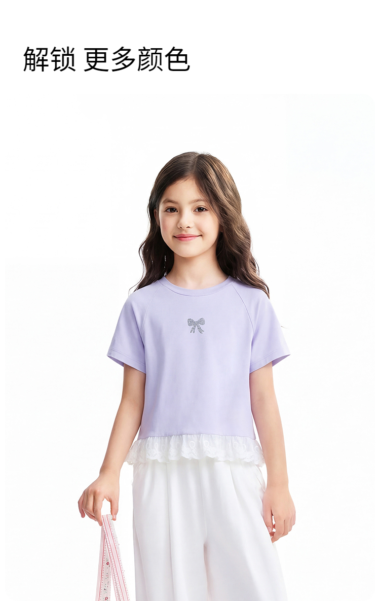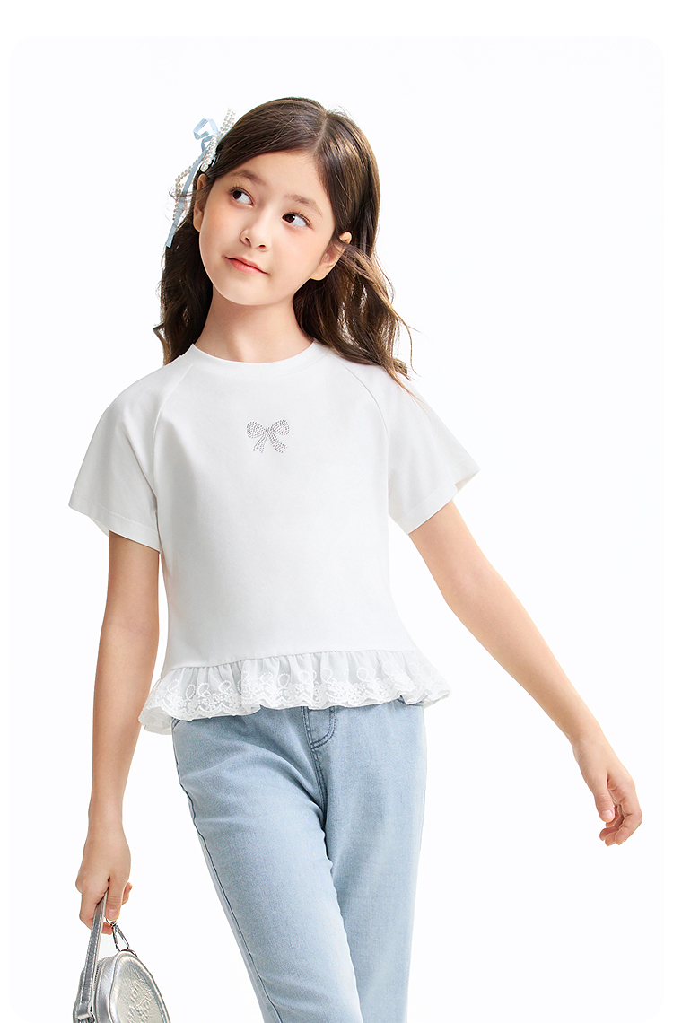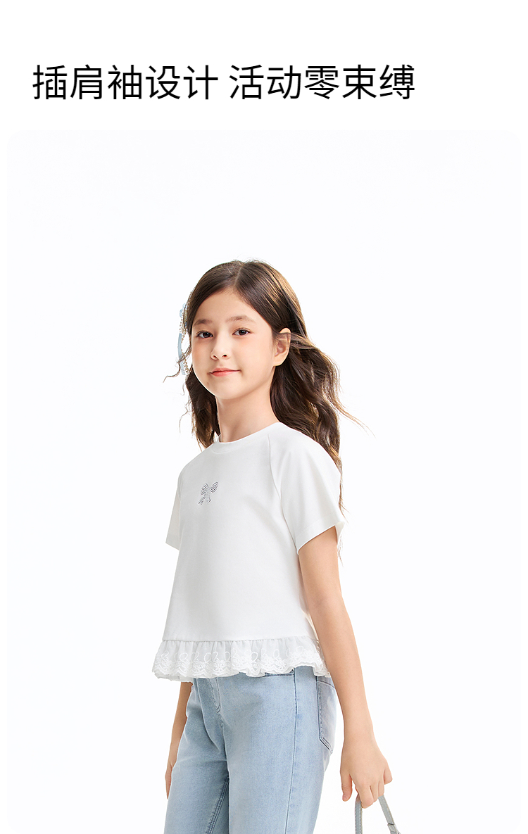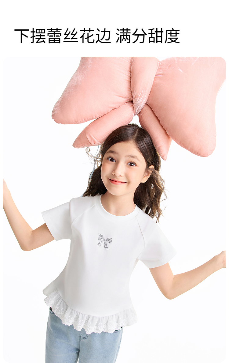 女童圆领短袖针织衫夏季新款安奈儿童装EG621637
