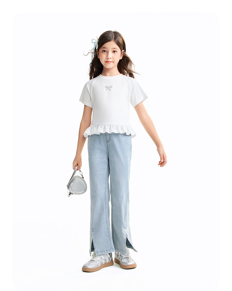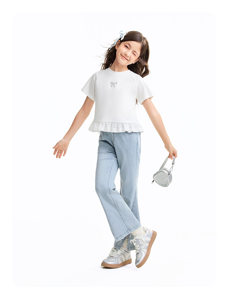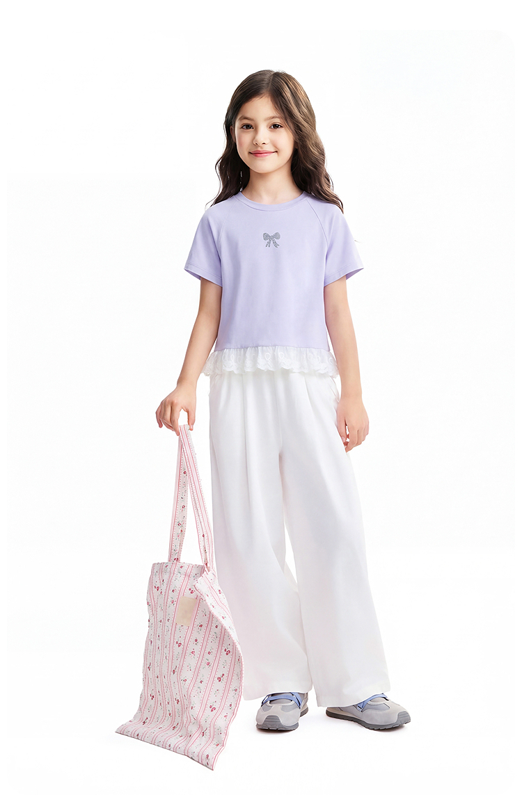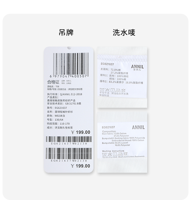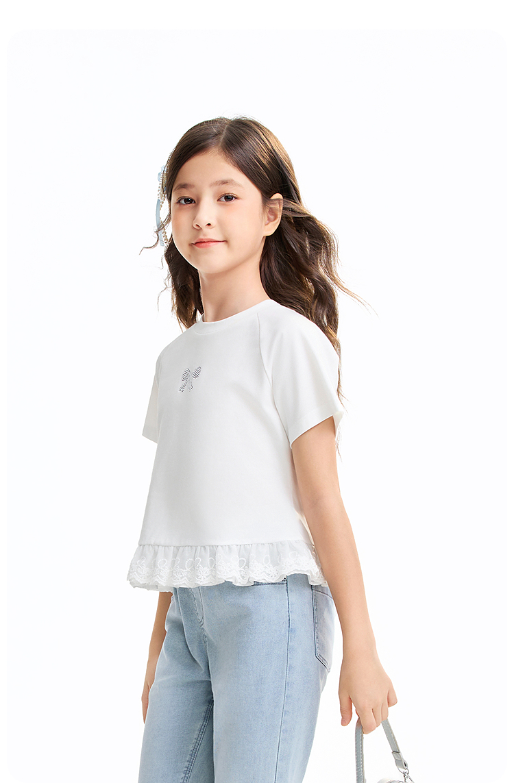 女童圆领短袖针织衫夏季新款安奈儿童装EG621637
