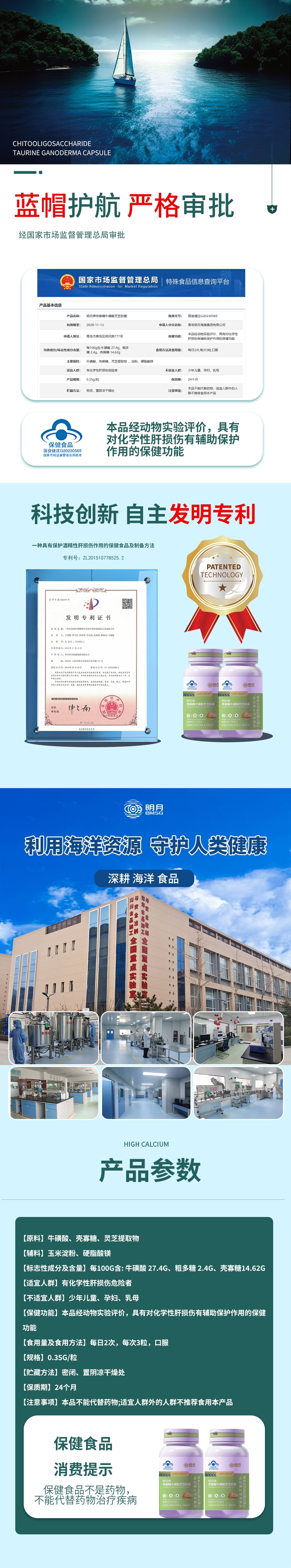 【明月集团 官方直发】明月壳寡糖牛磺酸灵芝胶囊 保肝护肝 蓝帽子认证 国家级海洋重点实验室