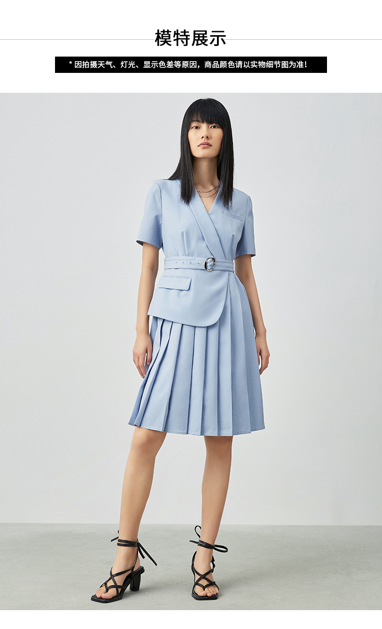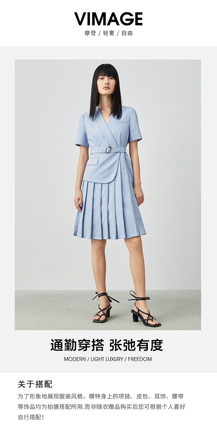 VIMAGE纬漫纪夏季通勤V领收腰西装裙连衣裙V1507125
