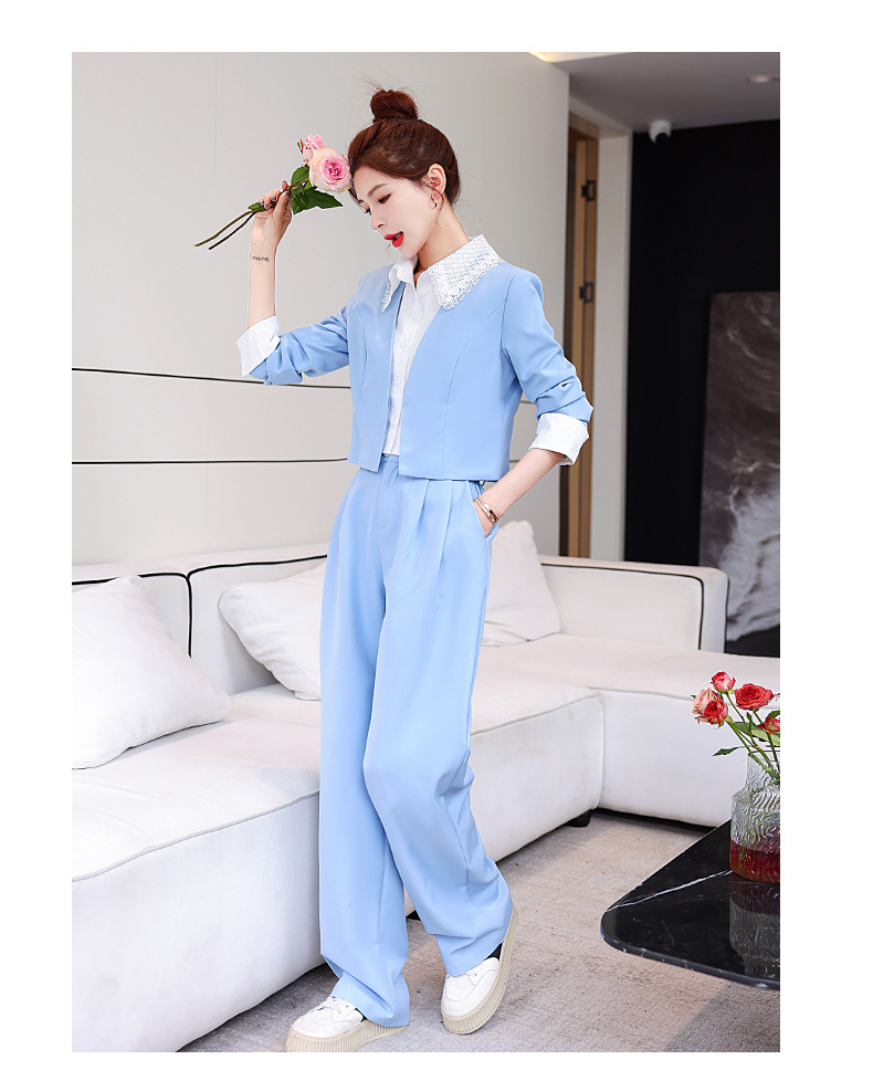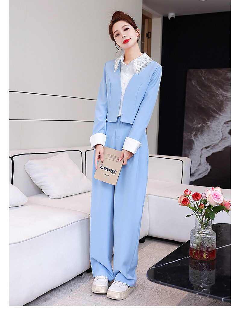 重工艺休闲衬衣领显瘦显高气质小个子甜美时尚拼接两件套LZ2903