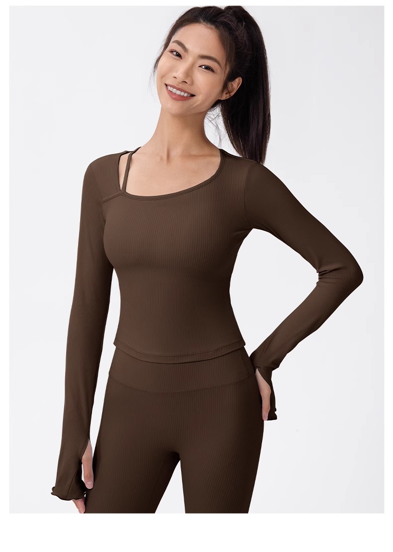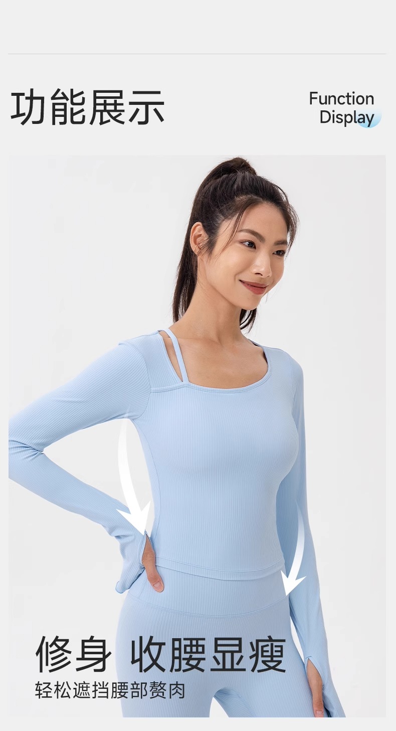 跃牌【欲动春风】系列 秋冬瑜伽服带胸垫裸感紧身显瘦健身上衣42555