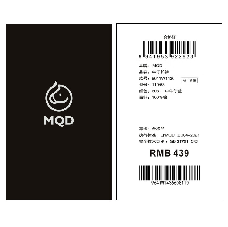 【MQD】童装男大童春新款学院风潮酷休闲牛仔长裤