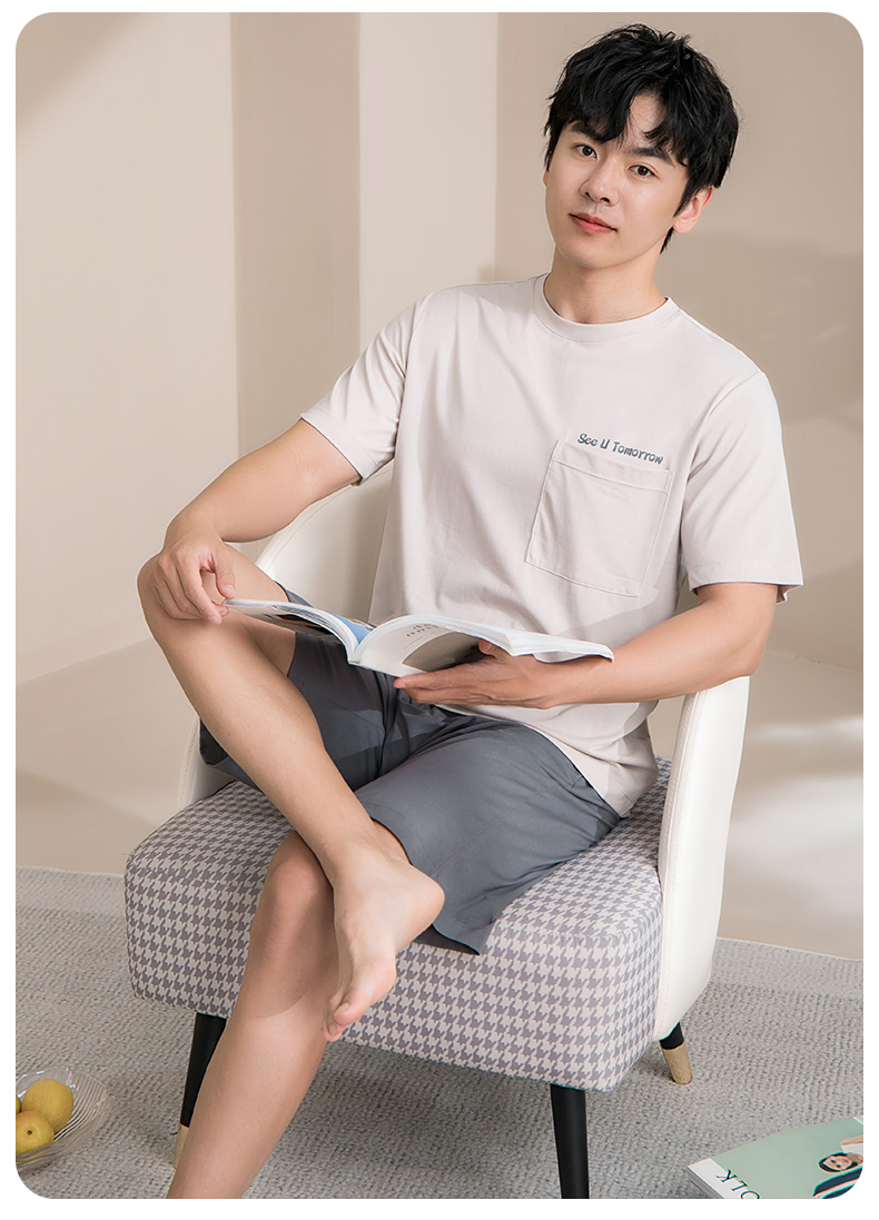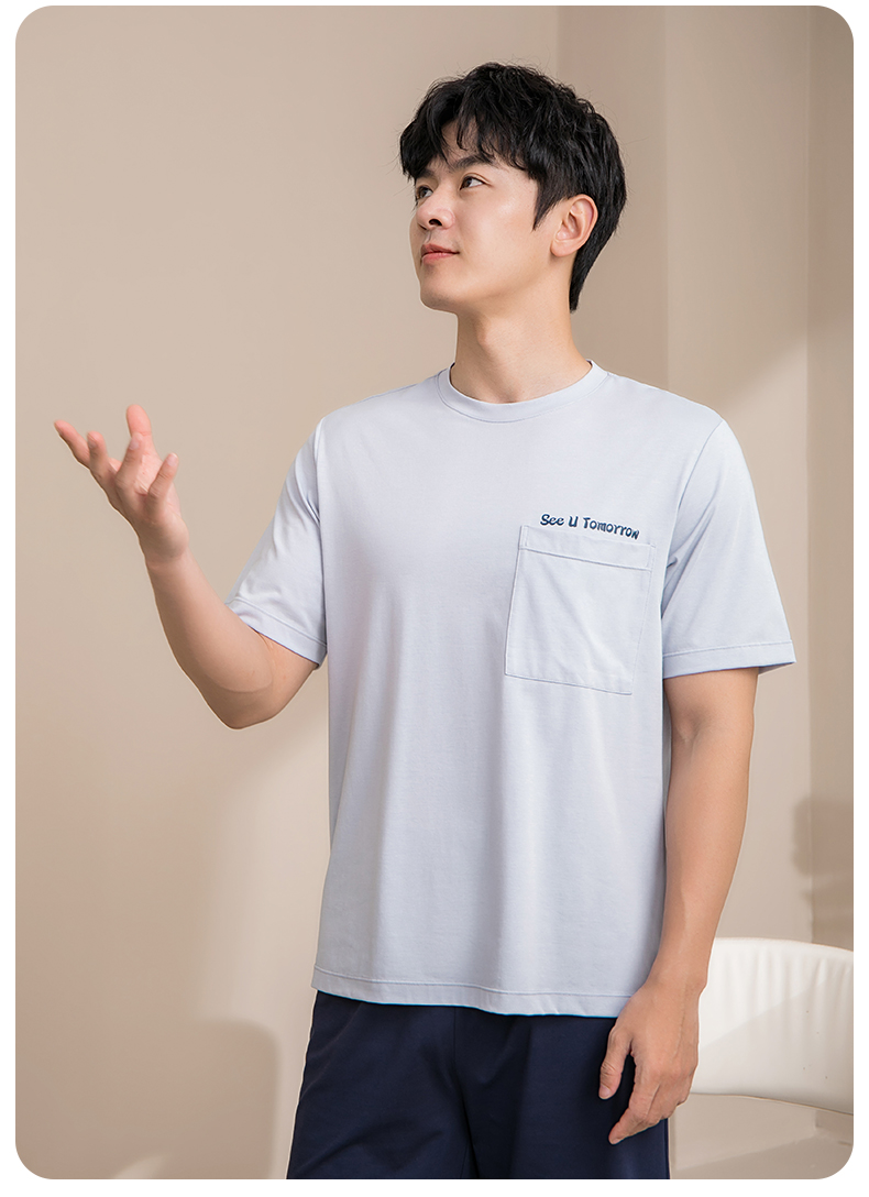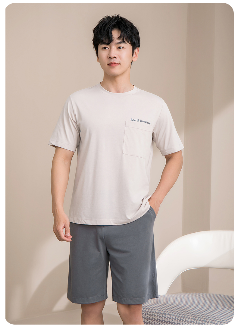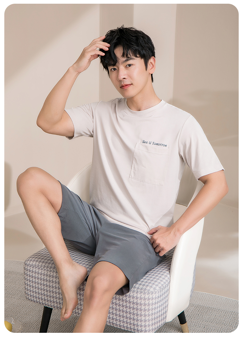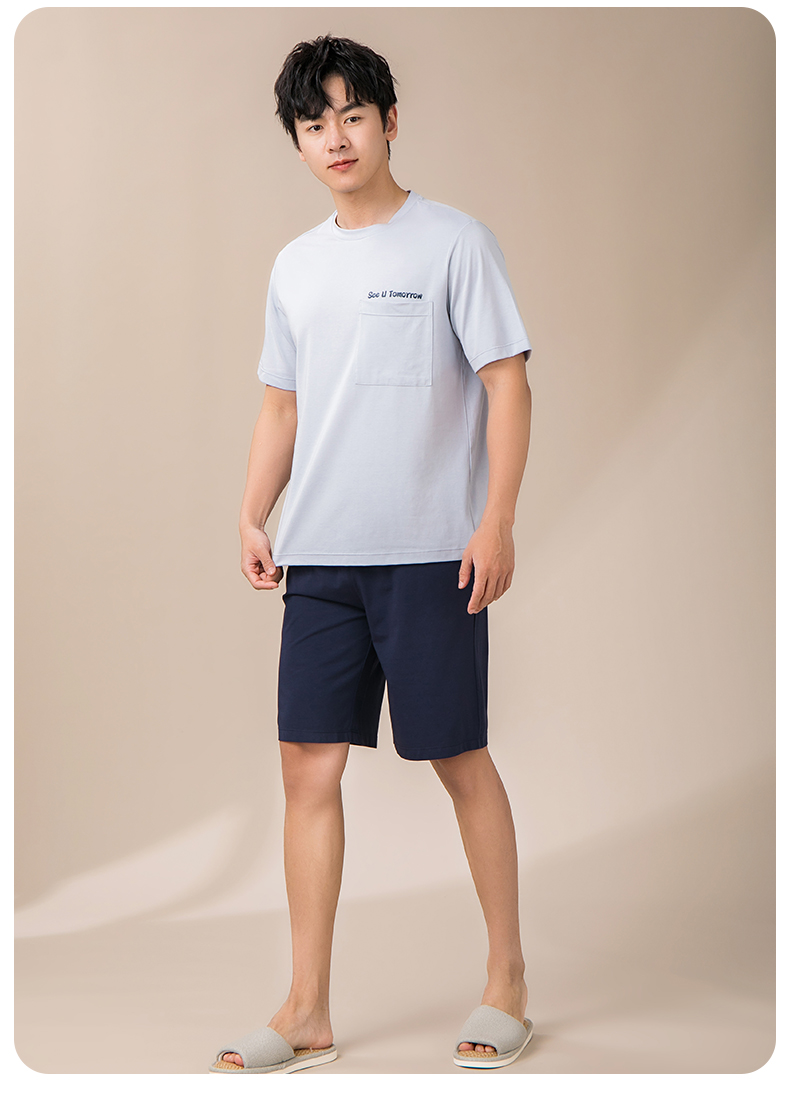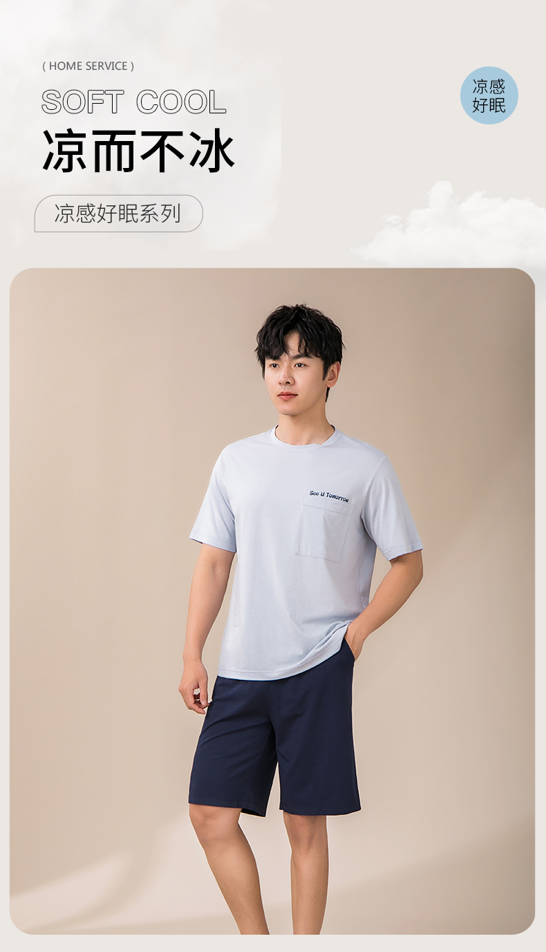 康妮雅睡衣男夏季男式短袖短裤套头套装