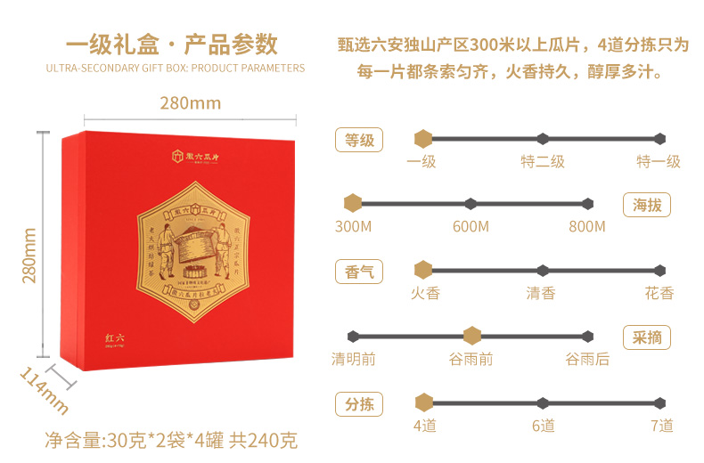 君呼甄选 六安瓜片红六礼盒一240g
