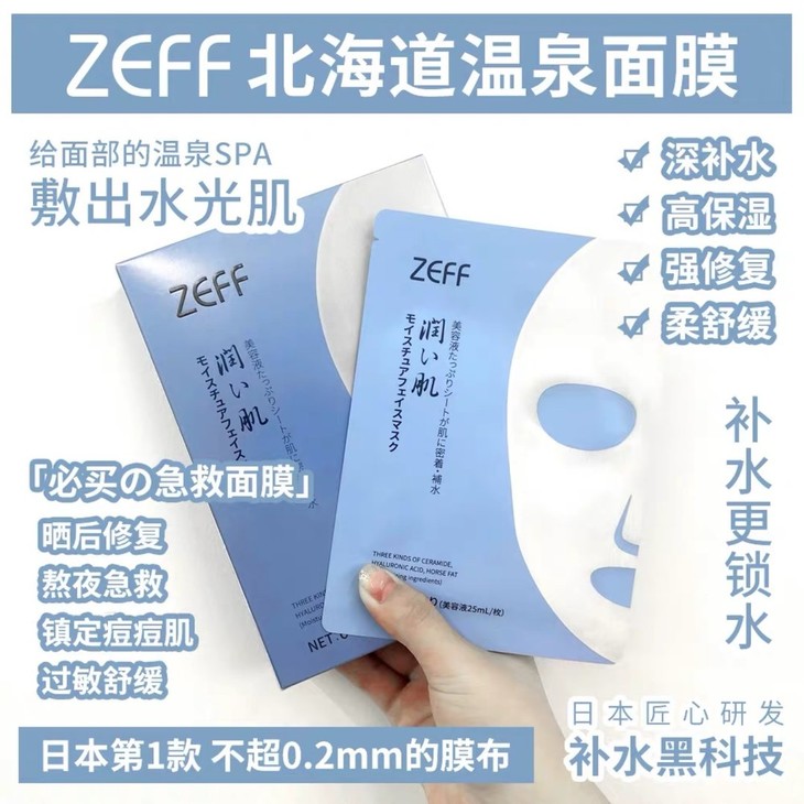 ZEFF面膜6枚#蓝色高保湿/#白色美白/#金色抗糖👍ZEFF它家的面膜是不容小觑滴👀,膜布简直是用丝滑软糯来形容,很薄很透气🌬,上脸十分服帖,全面护理,重回少女肌👧。这款是专为不同的肌肤问题而研发的专属定制面膜。 🔘#蓝色北海道温泉型,主打功效是舒缓、补水镇静,适合容易敏感、皮肤容易泛红的肌肤。 🔘#白色377备长炭型,主打美白补水、去黄、均匀肤色,适合肤色不均,有美白需求的妹子哦。 🔘#金色黄金抗糖型,主打抗糖淡纹、补水保湿,主要针对皮肤糖化、蜡黄、松弛等问题。