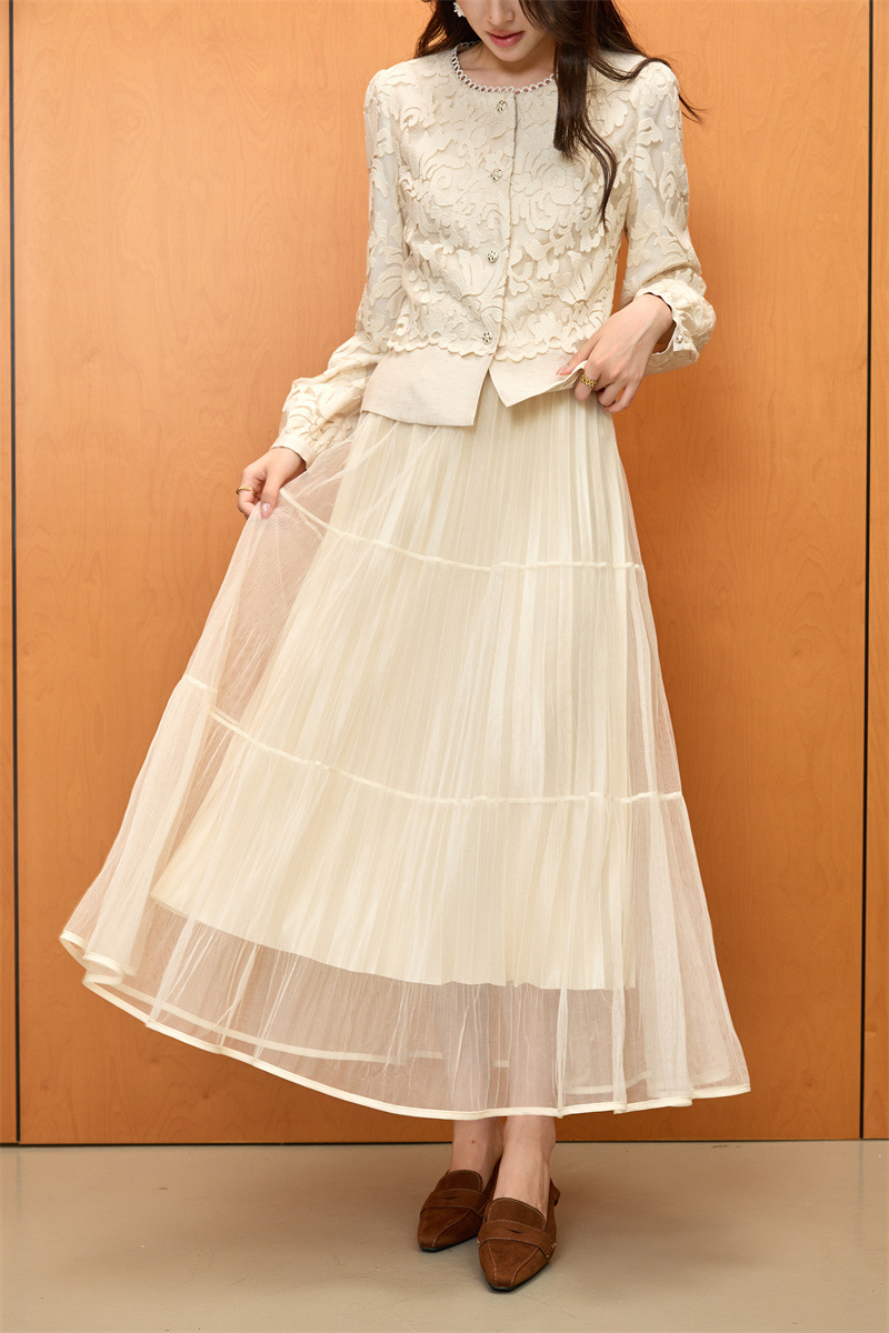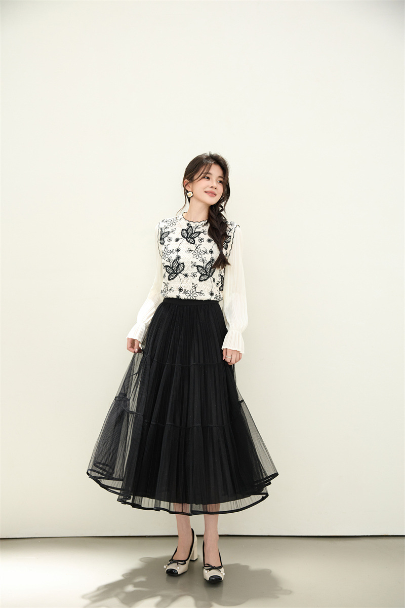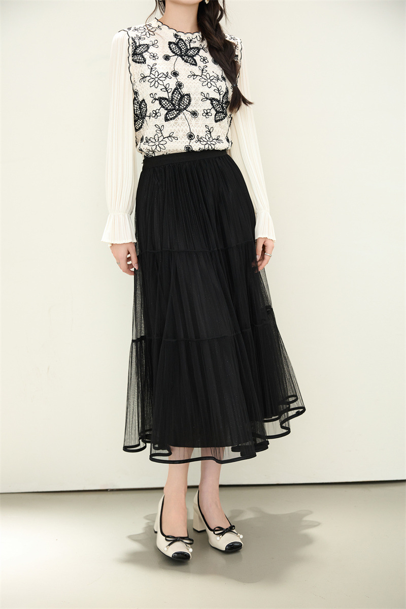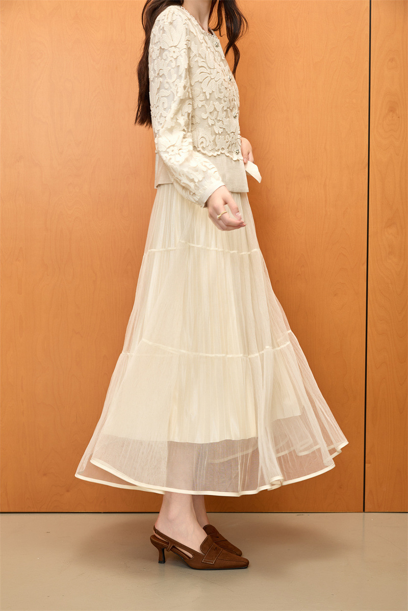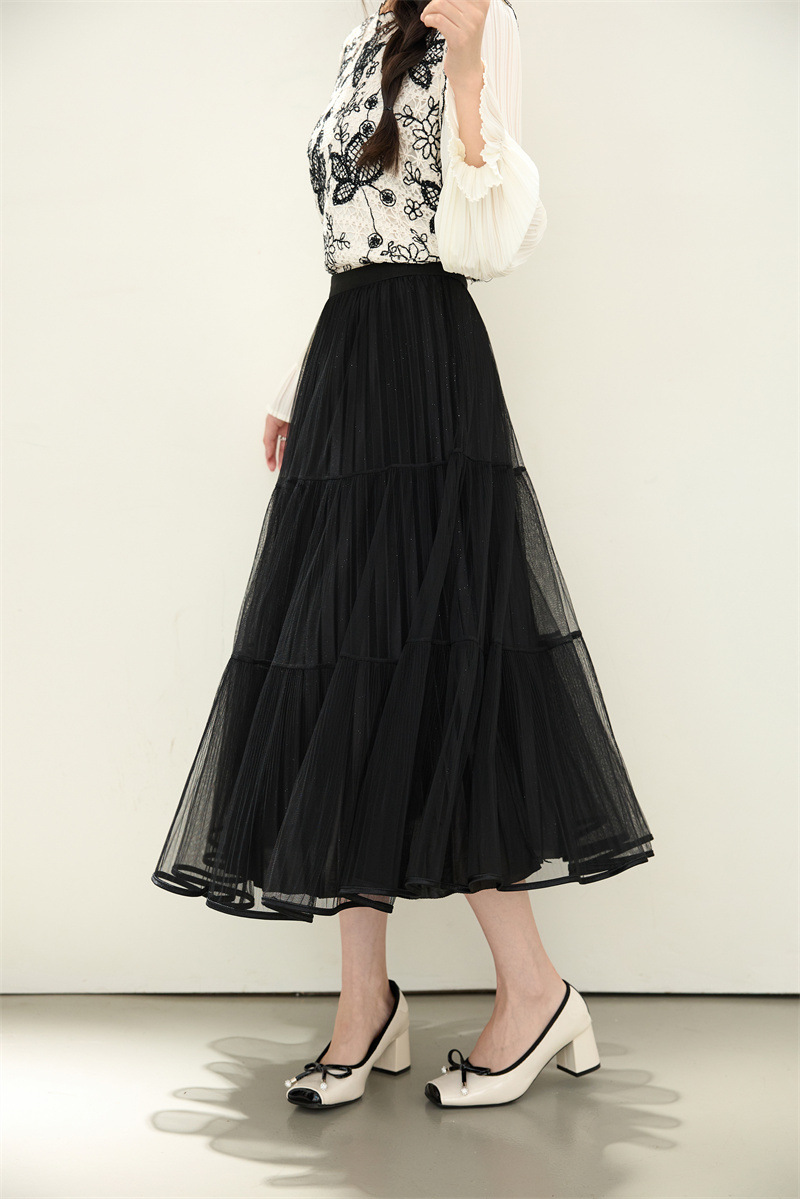「自」全新升级【铂金会员183/天猫239/差价56】(55145)洛诗琳新款百褶网纱半身裙2025秋季气质简约女优雅A字裙女