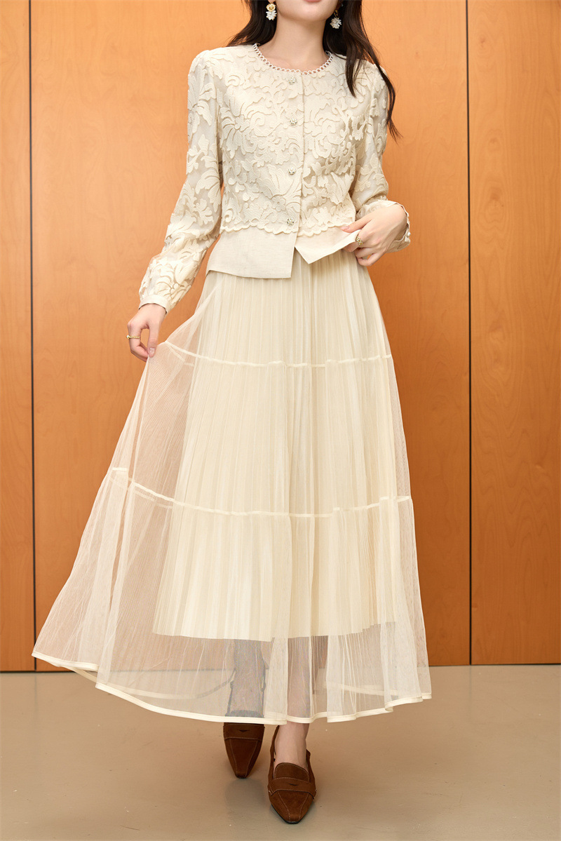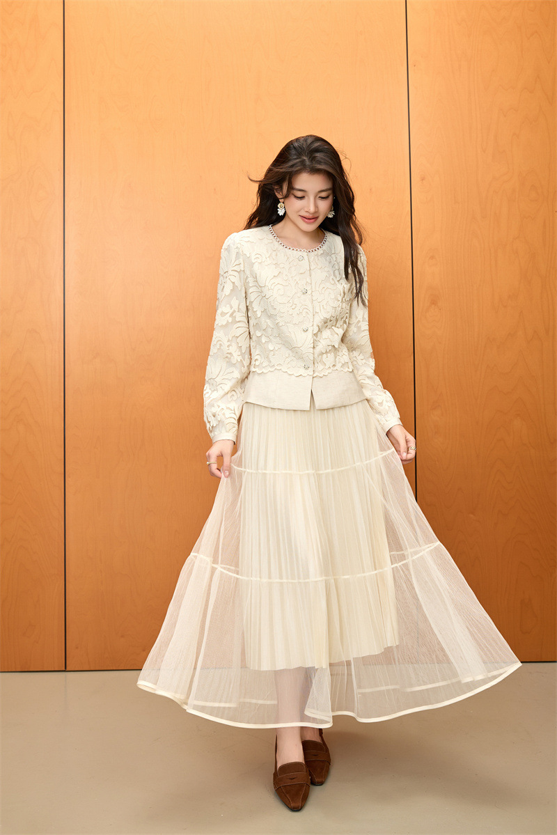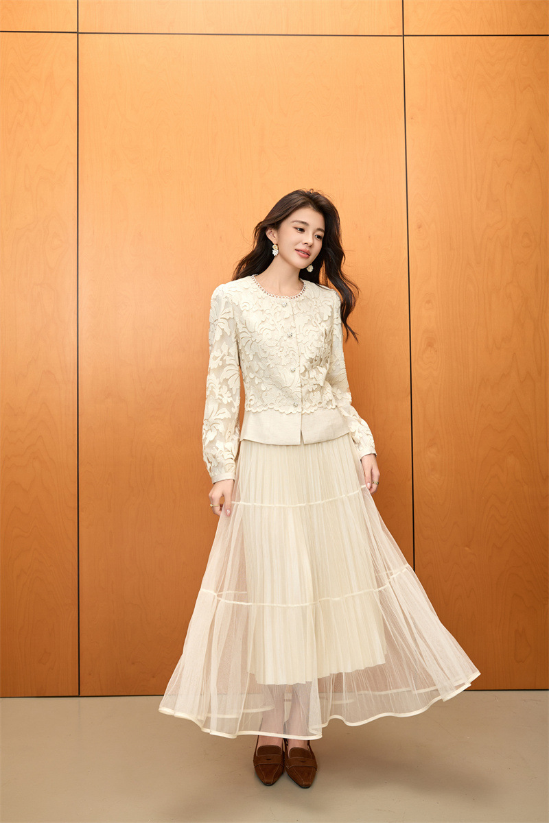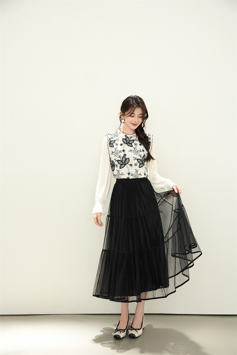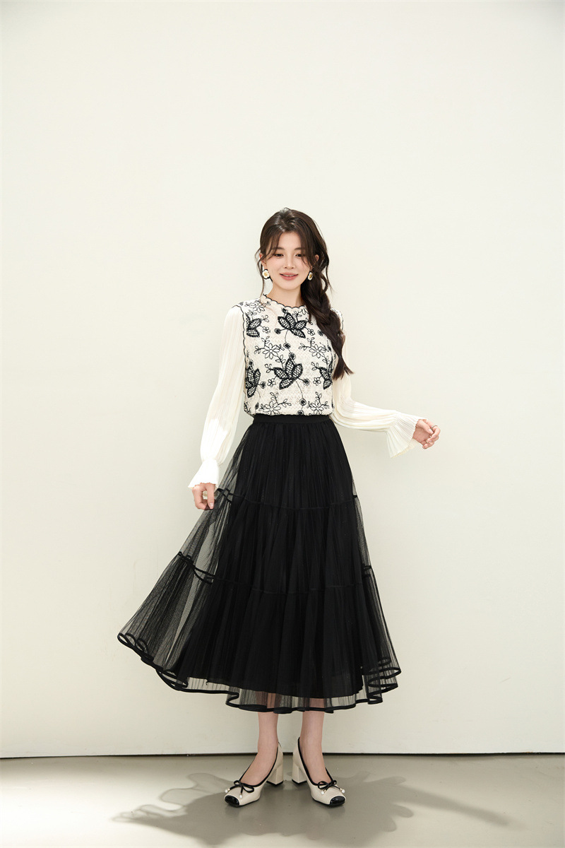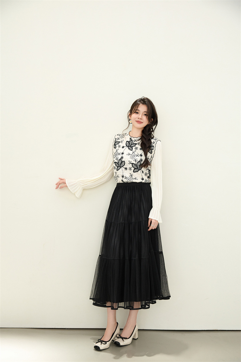 「自」全新升级【铂金会员183/天猫239/差价56】(55145)洛诗琳新款百褶网纱半身裙2025秋季气质简约女优雅A字裙女