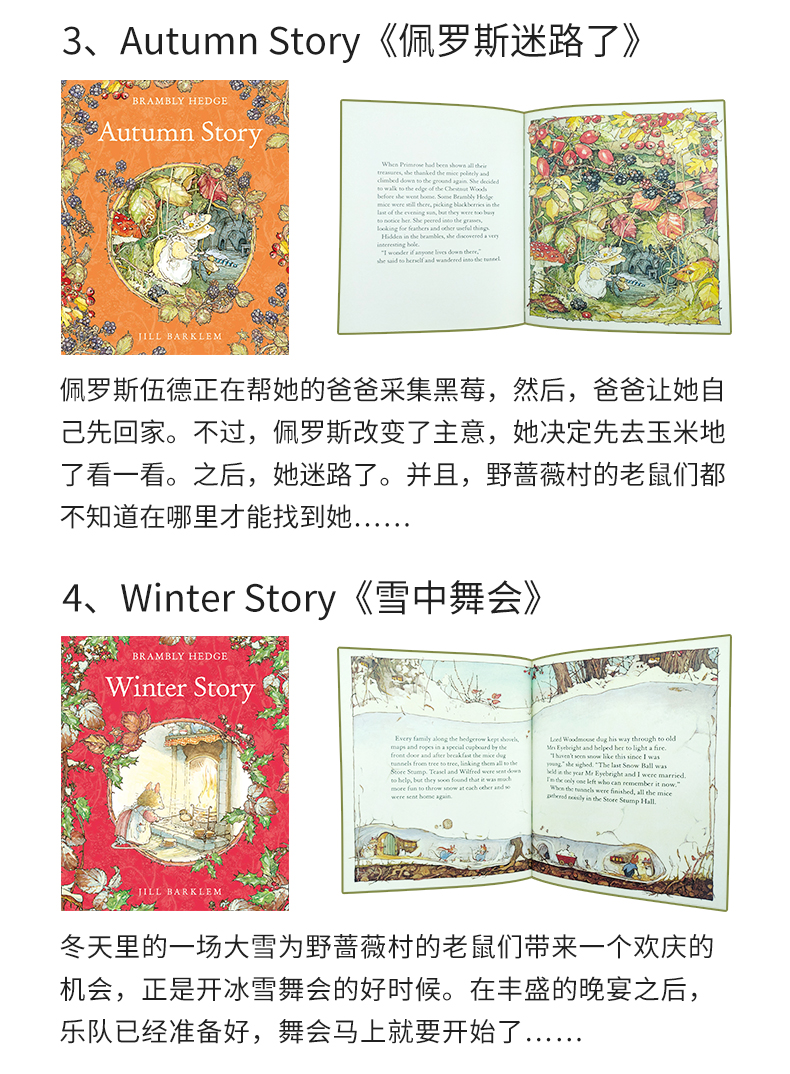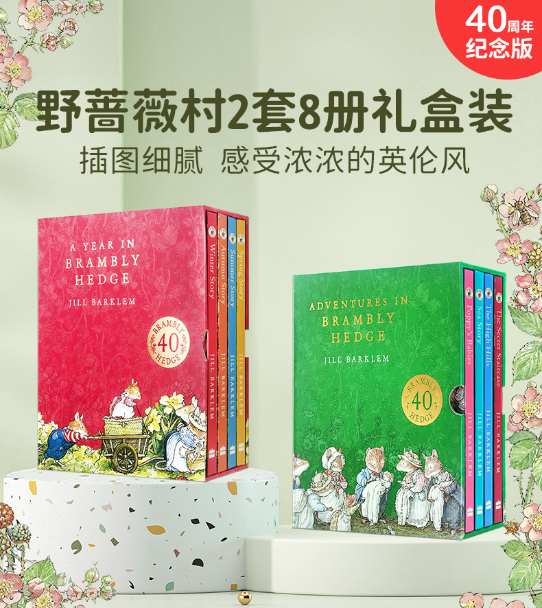有音频 英文原版 野蔷薇村2套8册礼盒装 Brambly Hedge