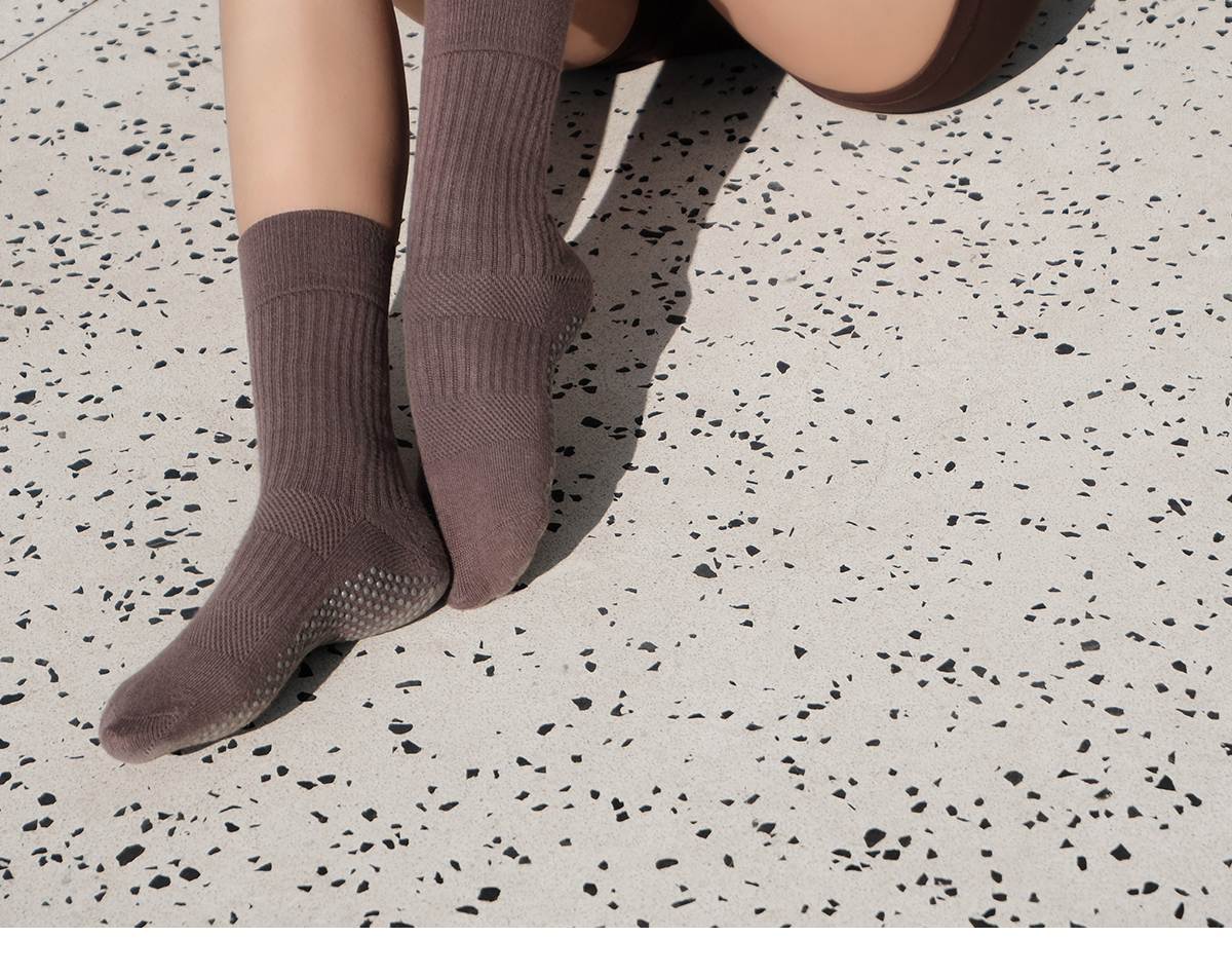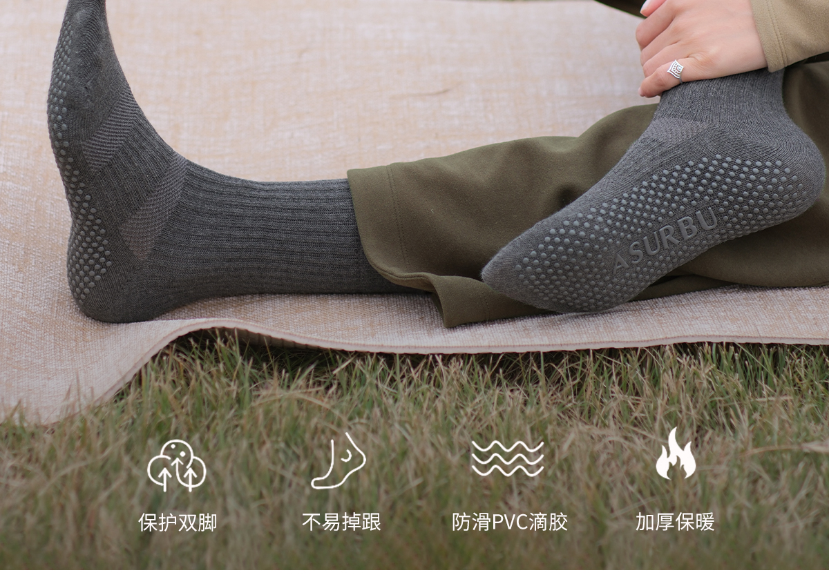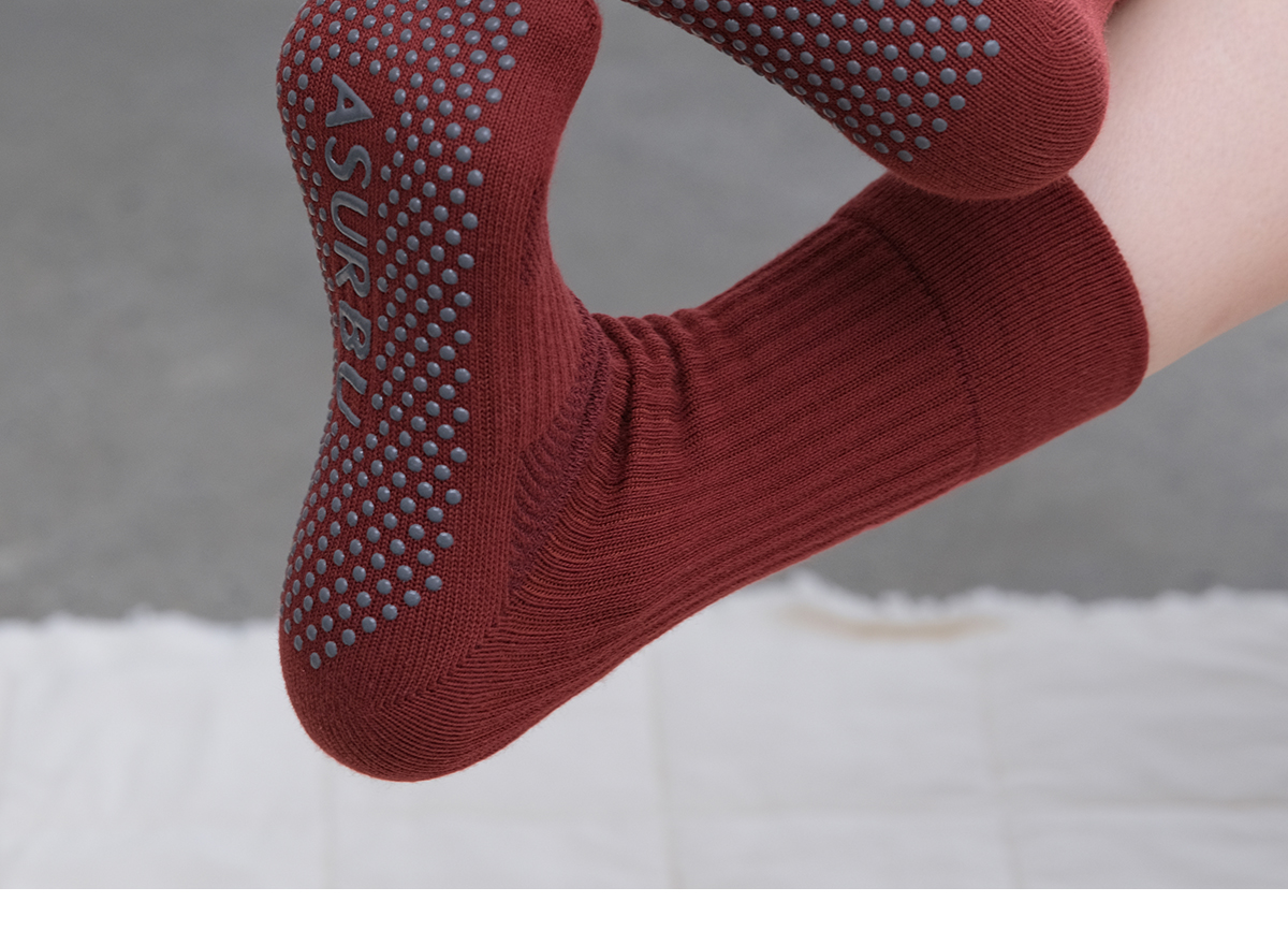 爱暇步专业防滑直筒瑜伽袜女秋冬中筒室内普拉提专用健身运动袜子