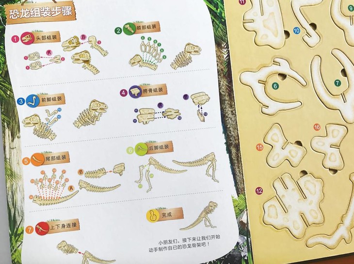 ③搭建超酷恐龙骨架:动手搭建立体恐龙骨架模型,培养孩子的动手操作能力。