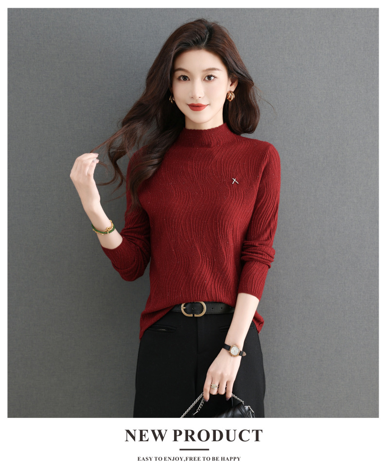 CC-28-1285修身弹力毛衣女春秋2024新款半高领羊毛针织上衣薄款打底衫内搭