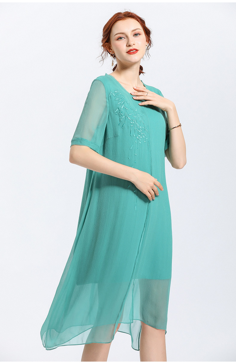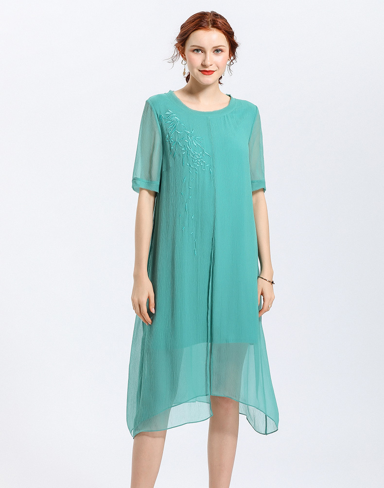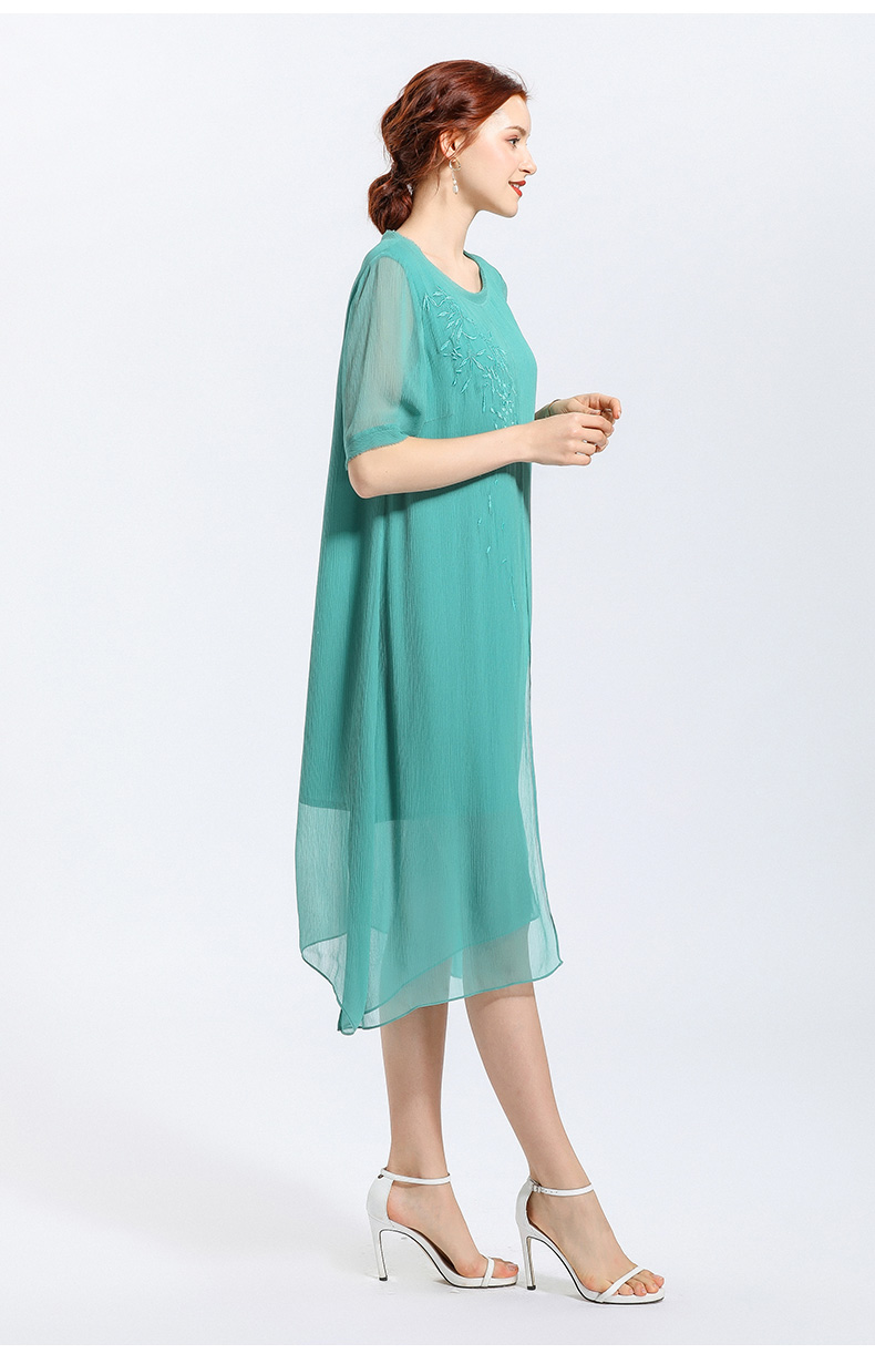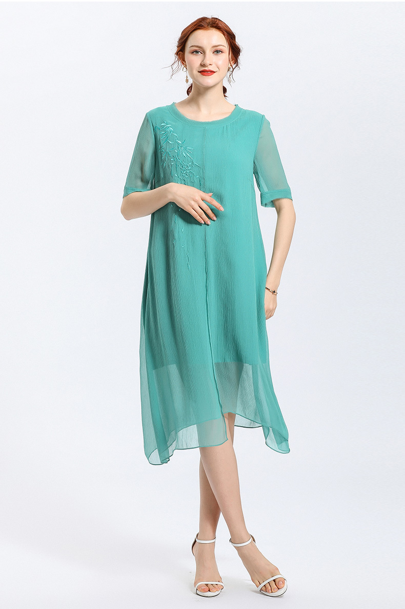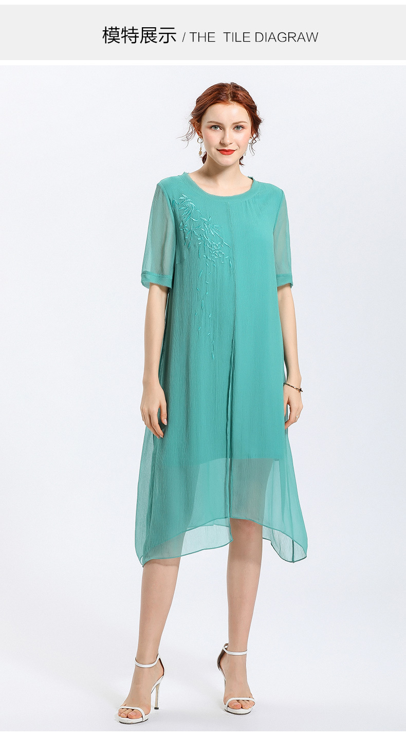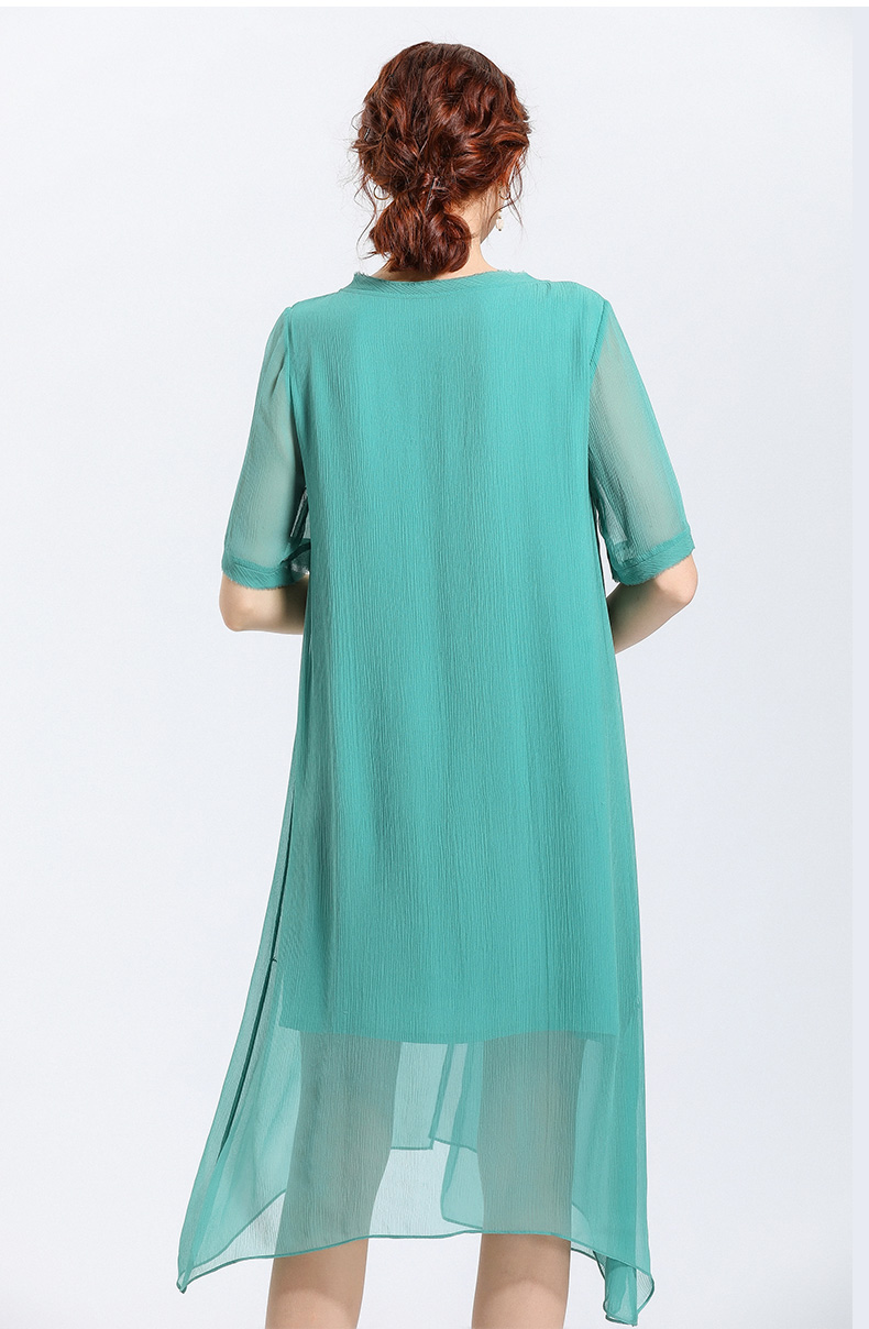 乔万尼夏季真丝纯色气质宽松网纱桑蚕丝连衣裙女长款过膝EN2E506
