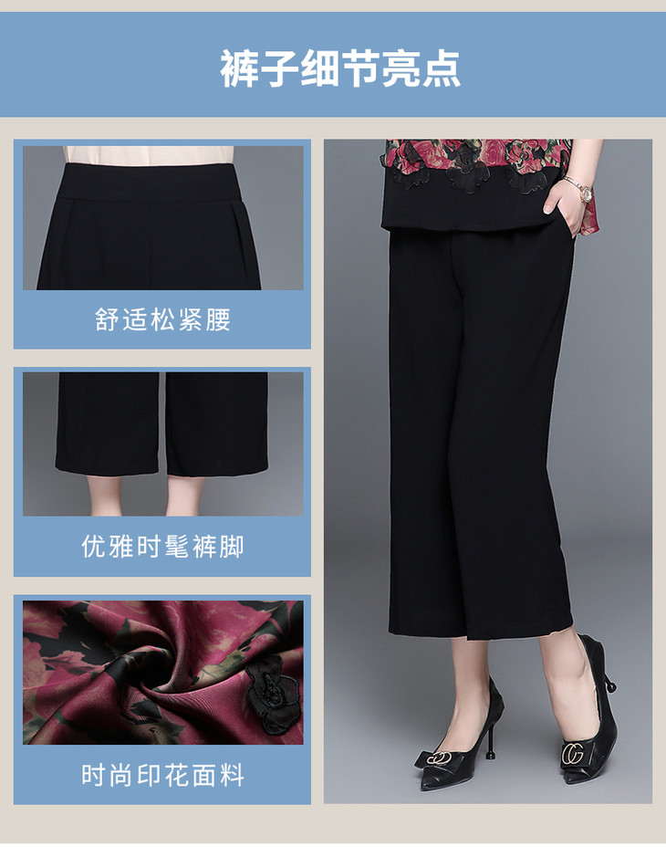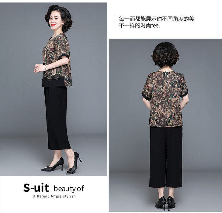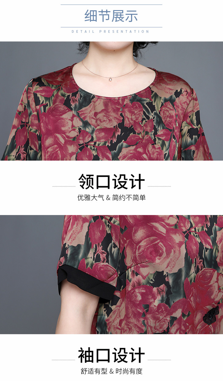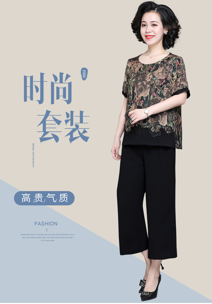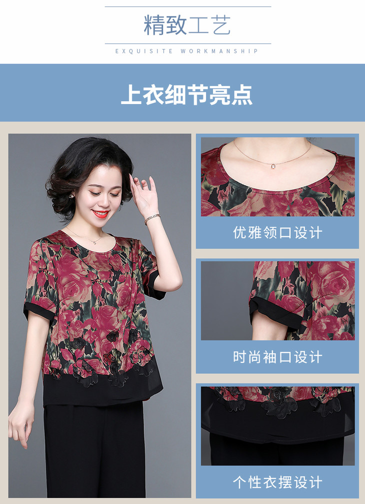 XX-3216妈妈夏装丝缎T恤阔太太短袖减龄薄两件套装