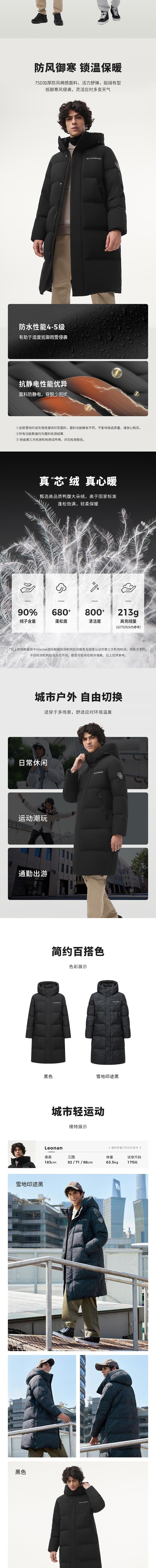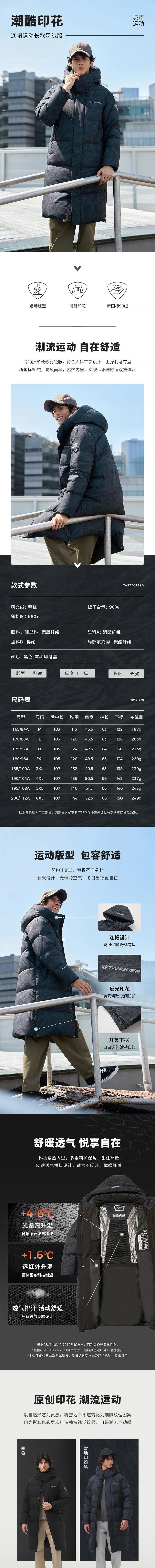 坦博尔 长款连帽羽绒服男 TAF550779A