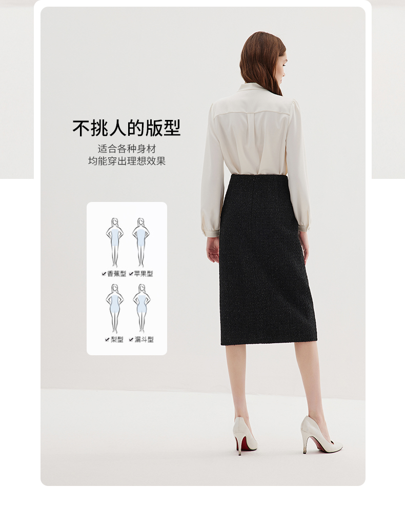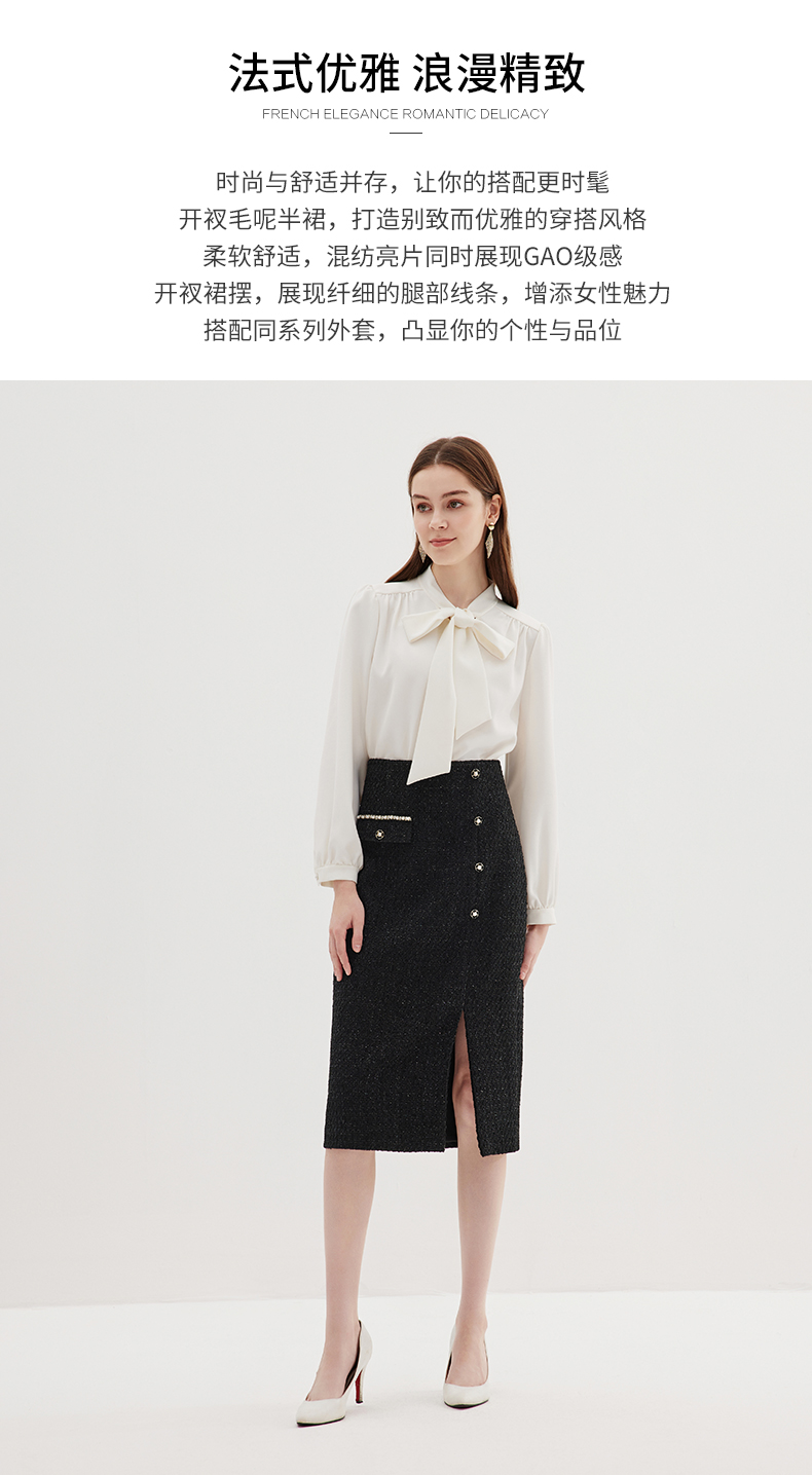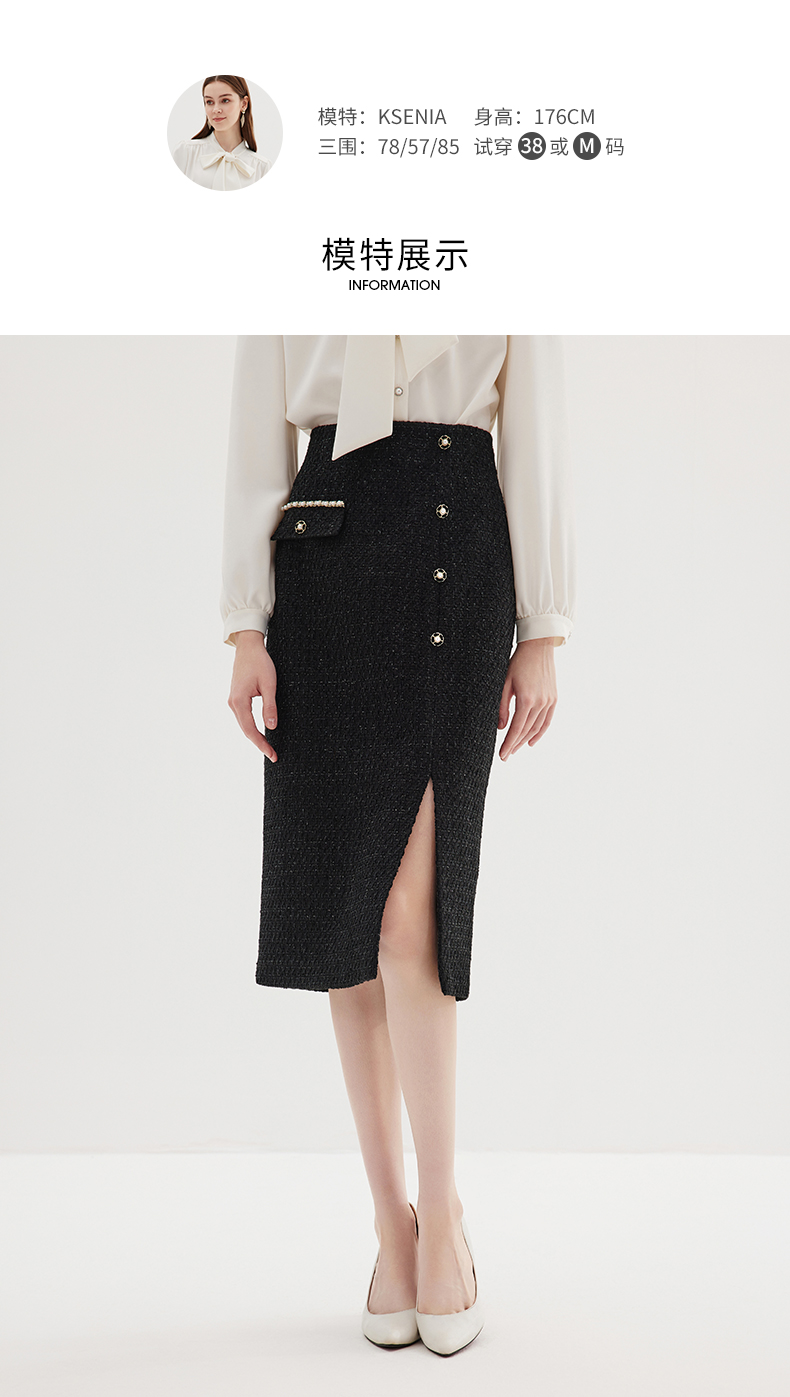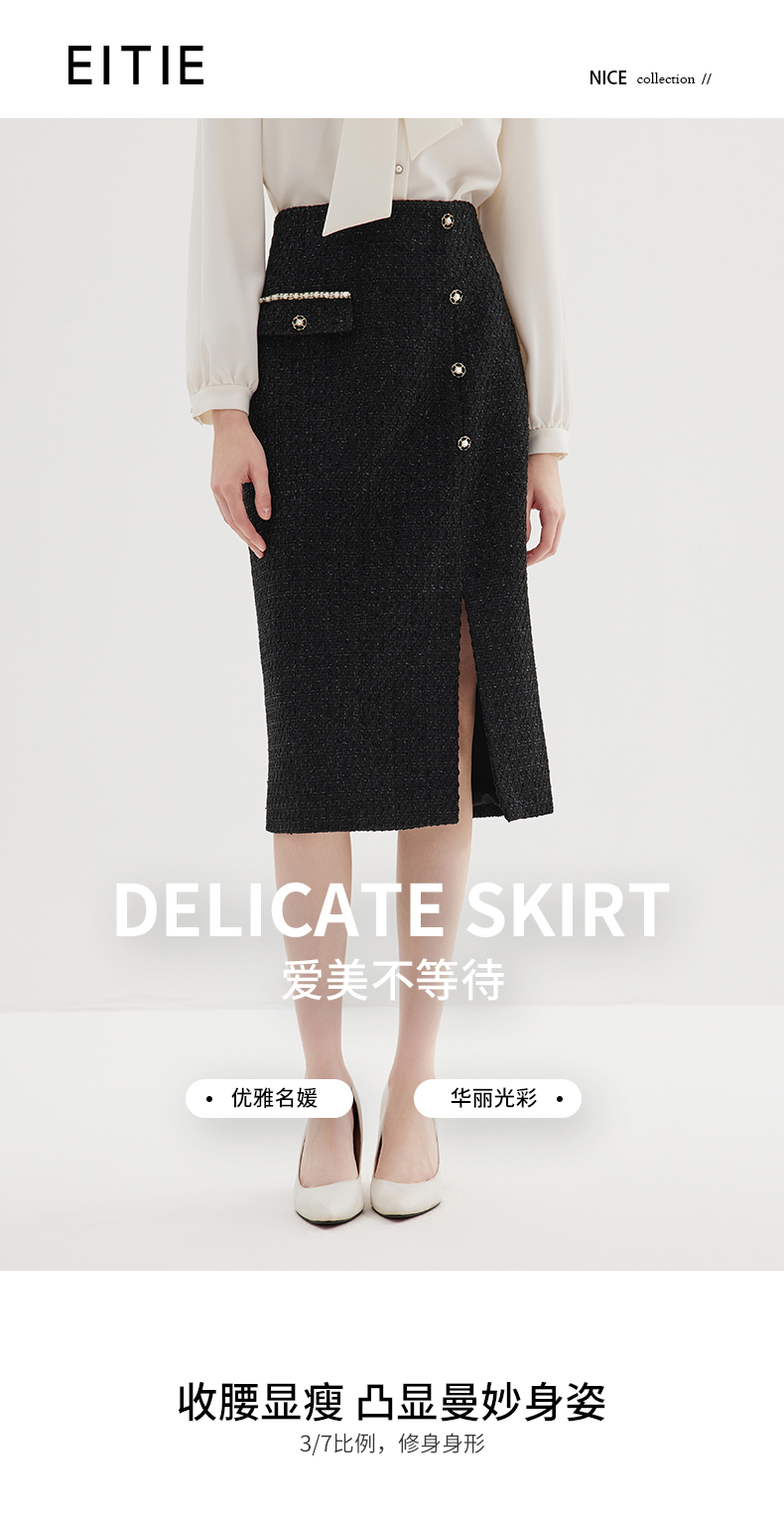 EITIE爱特爱秋季新款时尚通勤百搭洋气显瘦包臀开叉半身裙女C2306214