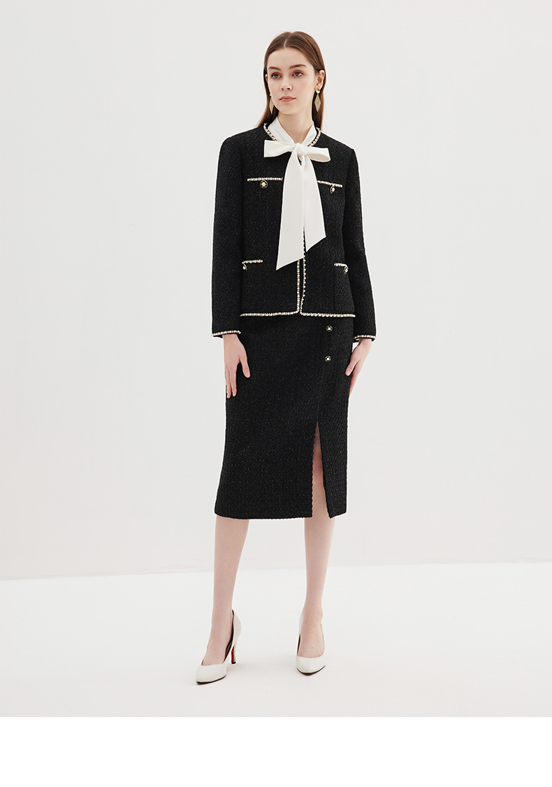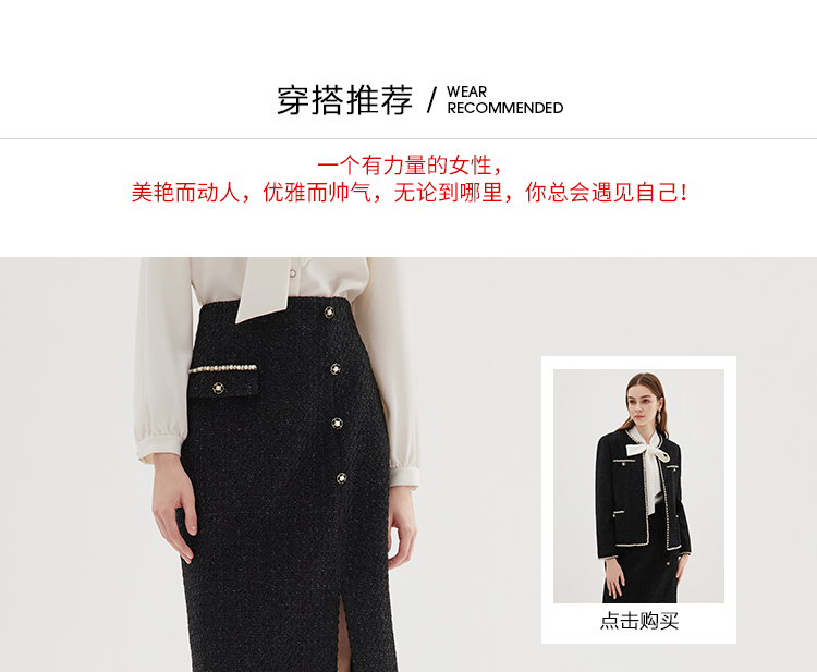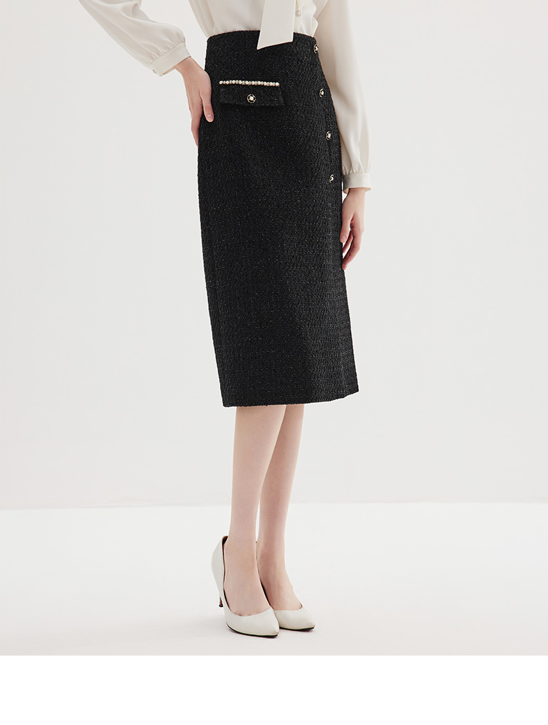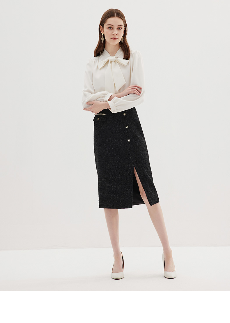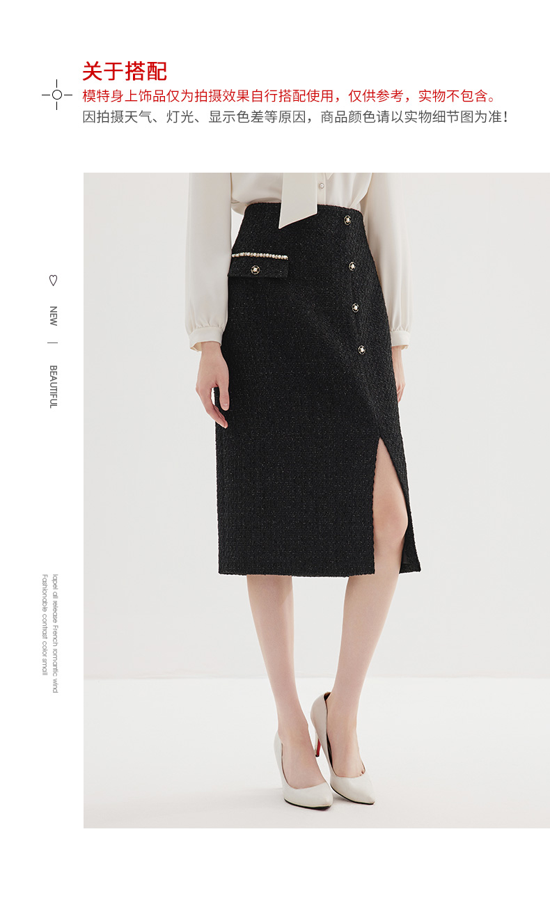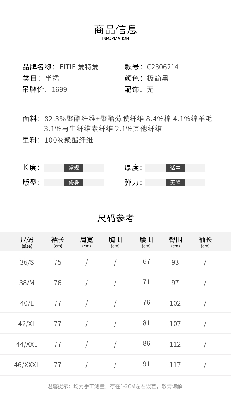 EITIE爱特爱秋季新款时尚通勤百搭洋气显瘦包臀开叉半身裙女C2306214