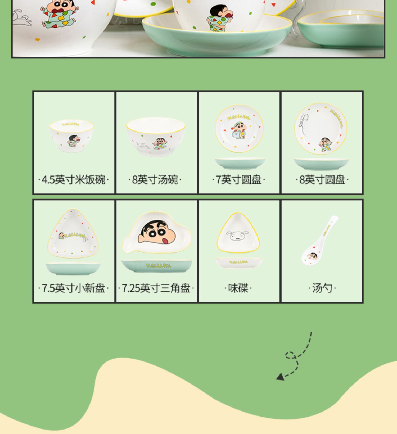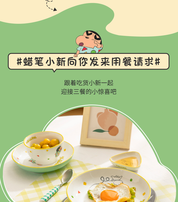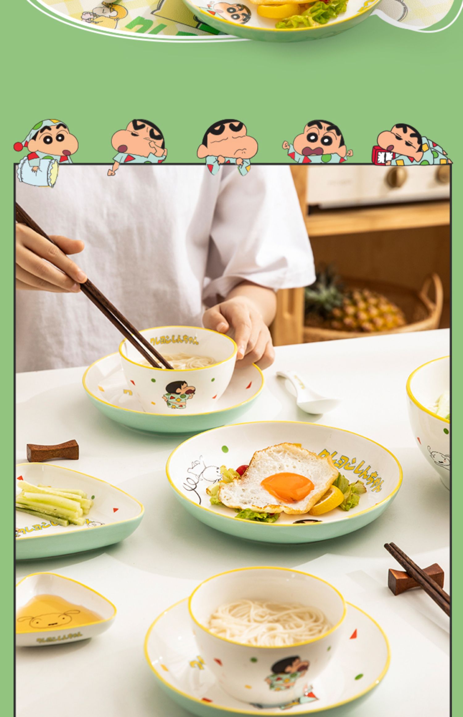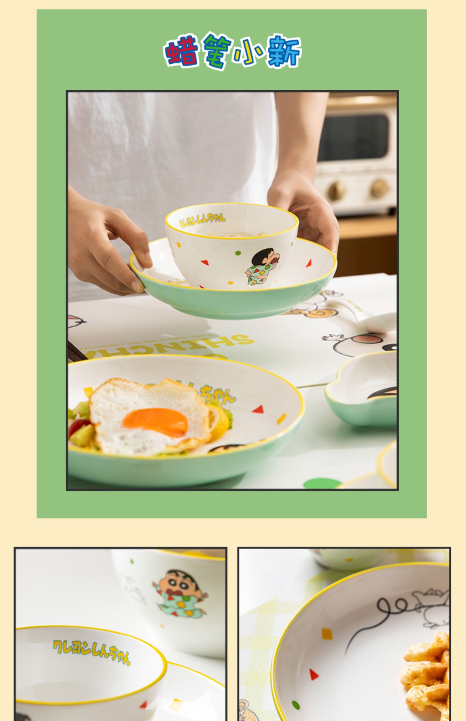 【摩登主妇&蜡笔小新联名】碗碟套装家用可爱面饭碗盘子陶瓷餐具