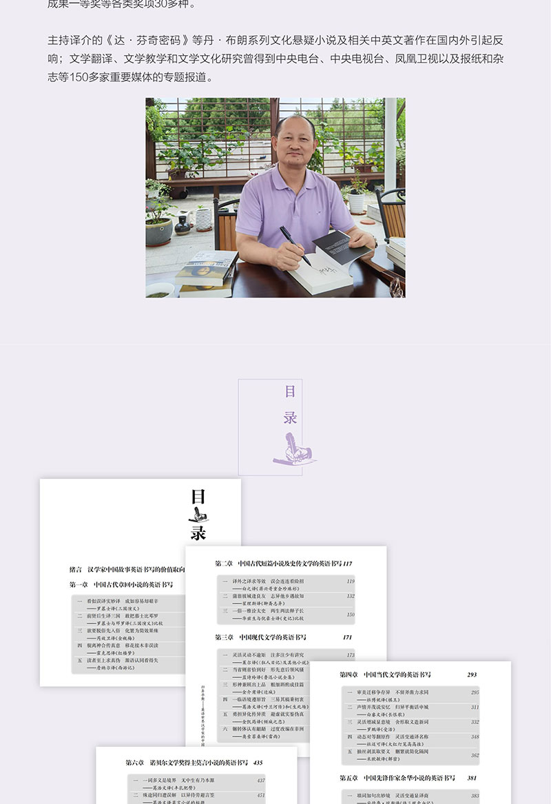 在《中国社会科学》(中英文3篇)《文学评论》《外国文学评论》《中国翻译》《人民日报》《解放日报》等重要报刊发表学术论文300多篇;出版中英文著作和译著50多部,编著150多种;获得第八届高等学校科学研究优秀成果人文社会科学一等奖(合作)、三次上海市哲学社会科学优秀成果奖、全国宝钢教育基金“优秀教师奖”、首届上海市高教精品教材奖和上海市教学成果一等奖等各类奖项30多种。近年在国内外做各种学术讲座和社会公益讲座200多场;常州大学、三峡大学和内蒙古民族大学等高校特聘教授、(中国)中外语言文化比较学会小说专业委员会会长、中国认知翻译研究会副会长、中国外国文学学会副秘书长等兼职几十种,主持译介的《达·芬奇密码》等丹•布朗系列文化悬疑小说及相关中英文著作在国内外引起反响;文学翻译、文学教学和文学文化研究曾得到中央电台、中央电视台、凤凰卫视以及报纸和杂志等150多家重要媒体的专题报道。