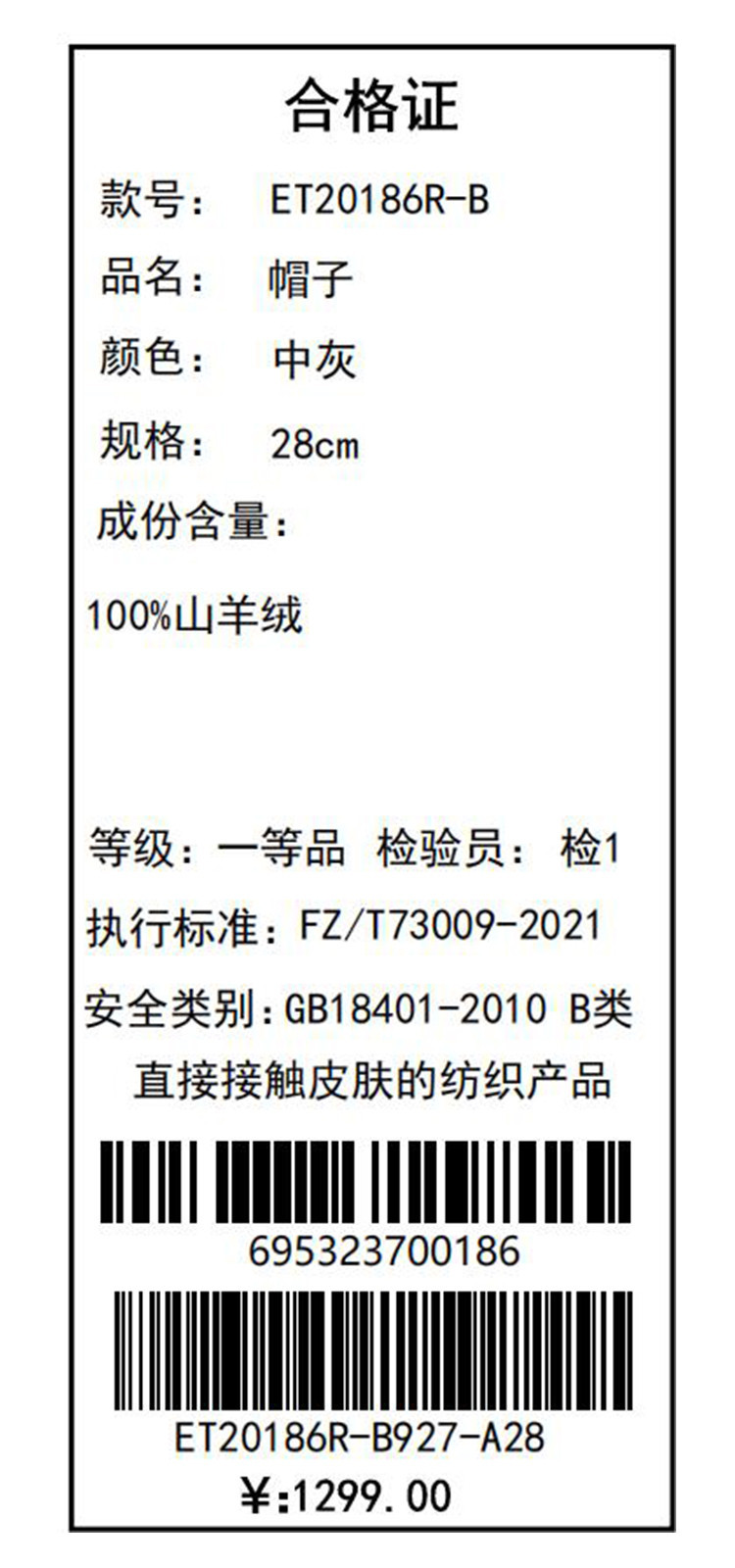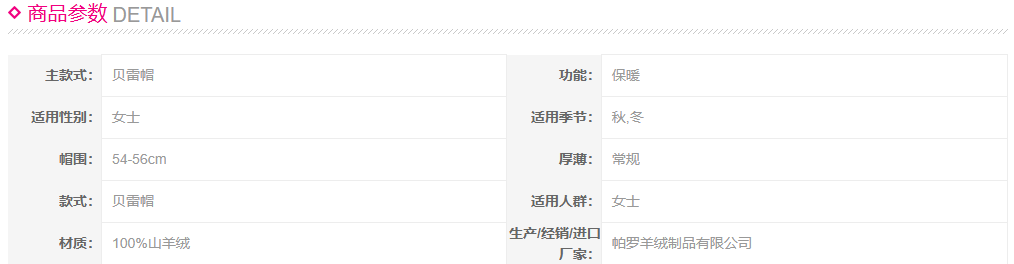 PALUOPO/PL 100%山羊绒帽子ET20186R-B约重80g 配饰帕罗