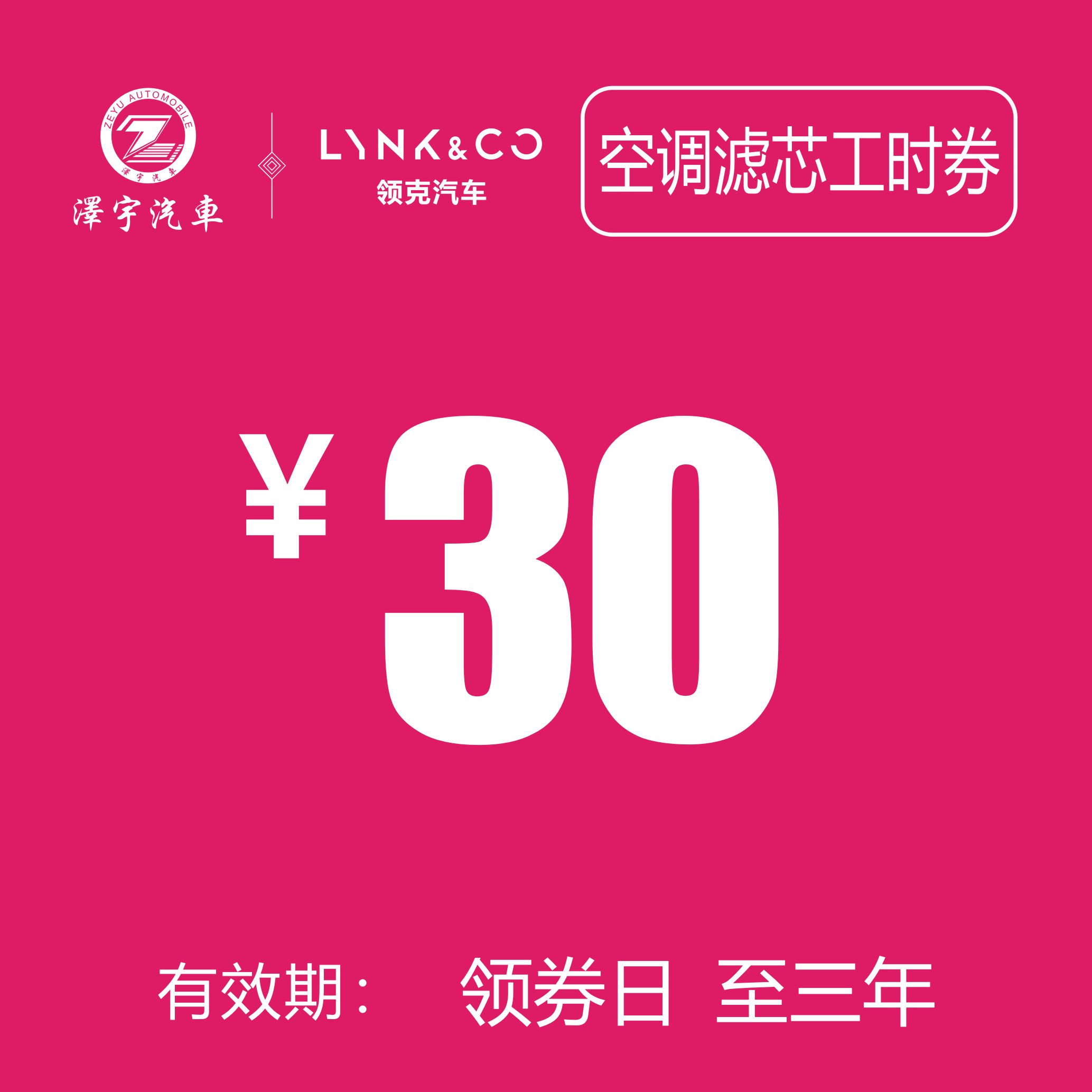 领克汽车 空调滤芯器更换工时券