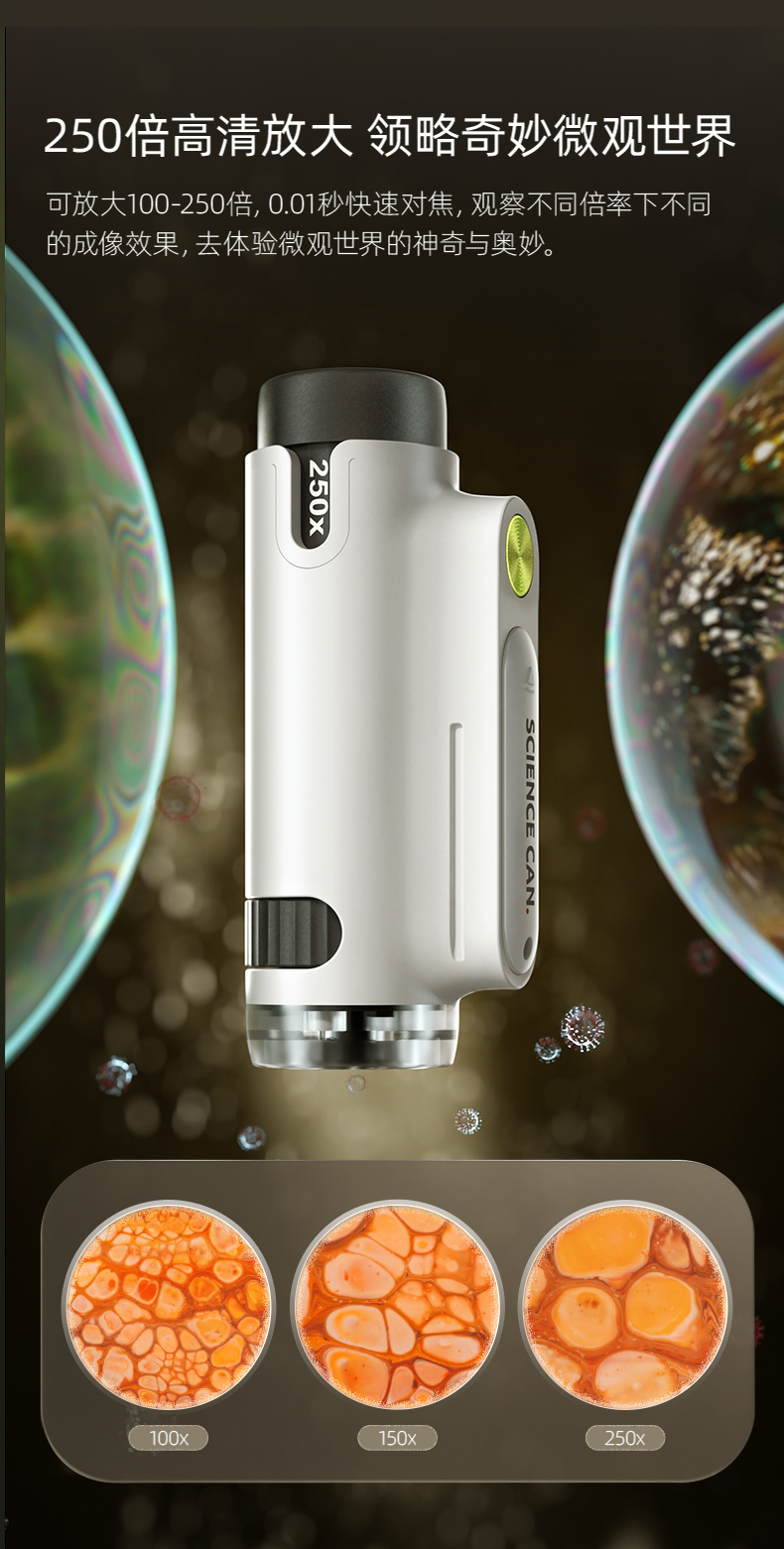 科学罐头Science can达尔文便携式豪华科学显微镜二代