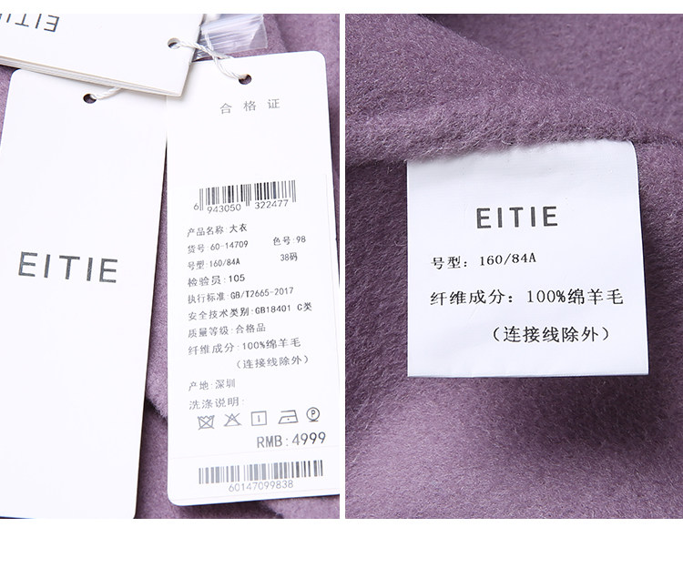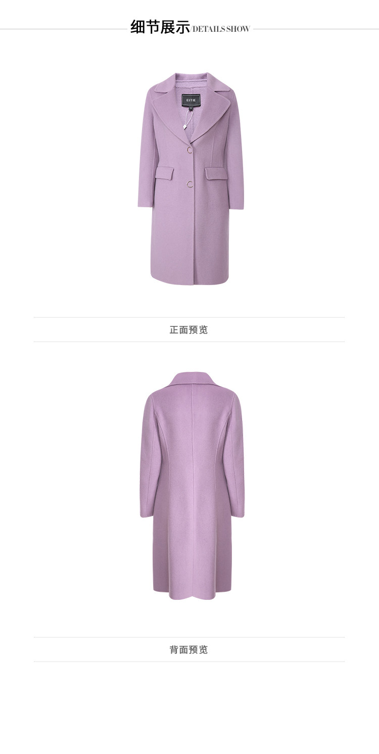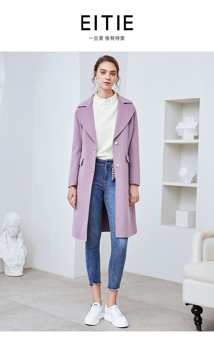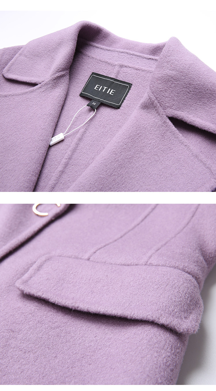 EITIE爱特爱冬季新款气质修身翻领显瘦羊毛呢大衣外套女中长6014709