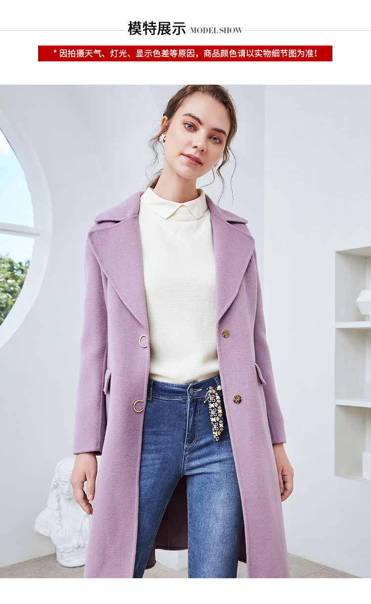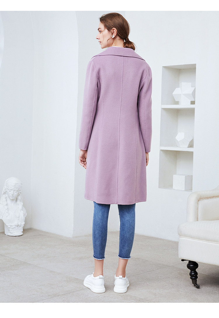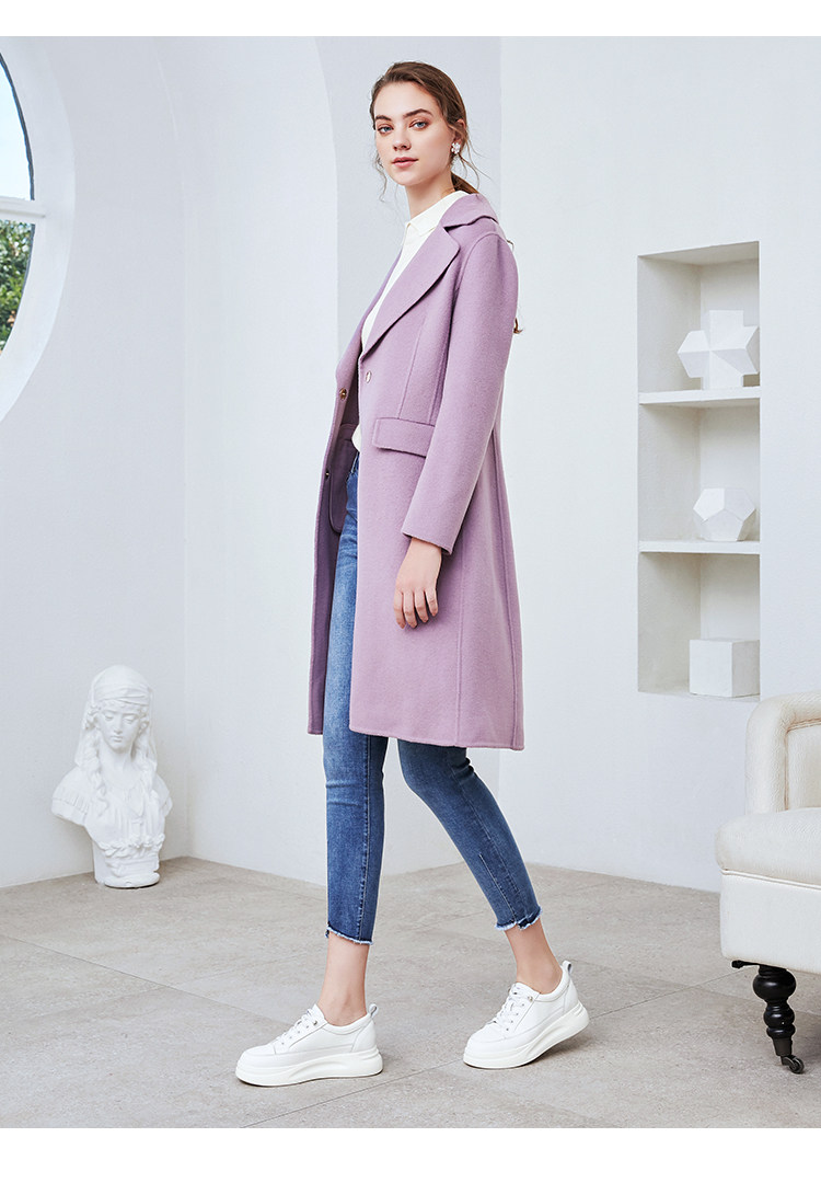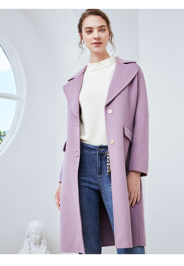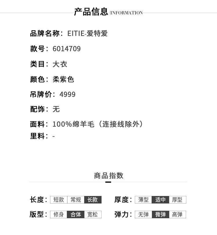 EITIE爱特爱冬季新款气质修身翻领显瘦羊毛呢大衣外套女中长6014709