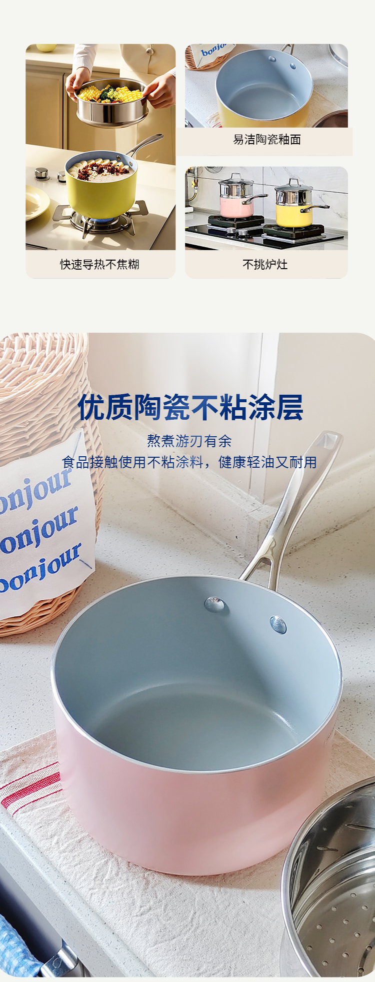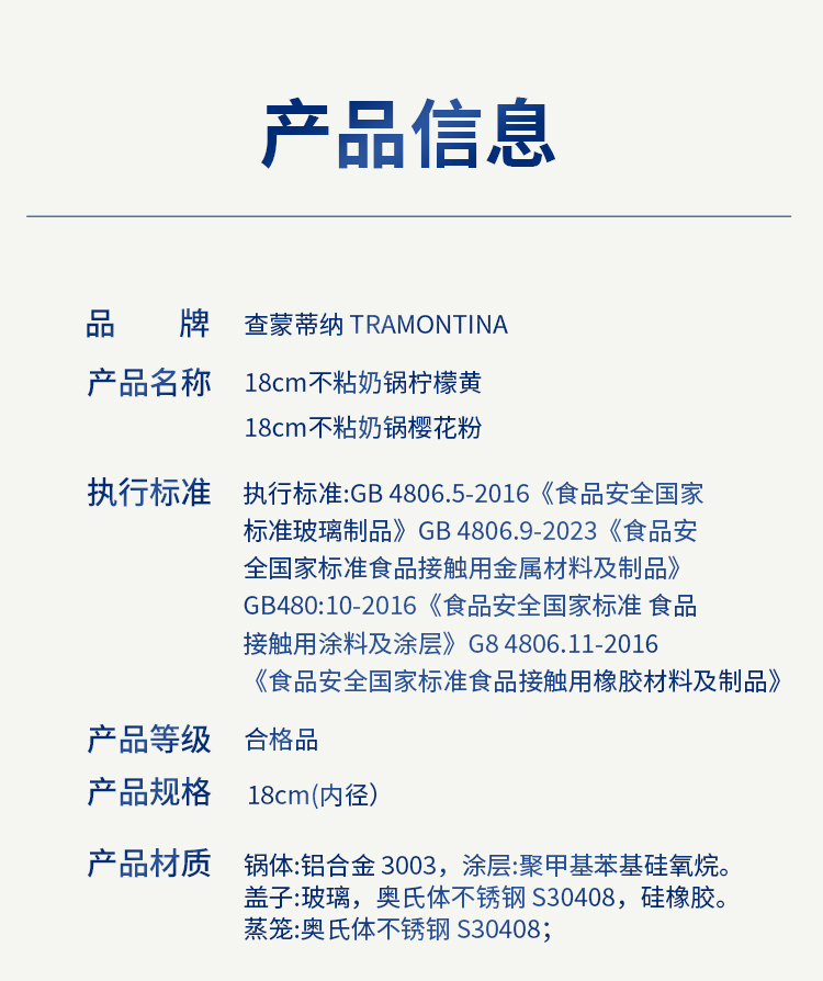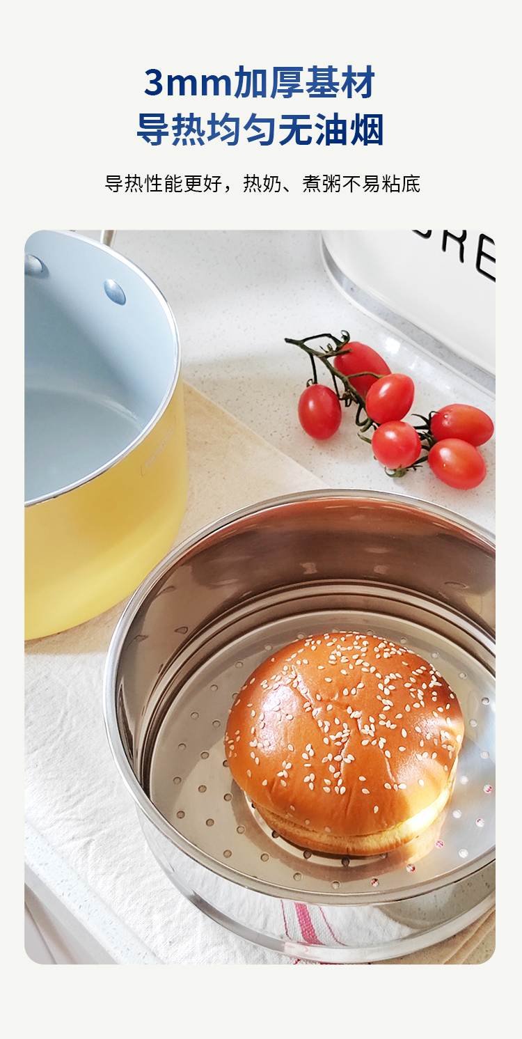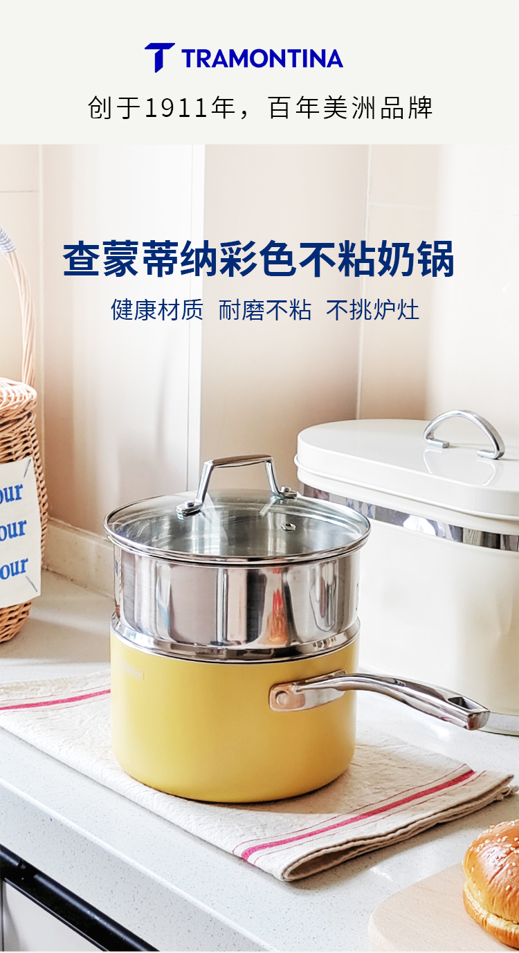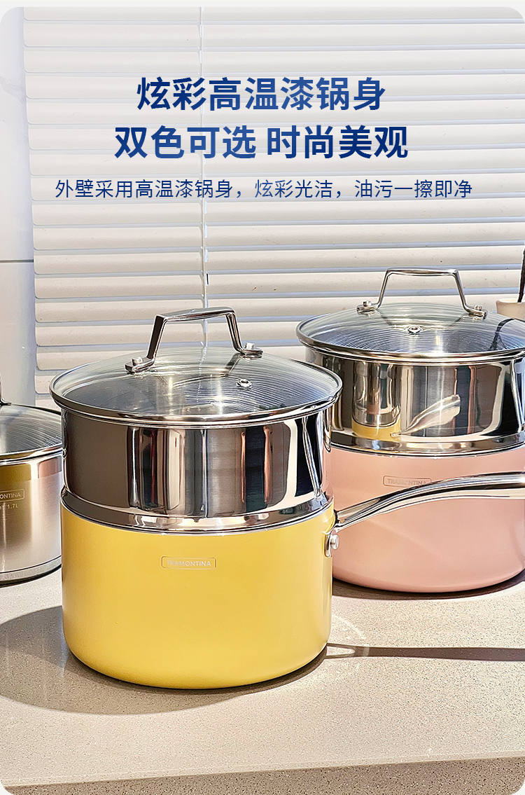 查蒙蒂纳18cm不粘汤奶锅【柠檬黄/樱花粉】
