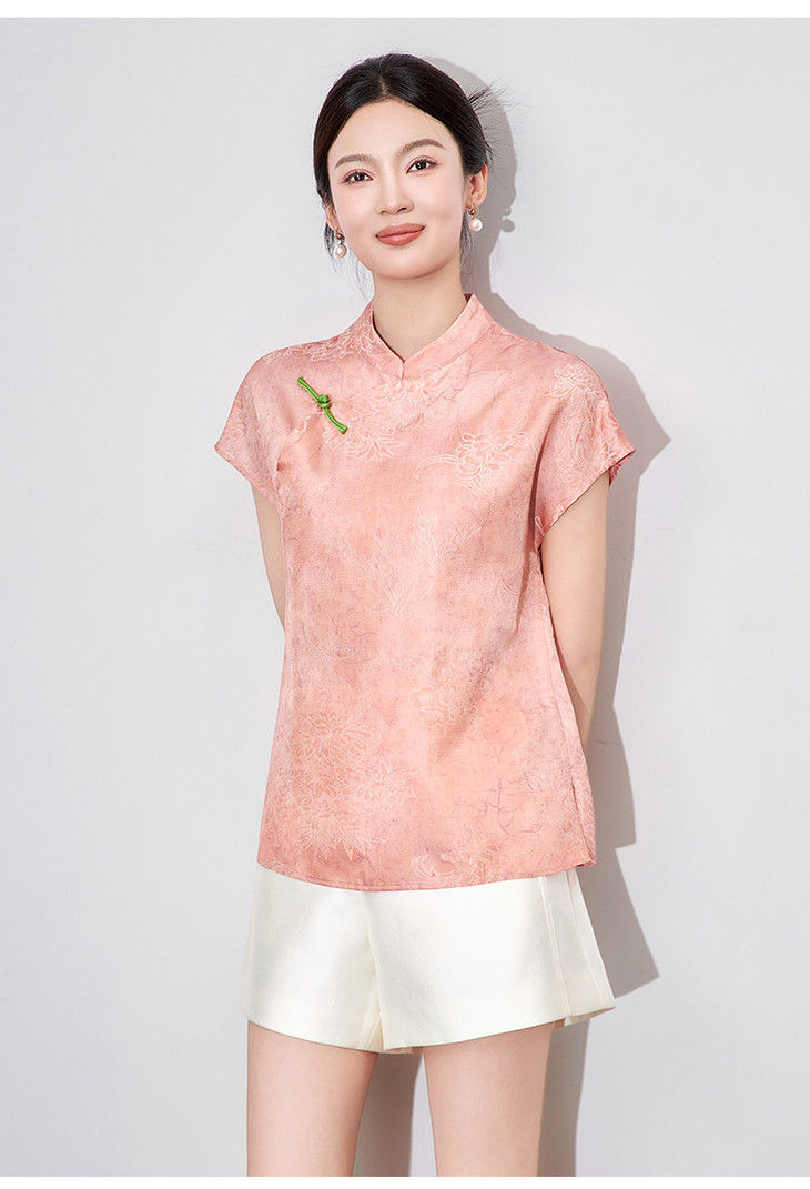 国风凉感斜襟香云纱上衣,新中式禅意复古盘扣衬衫WLZD-2510106