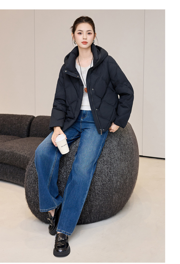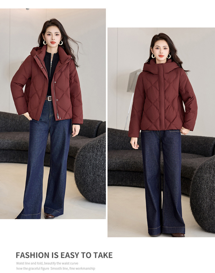 ASE 7762时尚羽绒服连帽保暖短款洋气厚外套