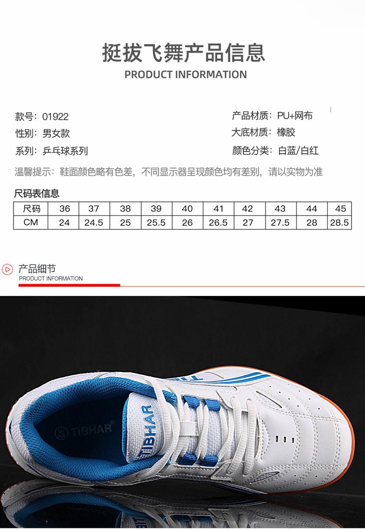 TIBHAR挺拔 飞舞男鞋女款专业乒乓球运动鞋防滑透气(建议买大一码)