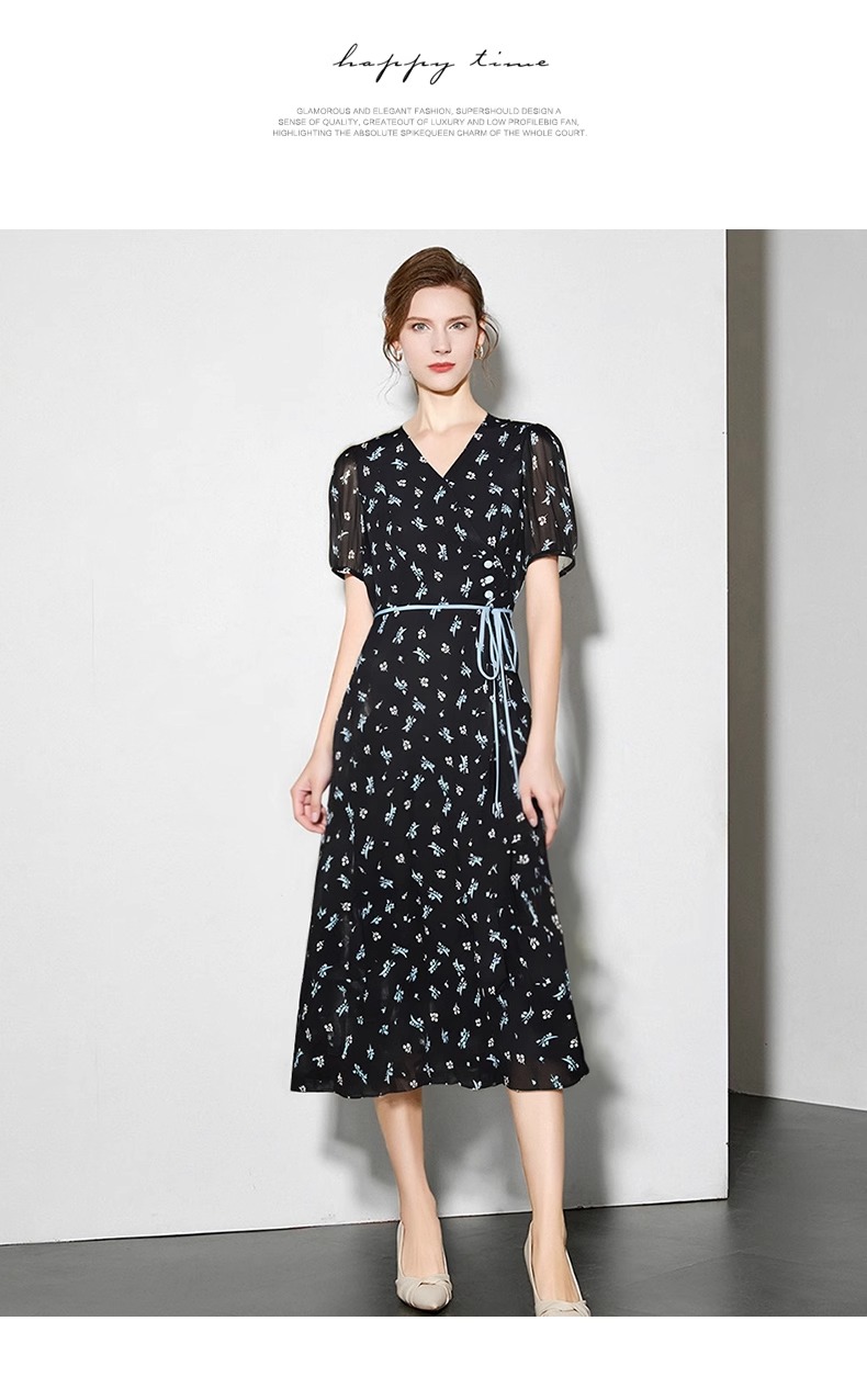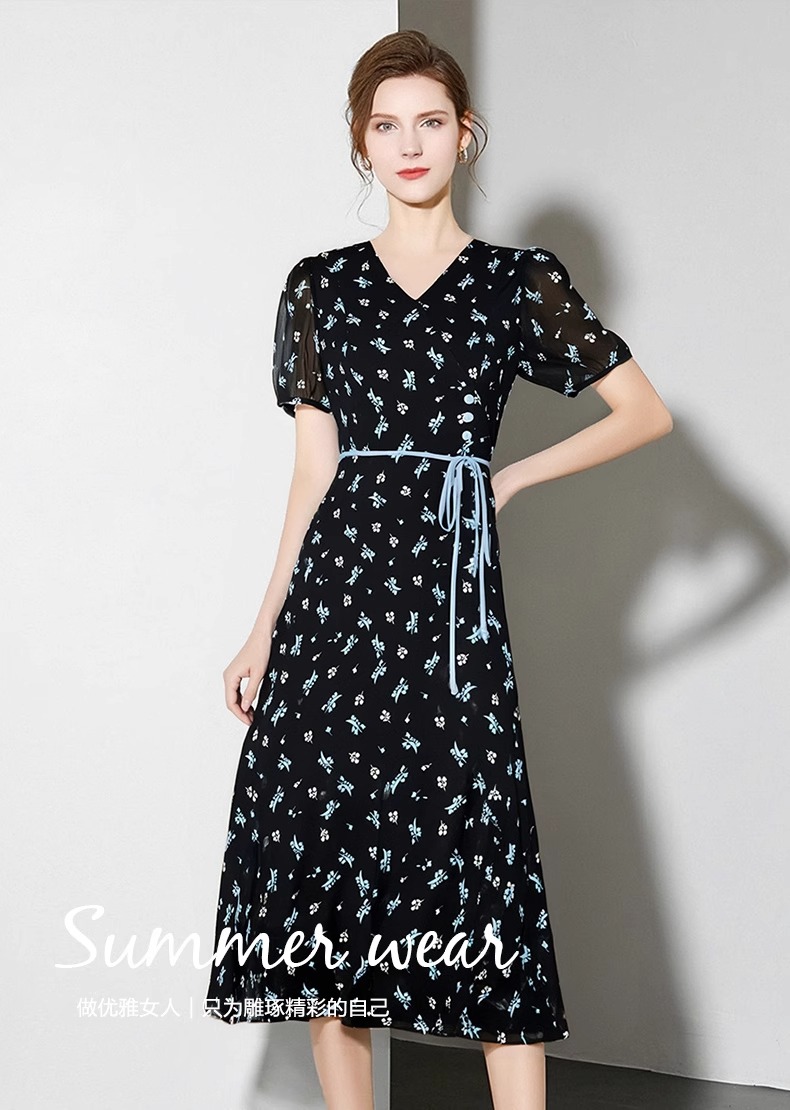 全新升级【铂金会员247/天猫329/差价82】(11523)洛诗琳2025新款夏季裙子高级感时尚气质小众法式碎花连衣裙