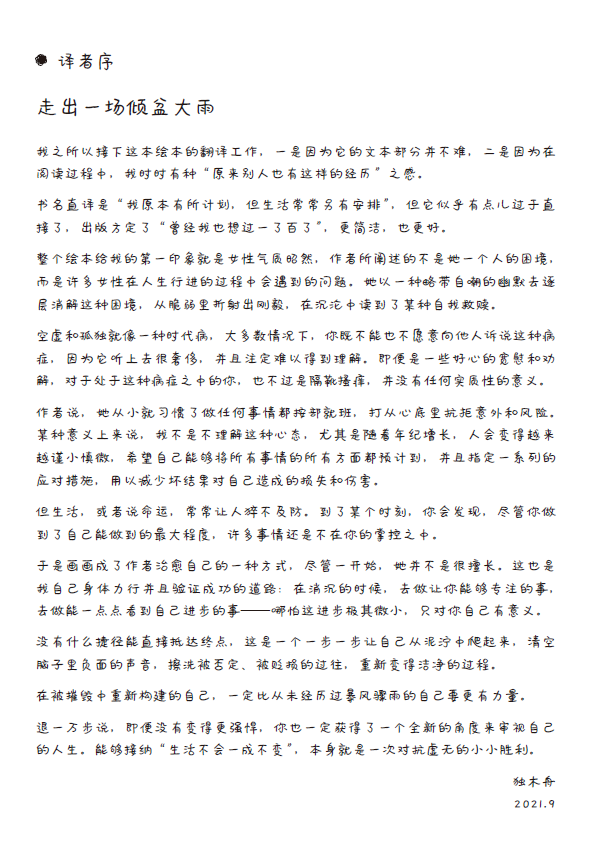 治愈的插画、睿智的语言,深深击中每一颗历经困难的心。打开任何一页你都会发现,每一个直面焦虑、悔恨、迷茫、无助的时刻,都是疗愈的开始,每一种困境都有出路,那些未曾击垮我们的,终将给我们前进的力量。