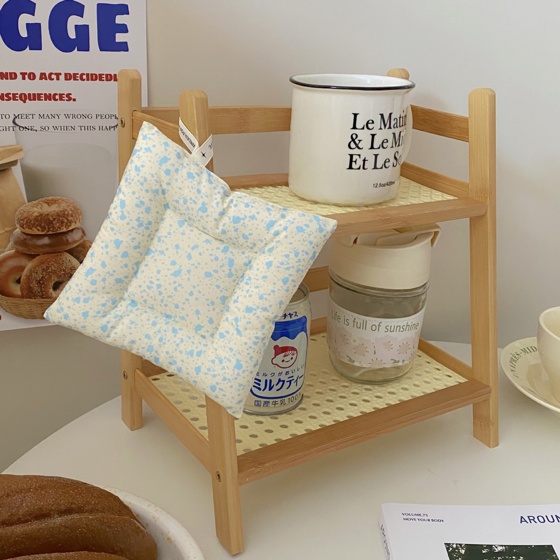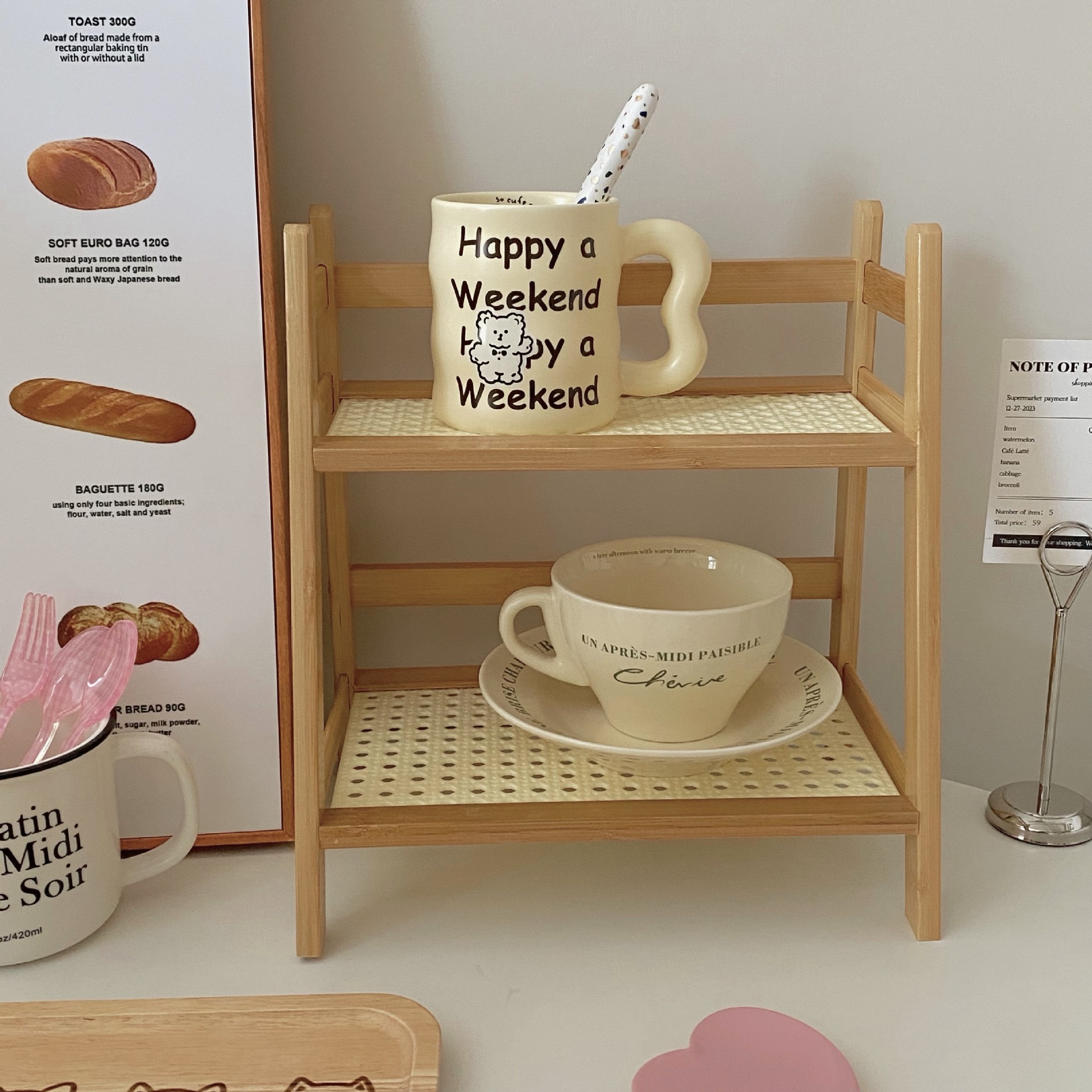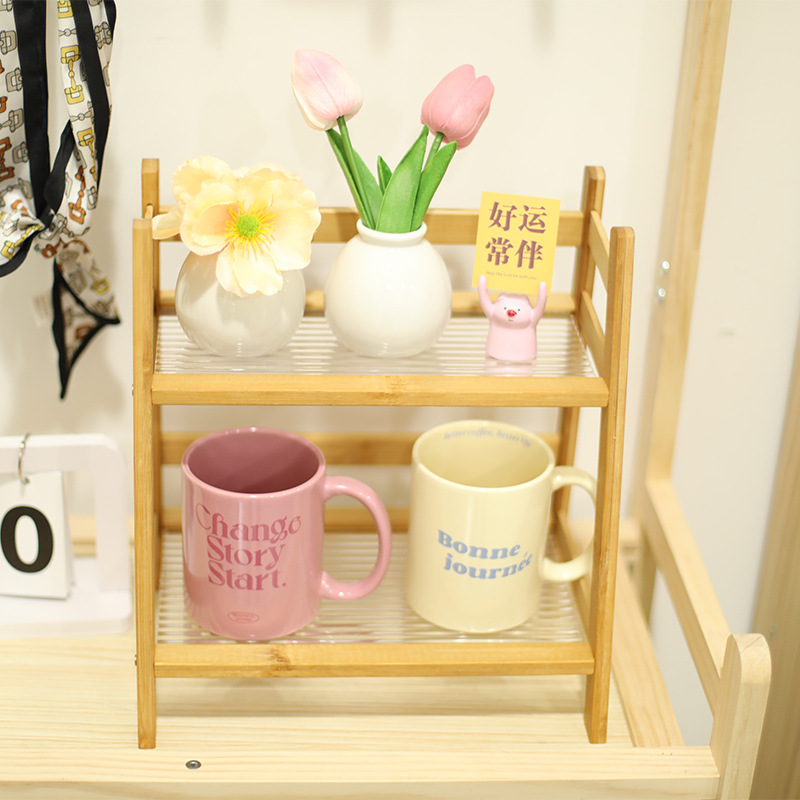 【奶油风藤编置物架,多层设计】奶油风藤编杯子收纳置物架杯架 多层桌面杂物收纳架 宿舍厨房整理架-QQ