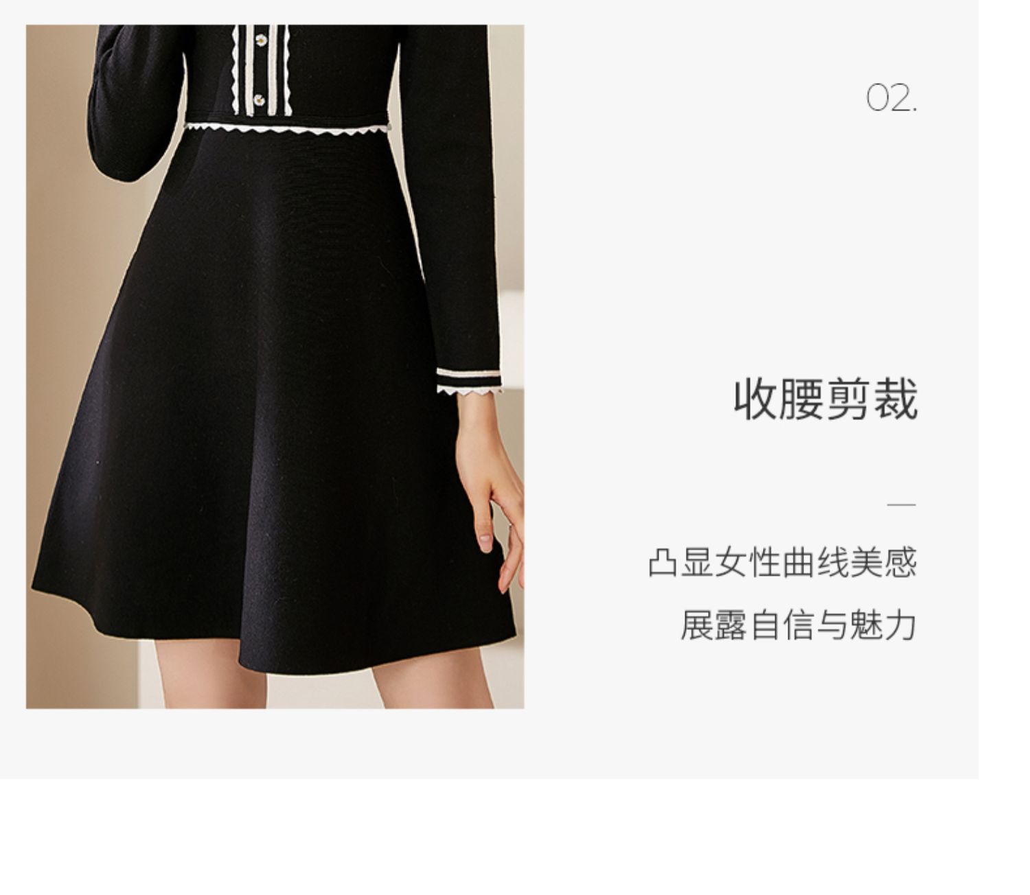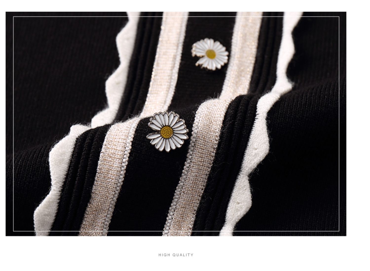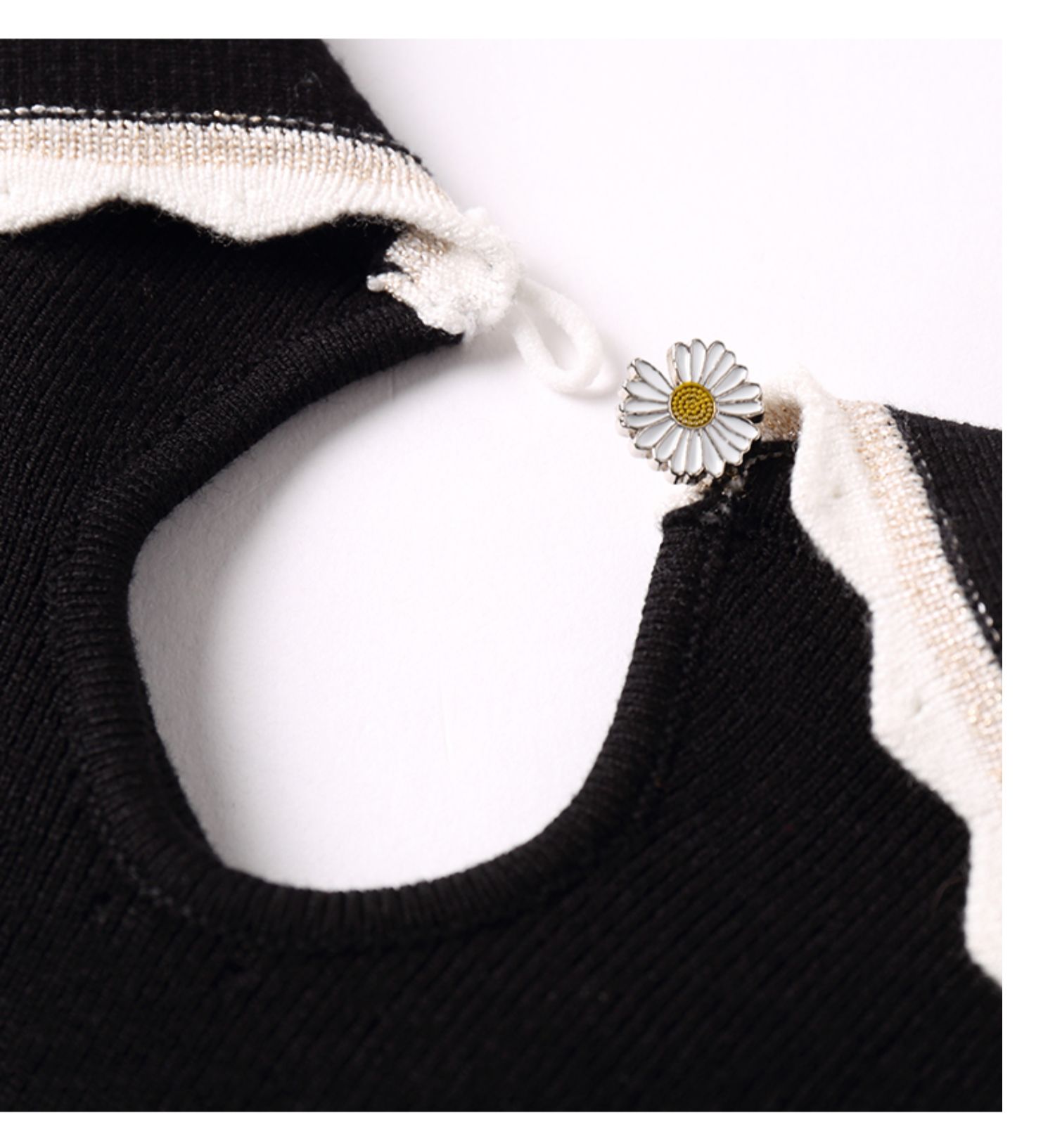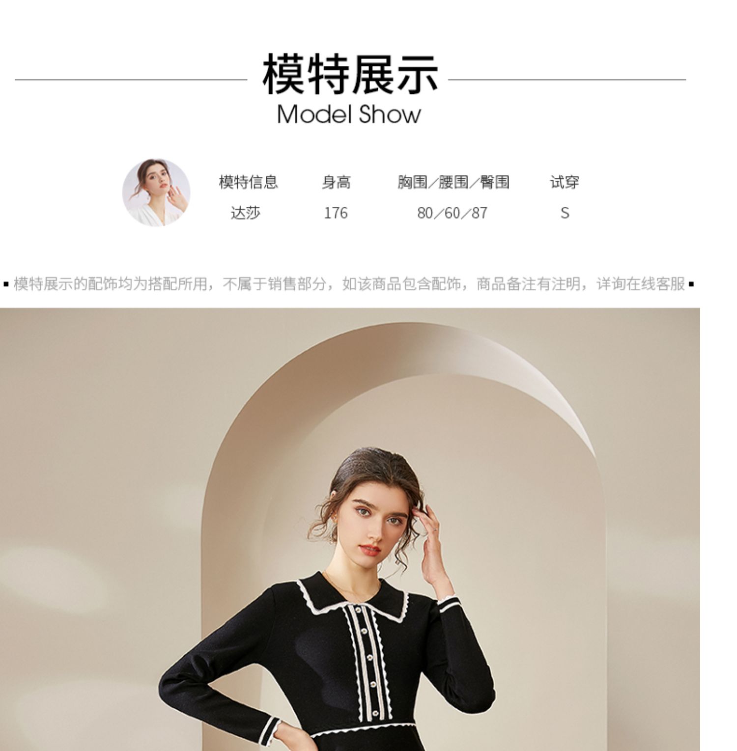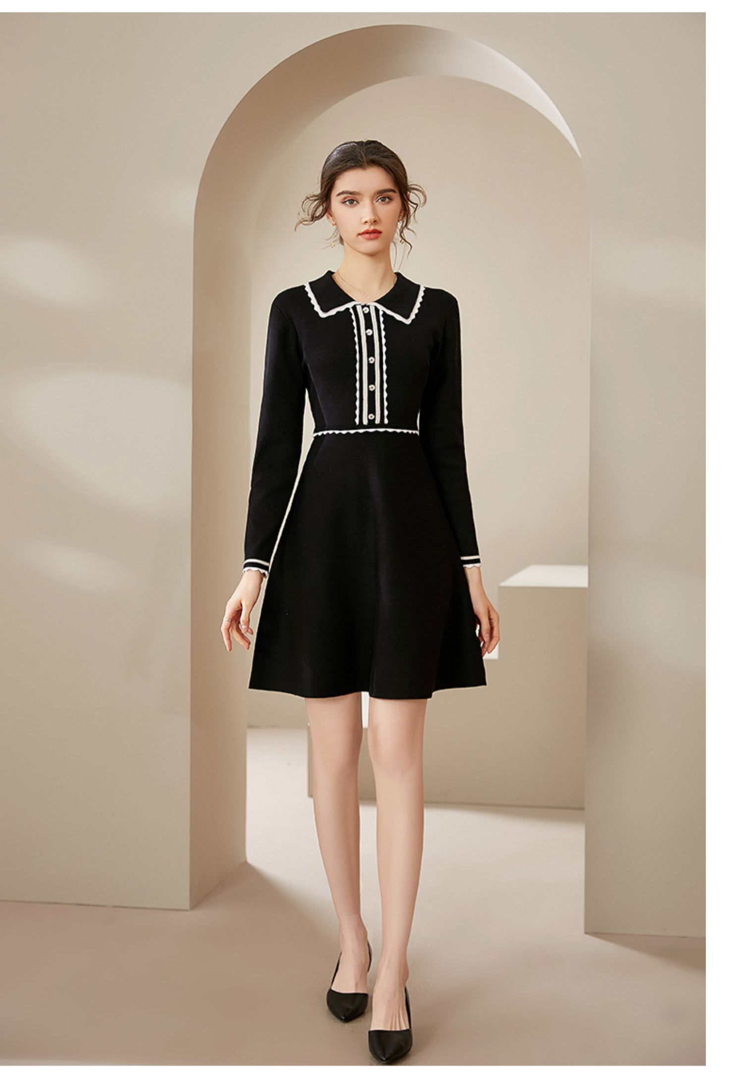 洛诗2020冬季新款小雏菊纽扣学院风花边领收腰修身A字针织连衣裙