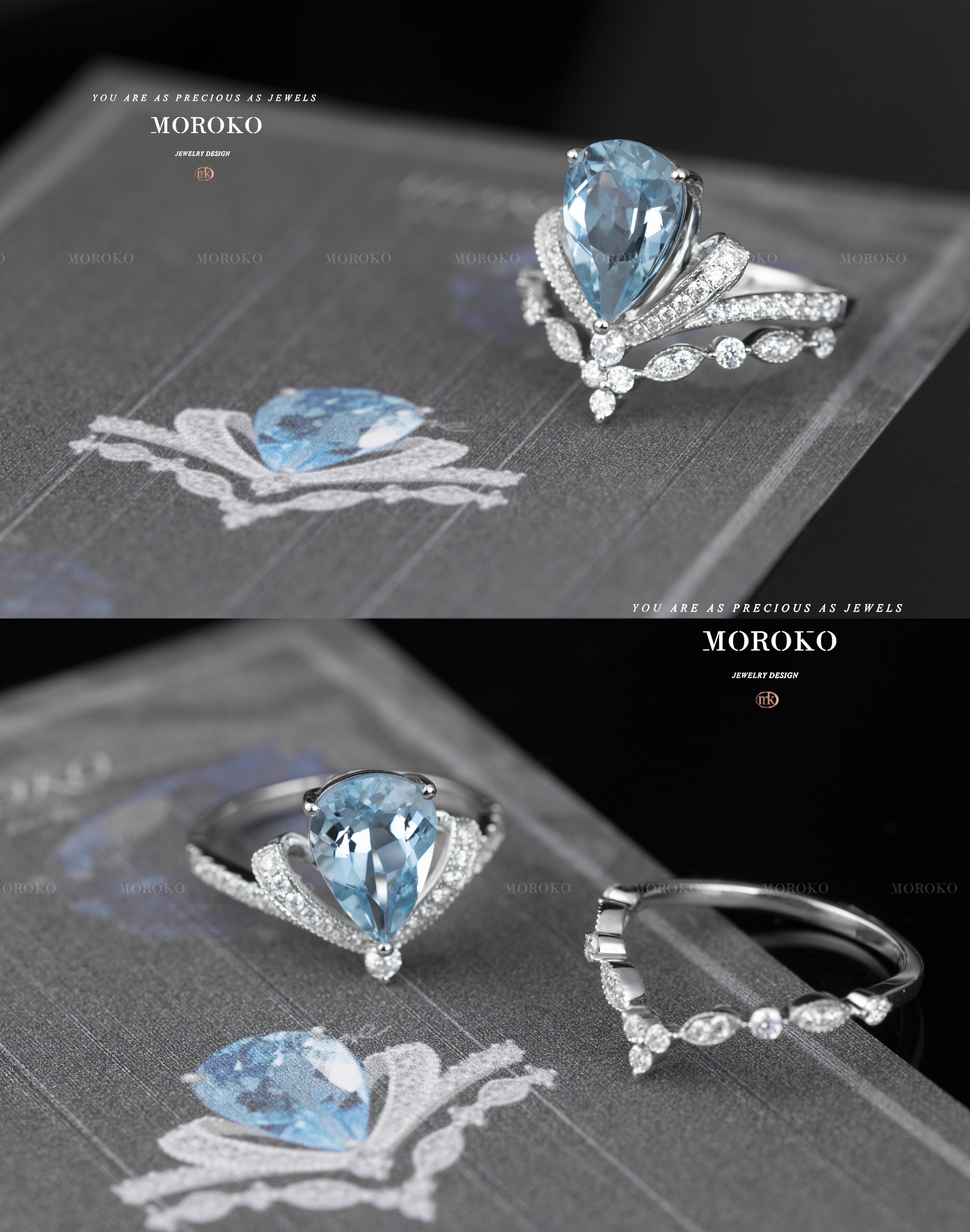配上一枚马眼钻副戒
