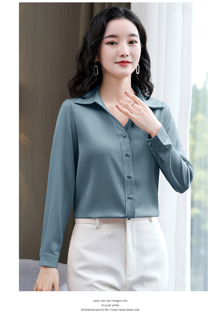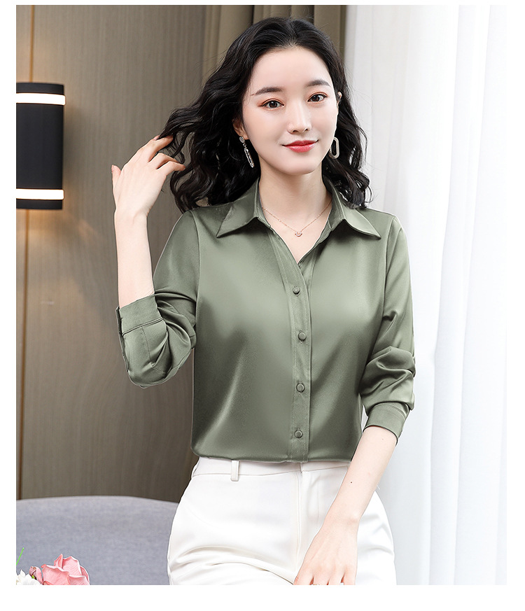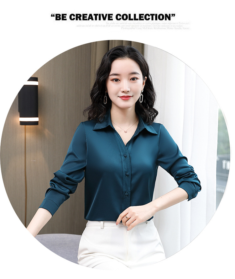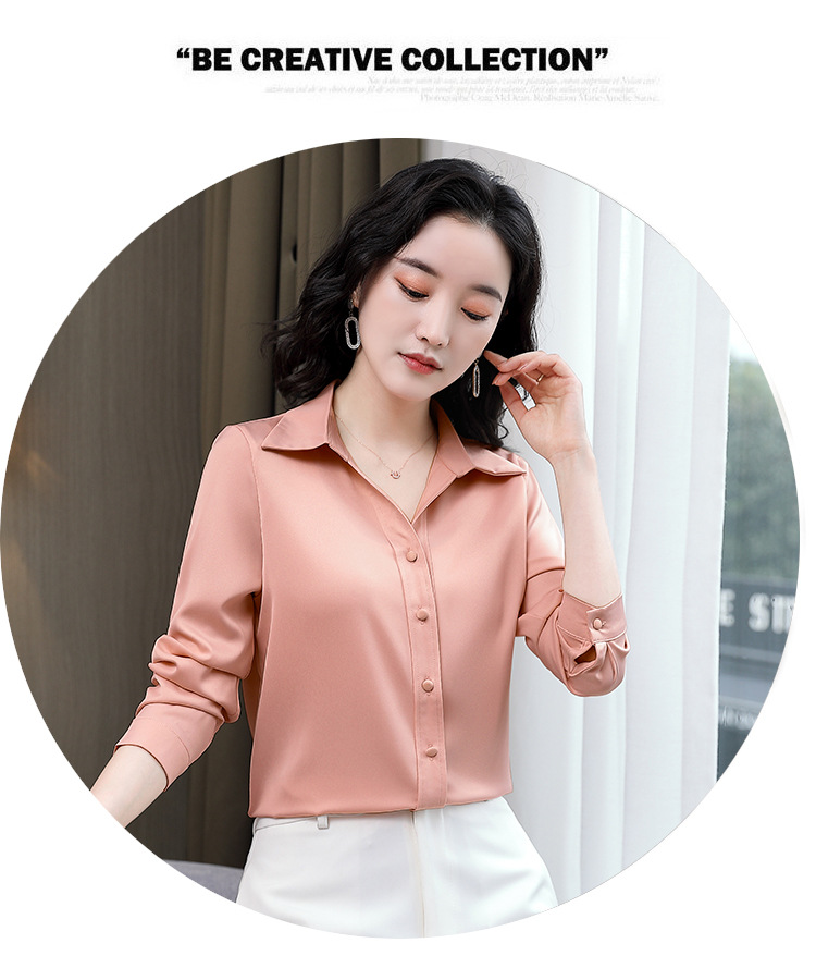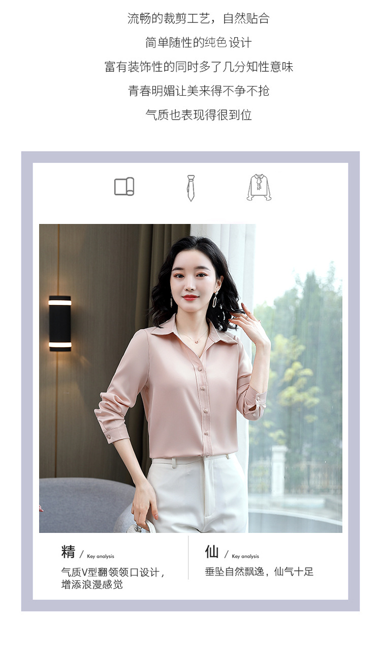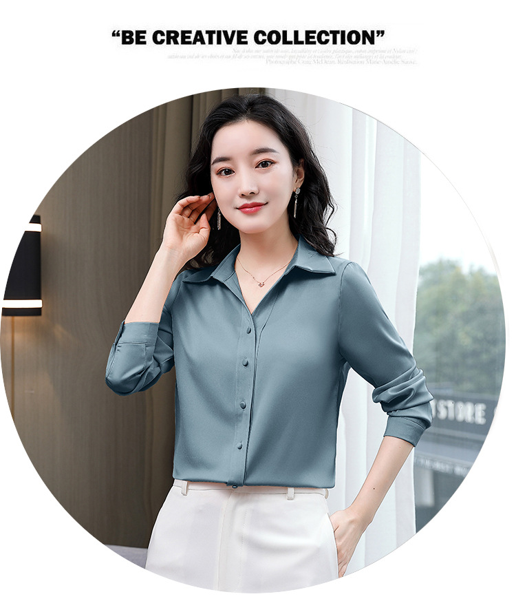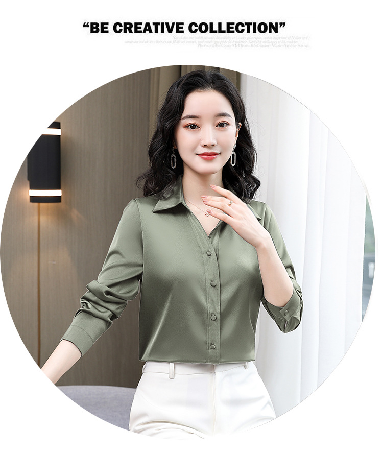 KQL-新款秋装气质OL职业缎面仿真丝长袖衬衫