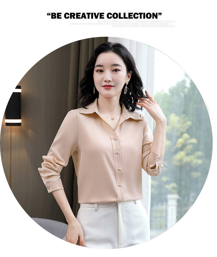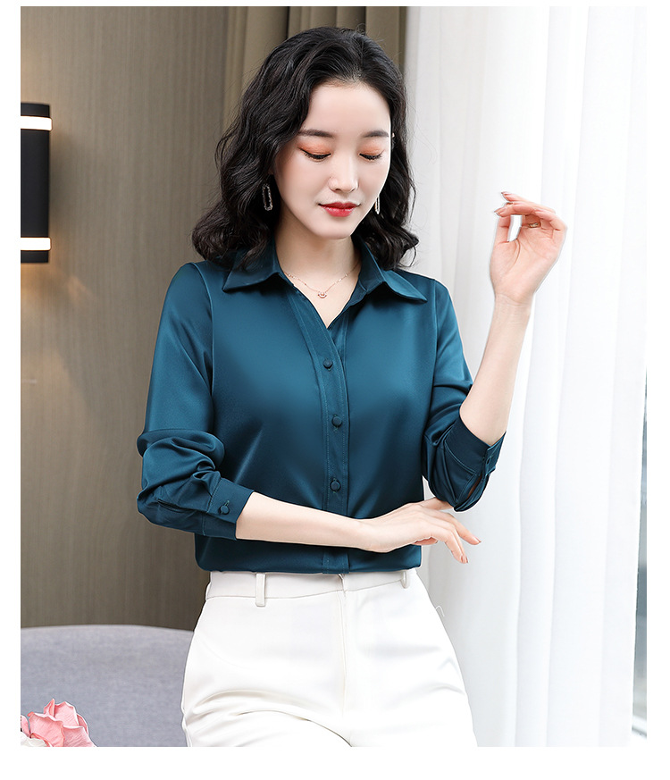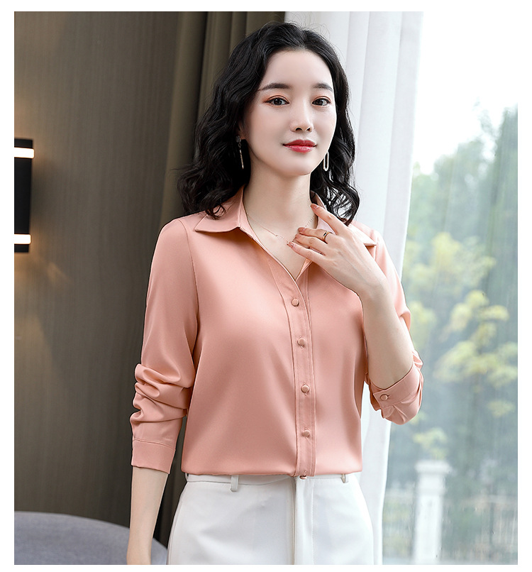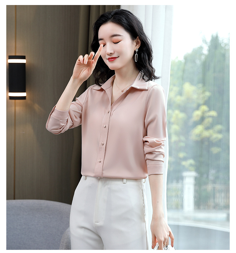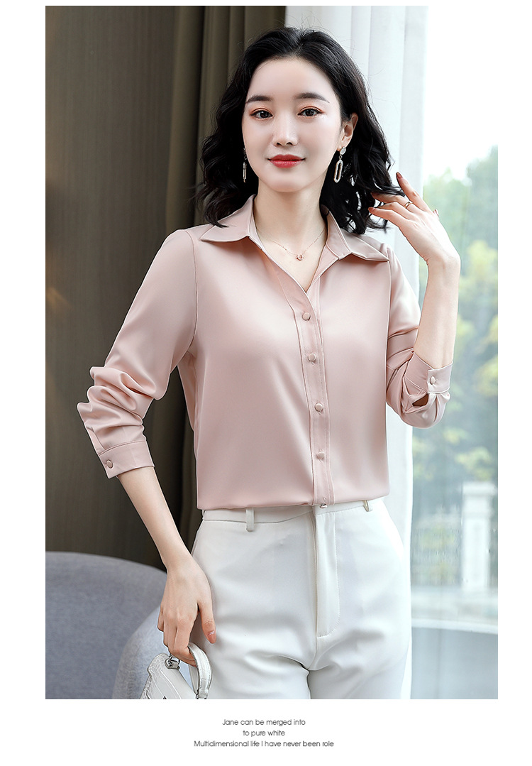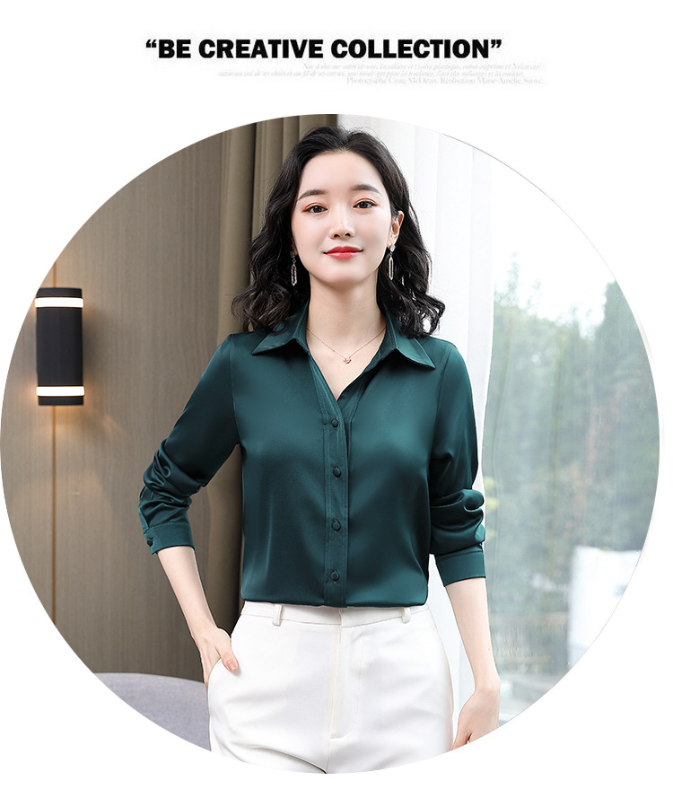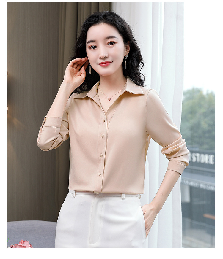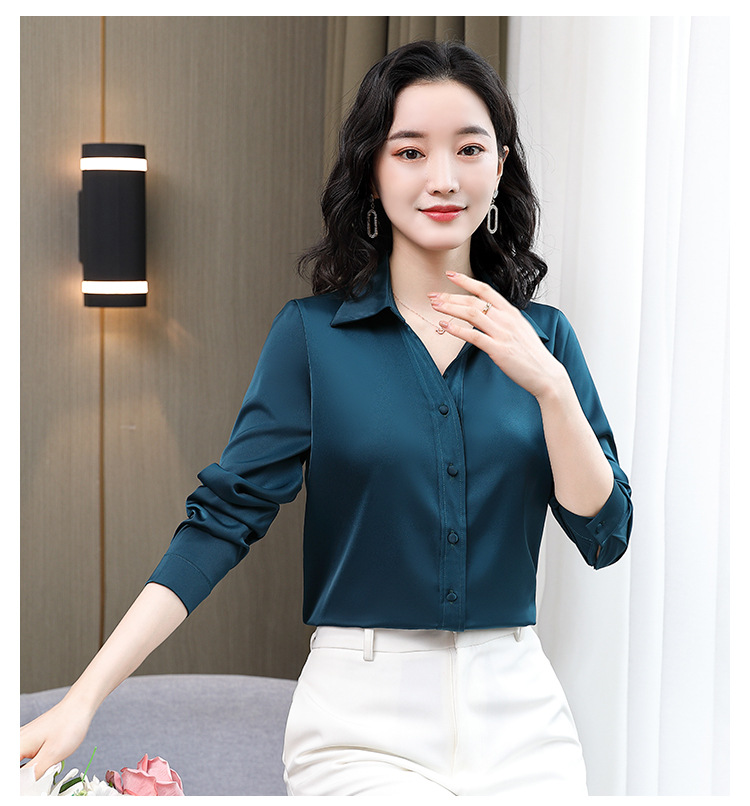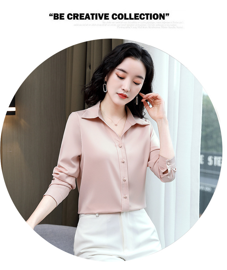 KQL-新款秋装气质OL职业缎面仿真丝长袖衬衫
