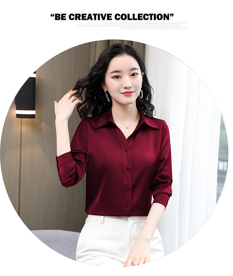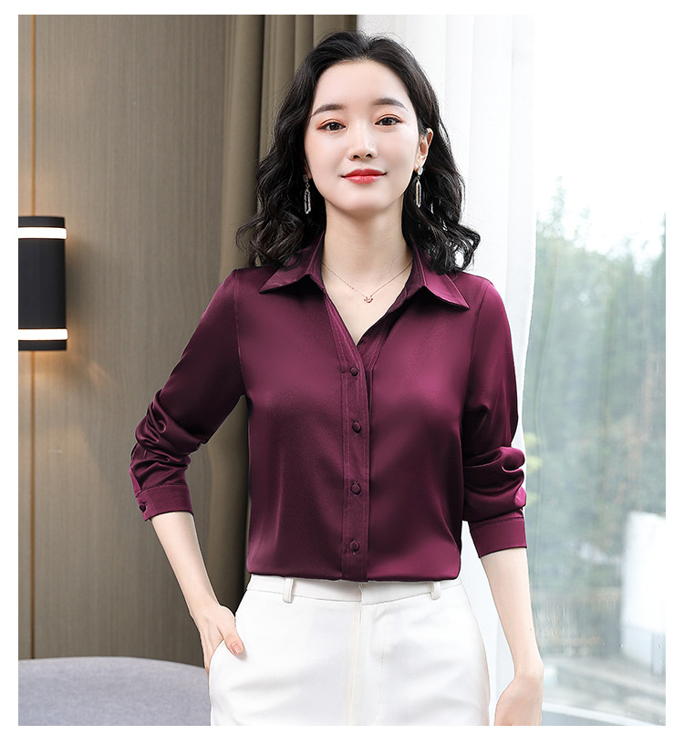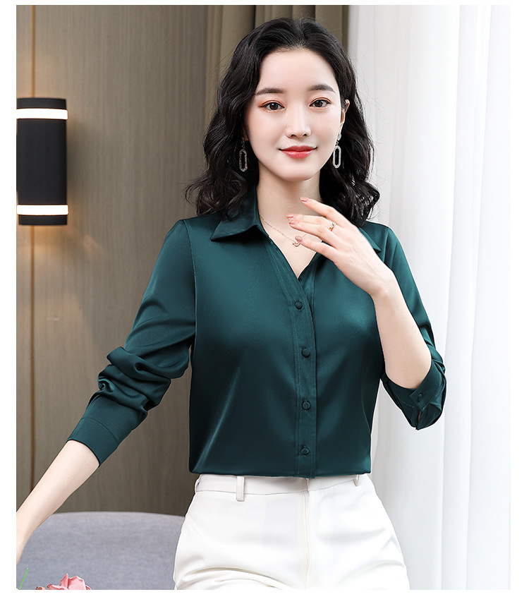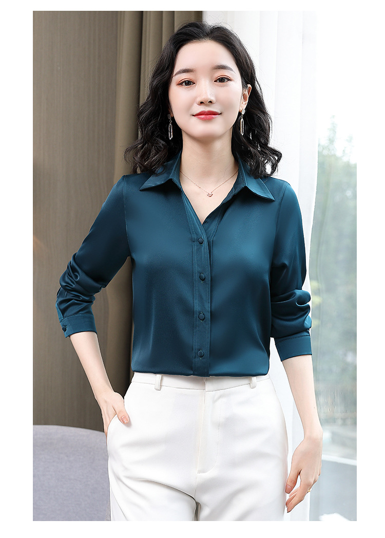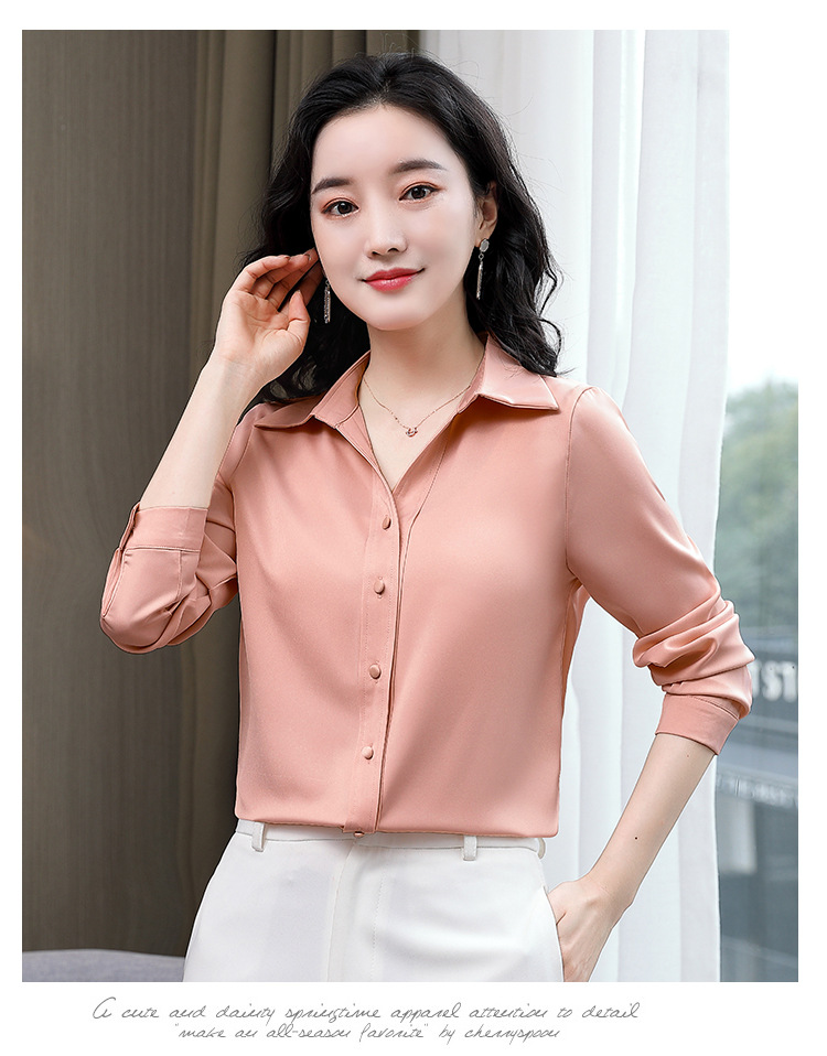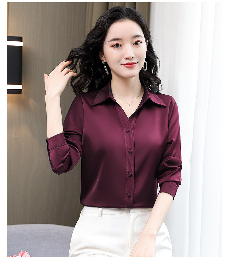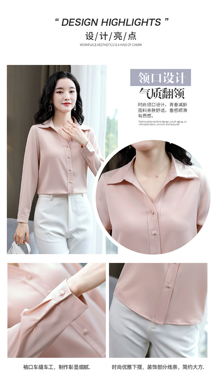 KQL-新款秋装气质OL职业缎面仿真丝长袖衬衫