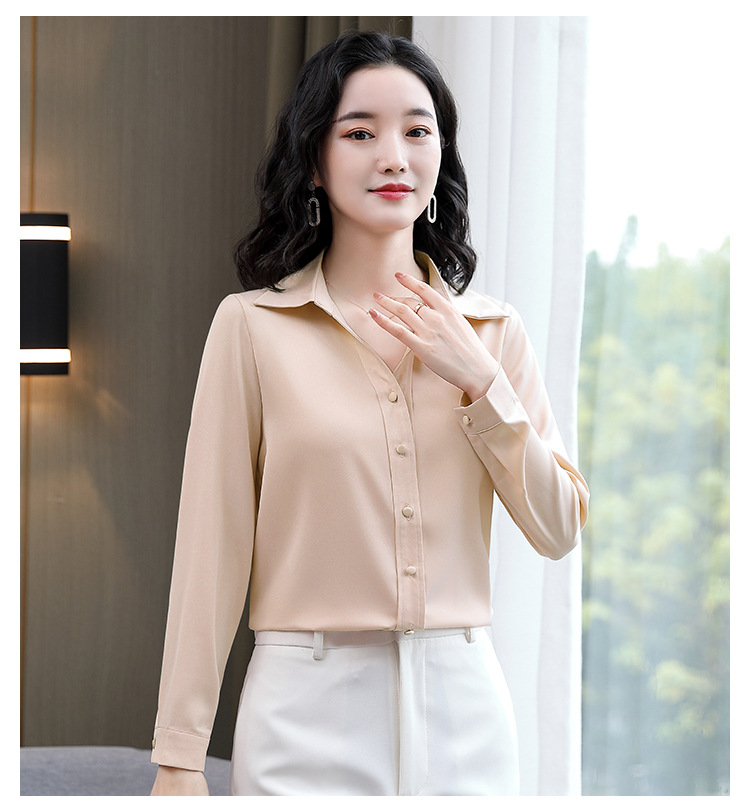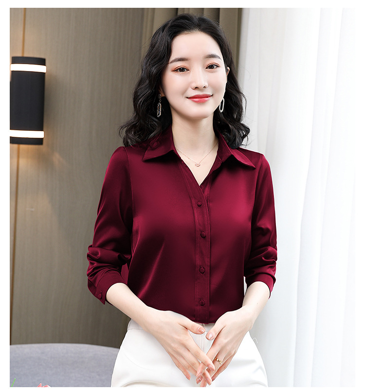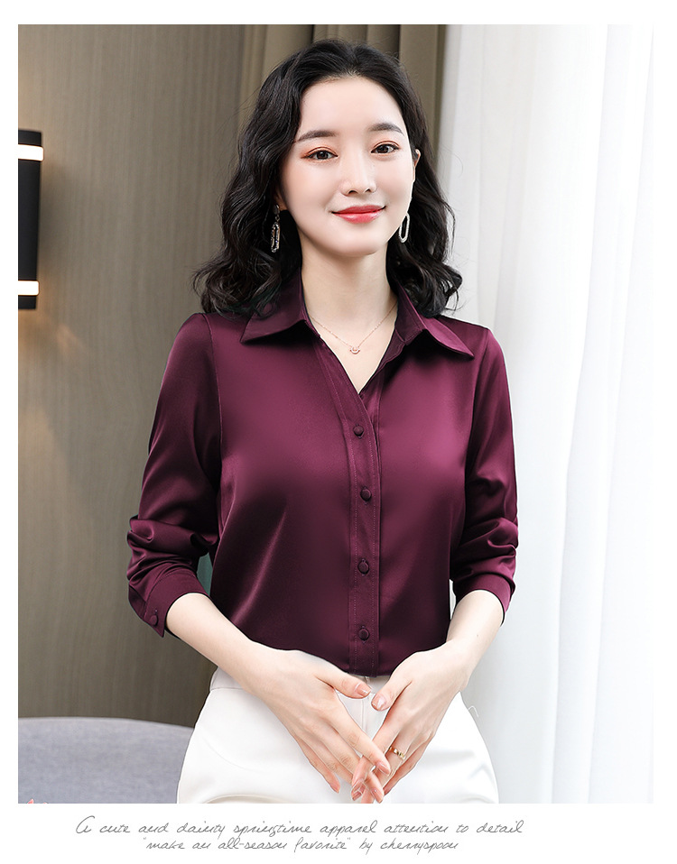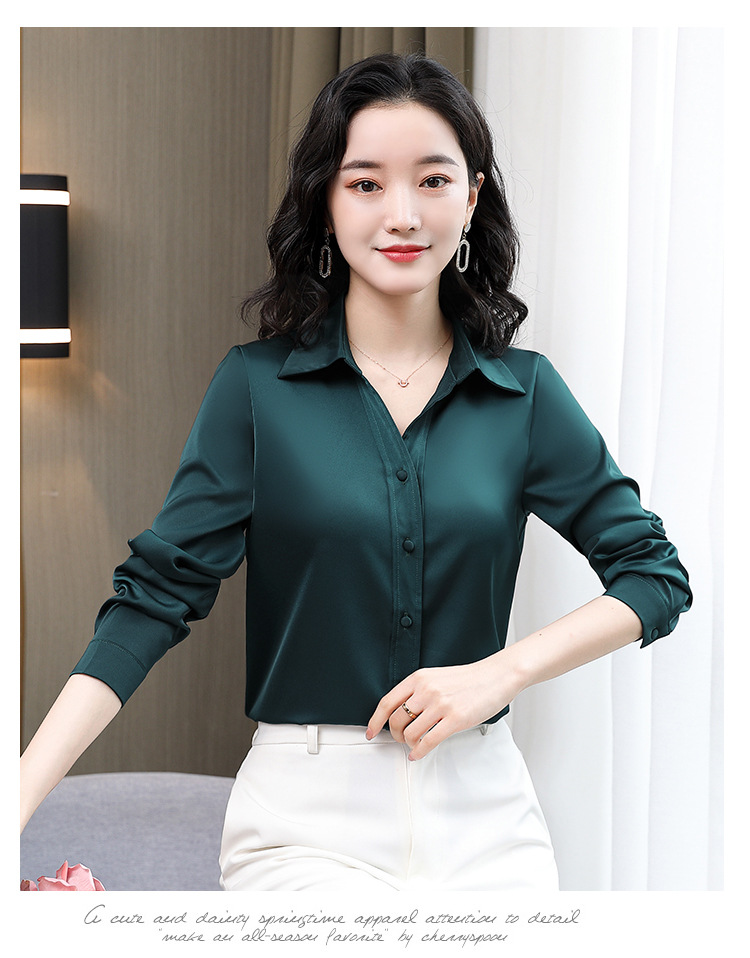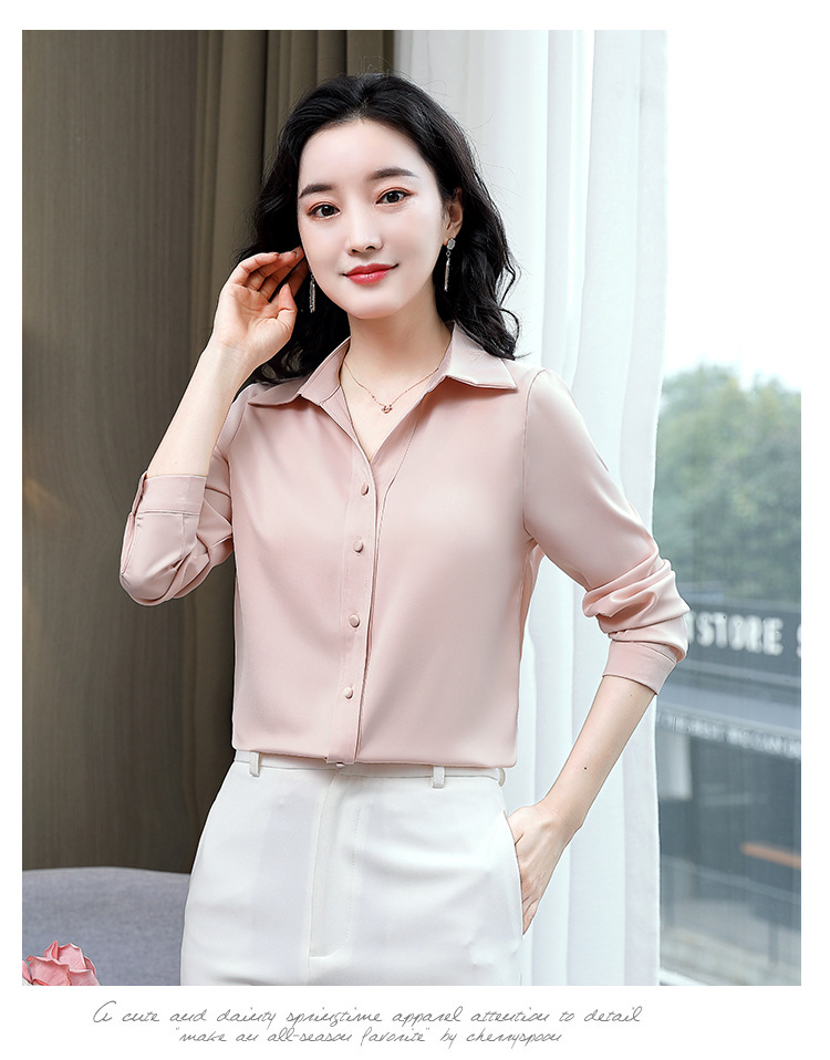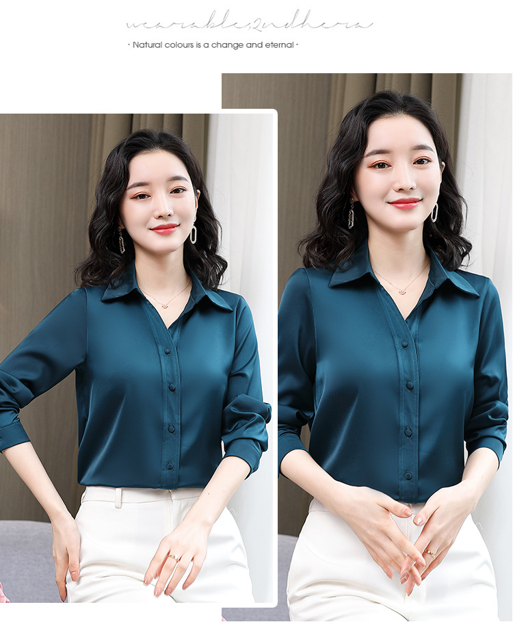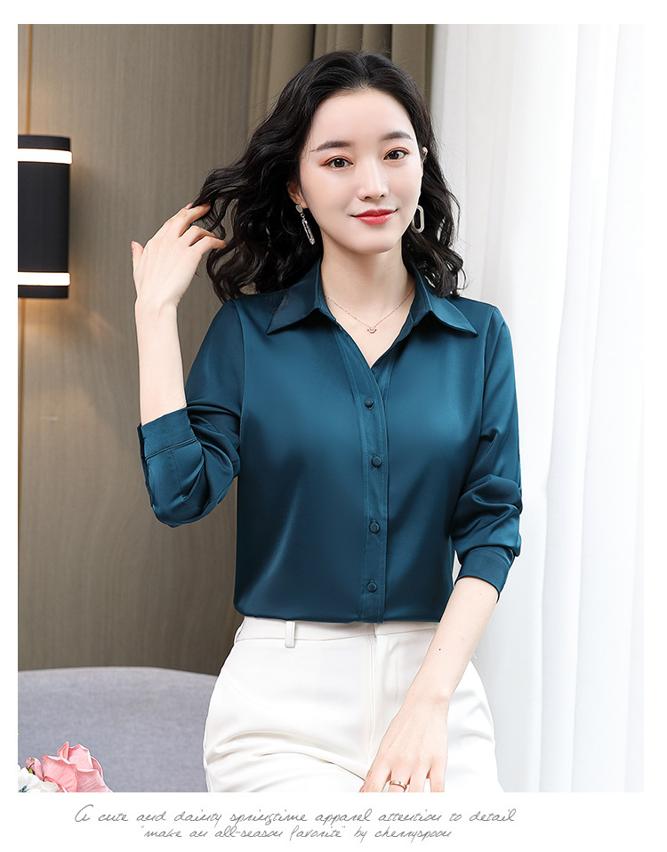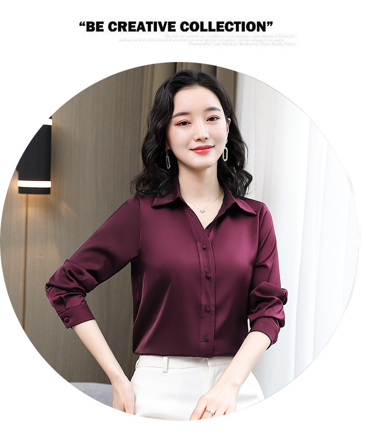 KQL-新款秋装气质OL职业缎面仿真丝长袖衬衫