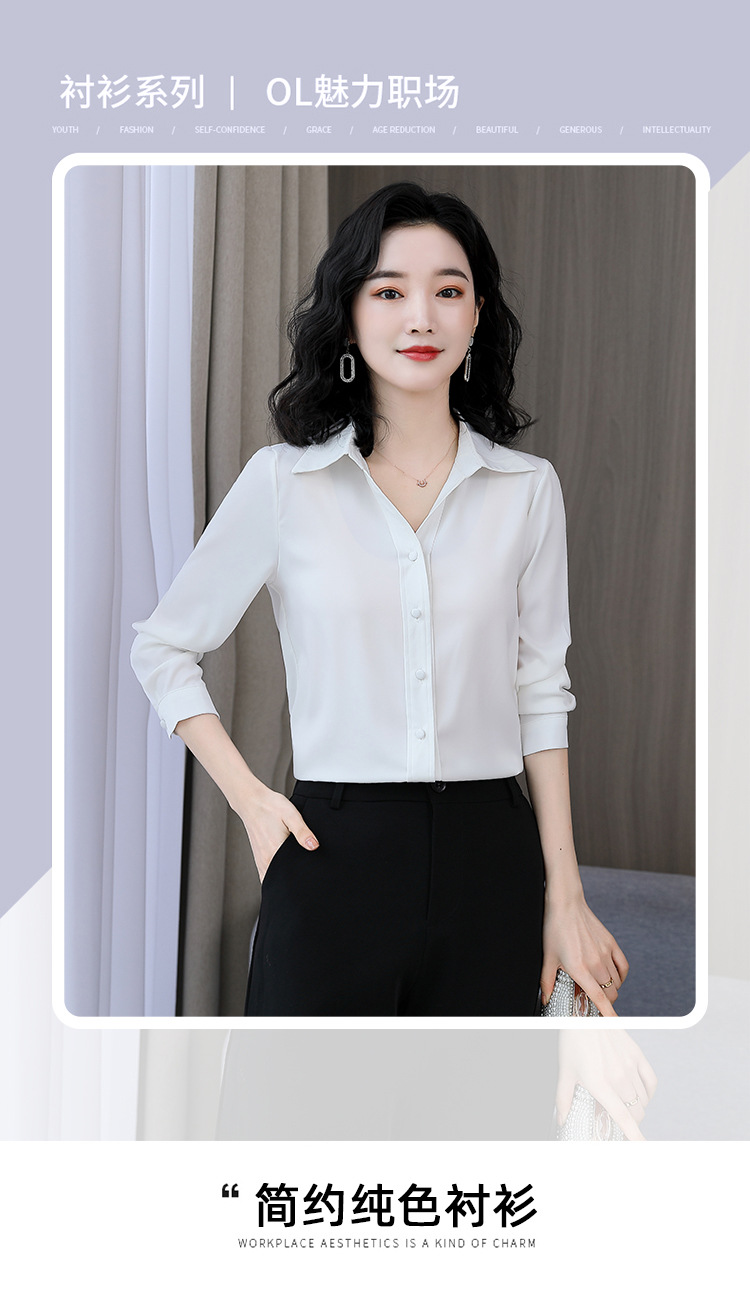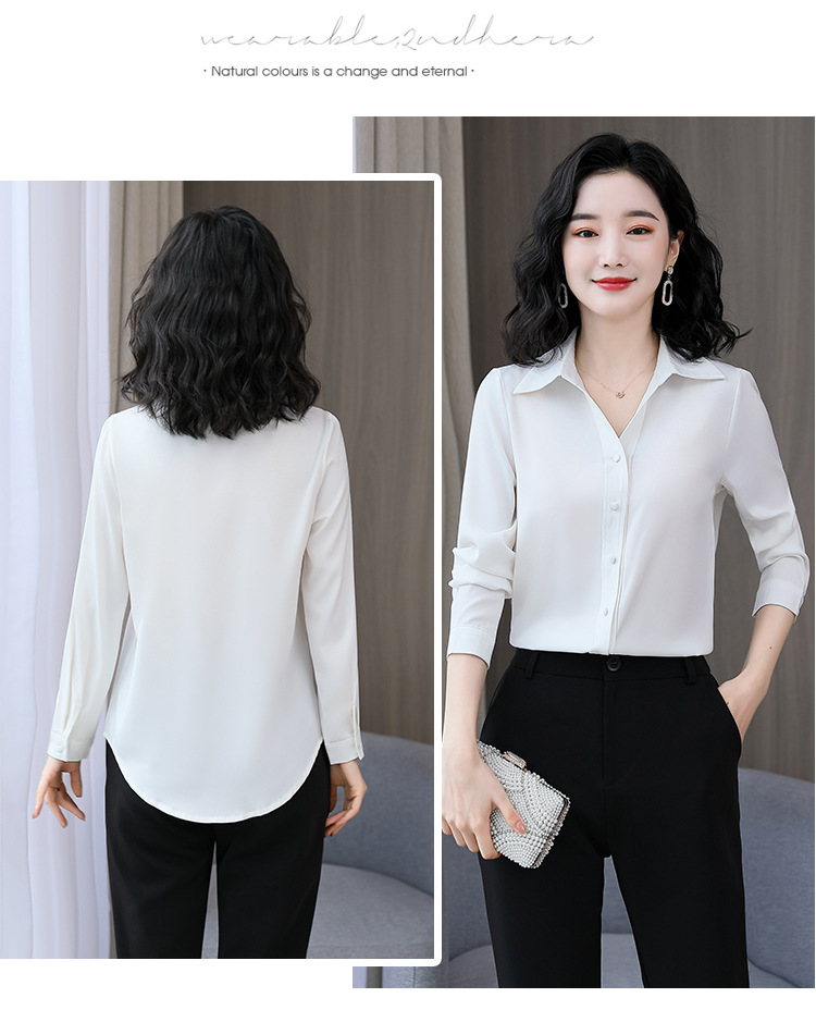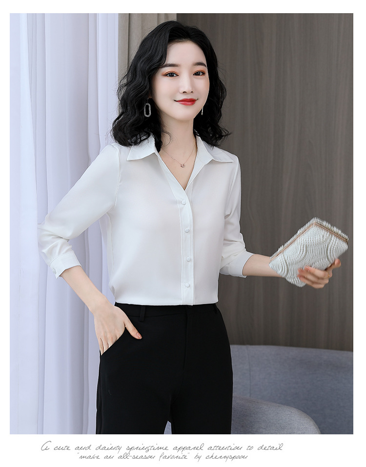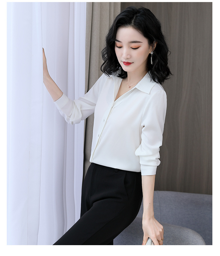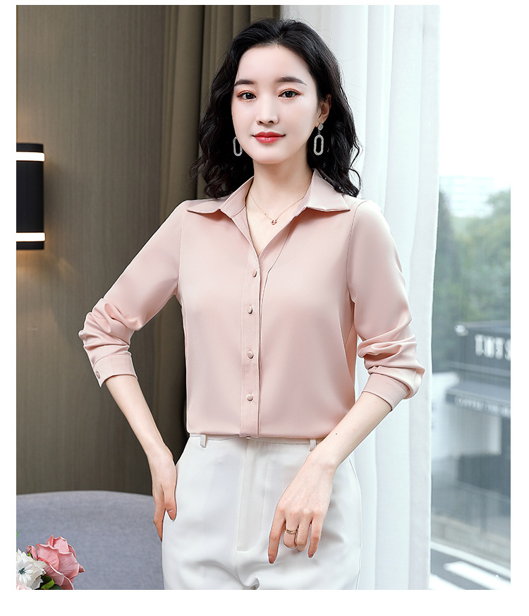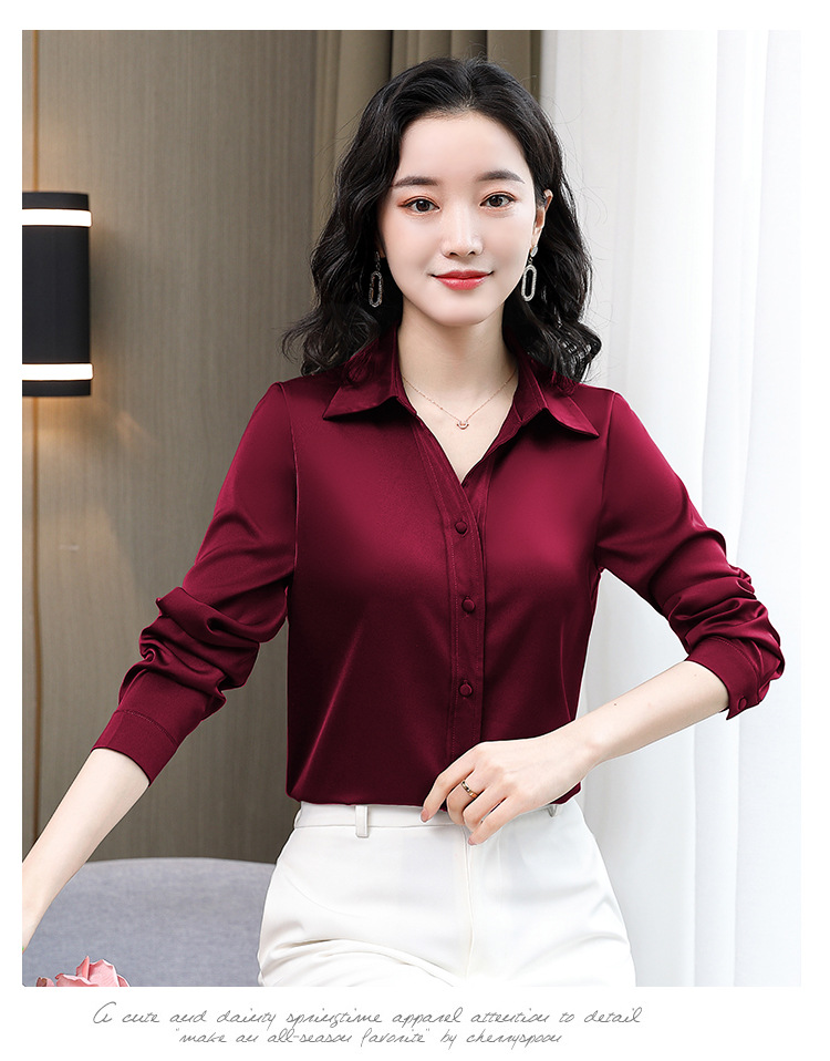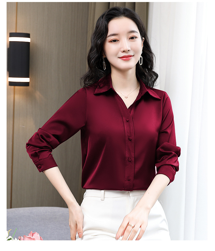 KQL-新款秋装气质OL职业缎面仿真丝长袖衬衫