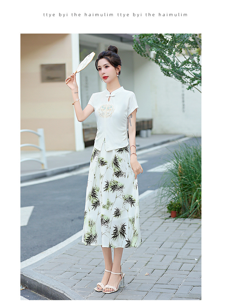 时尚潮流气质清新,复古盘扣款两件套套裙HMQY5318