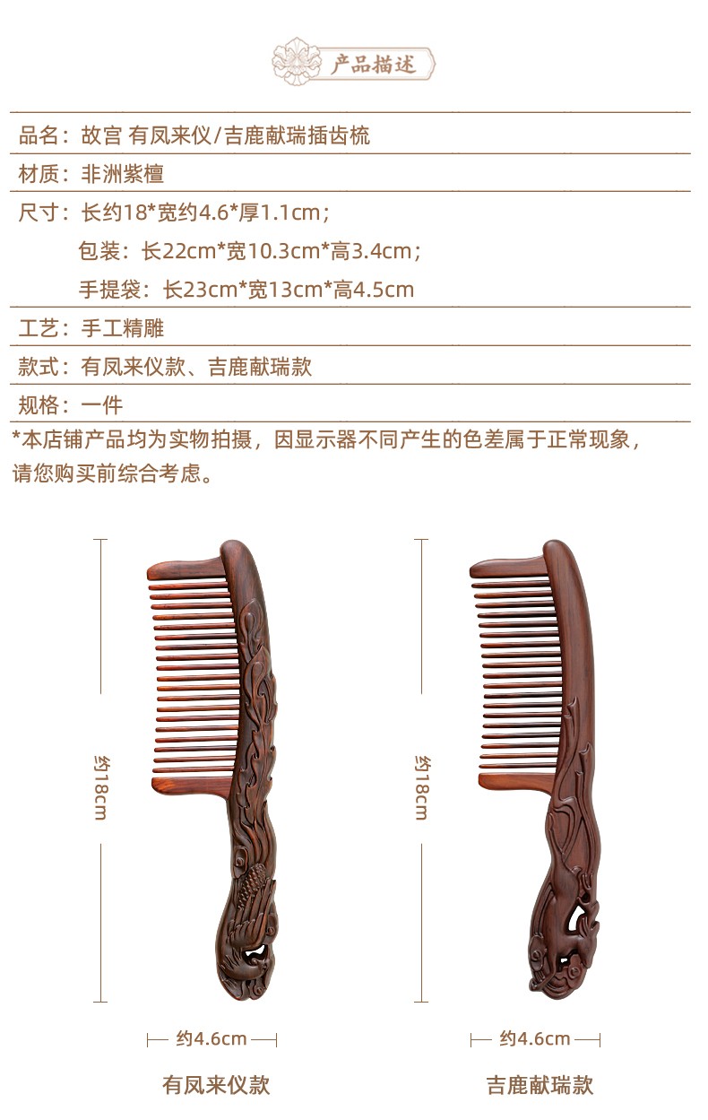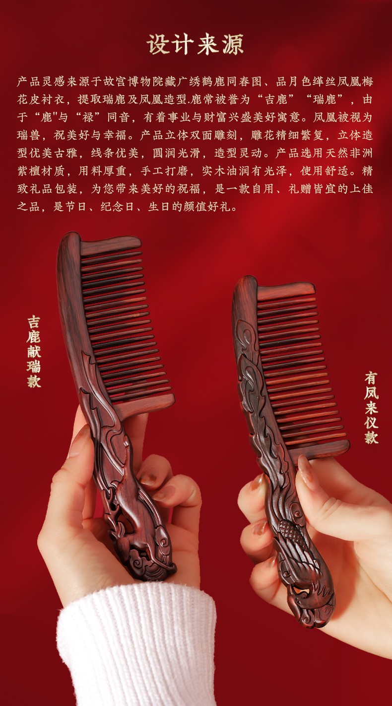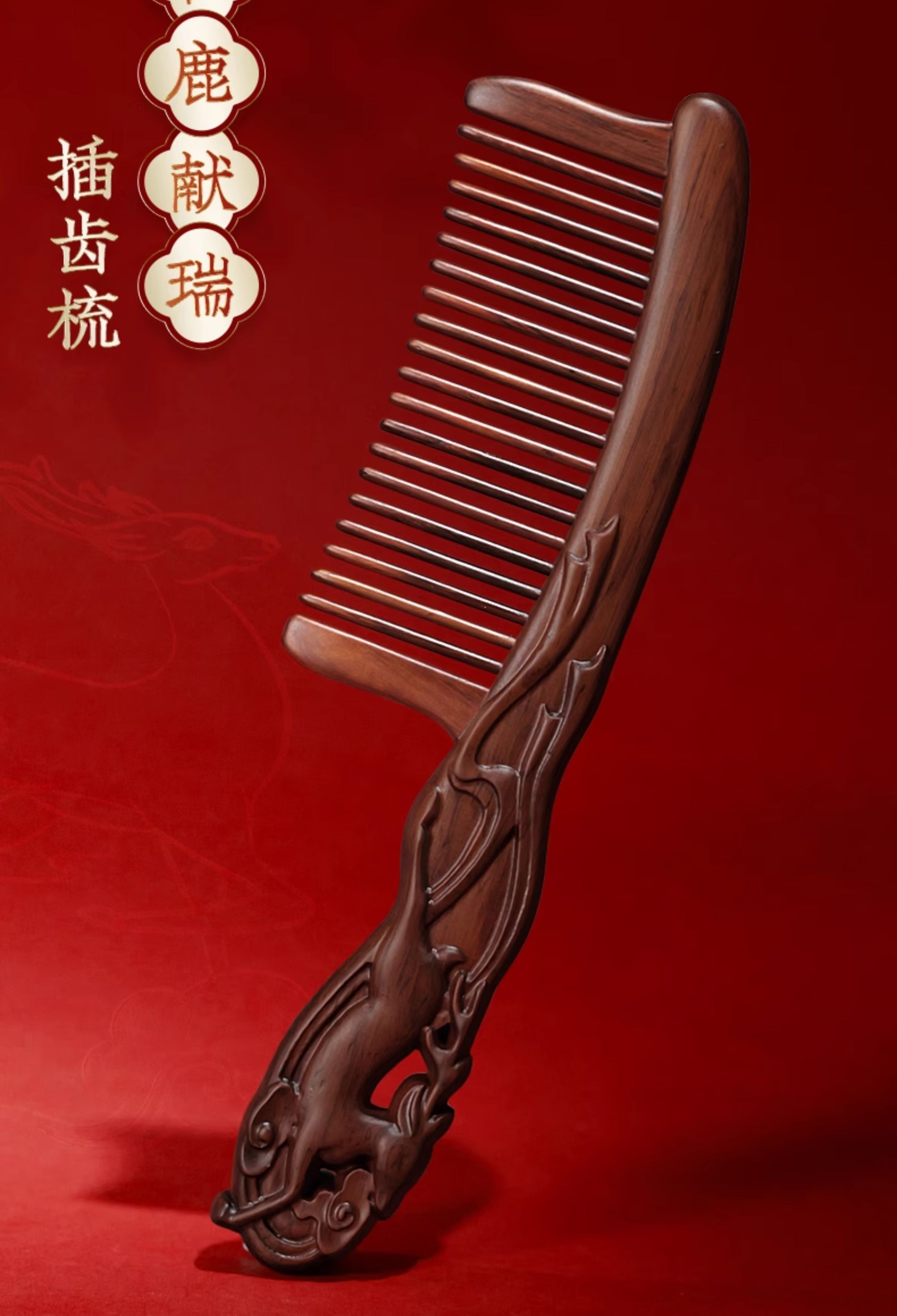 有凤来仪吉鹿献瑞插齿梳